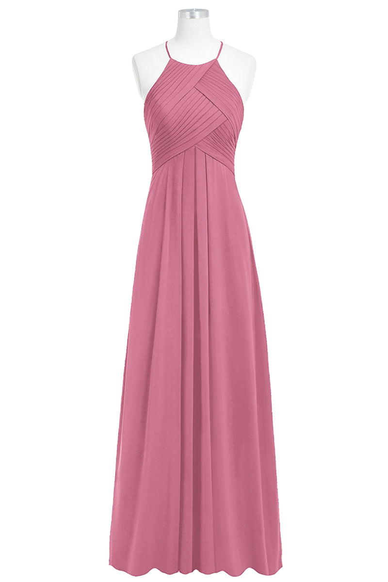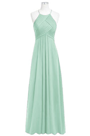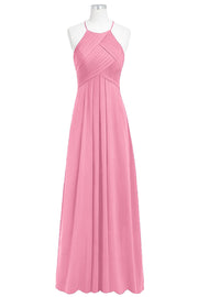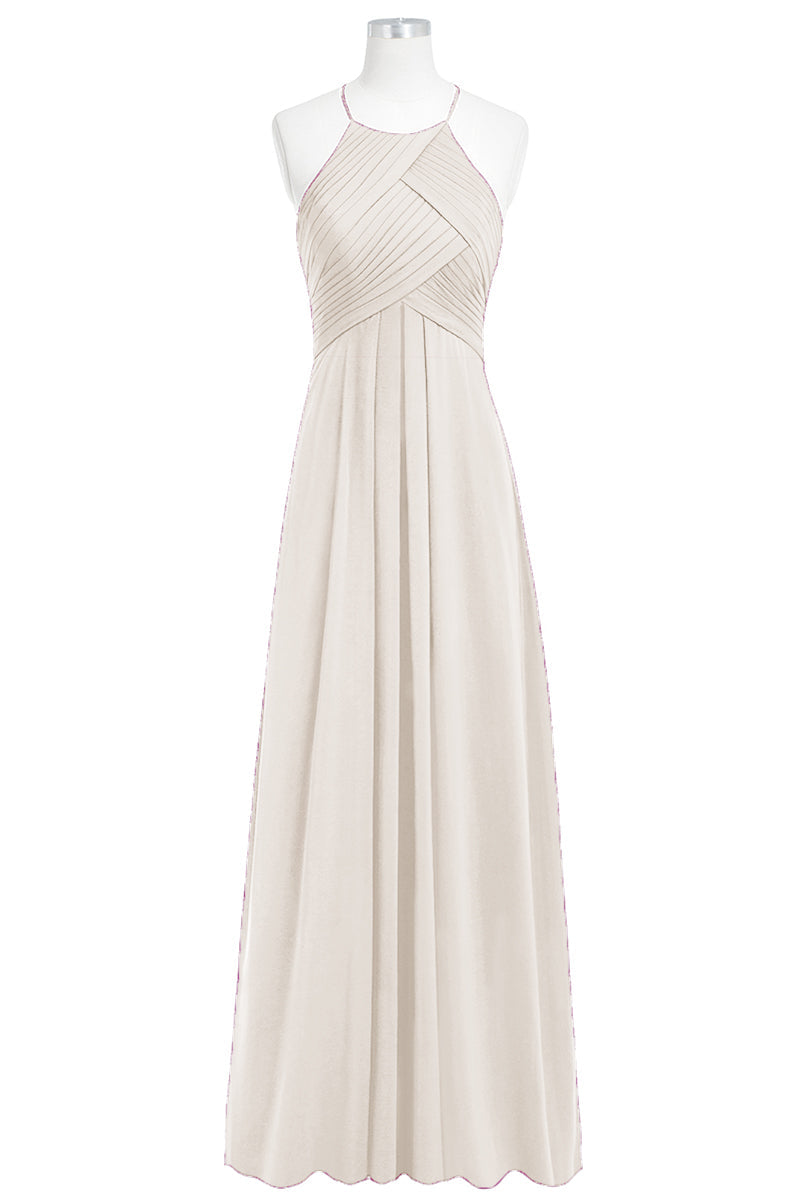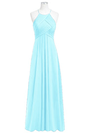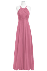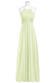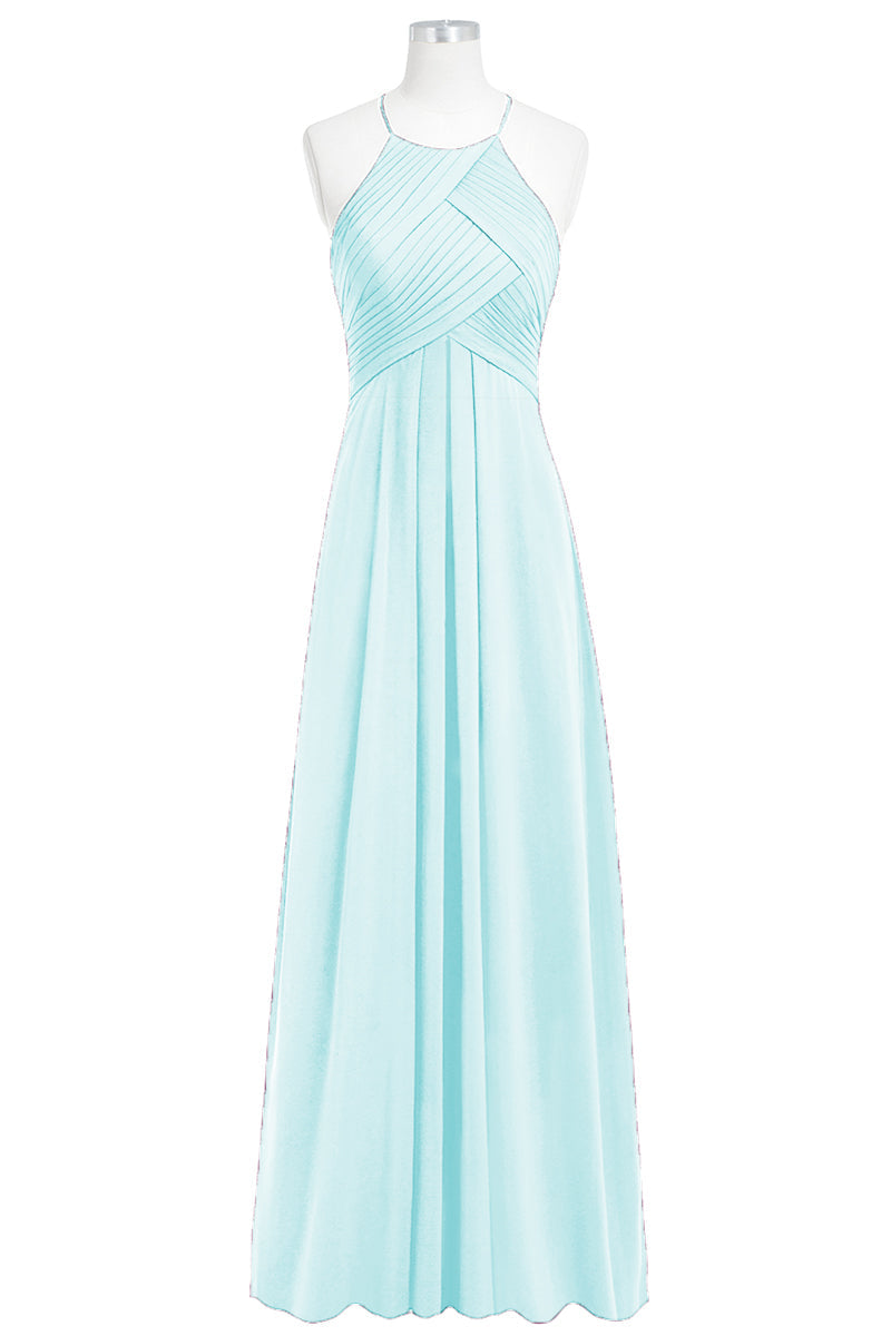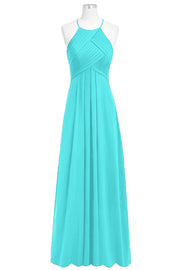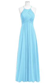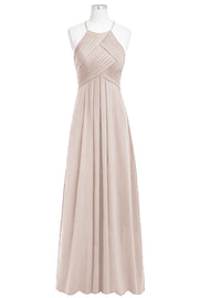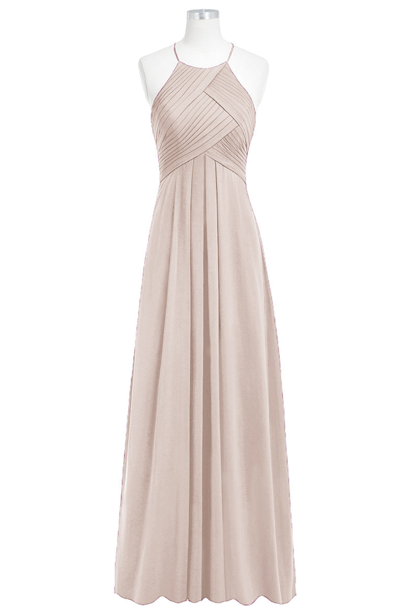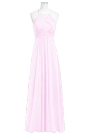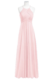 Chiffon Column Halter Sleeveless Bridesmaid Dress-B14023