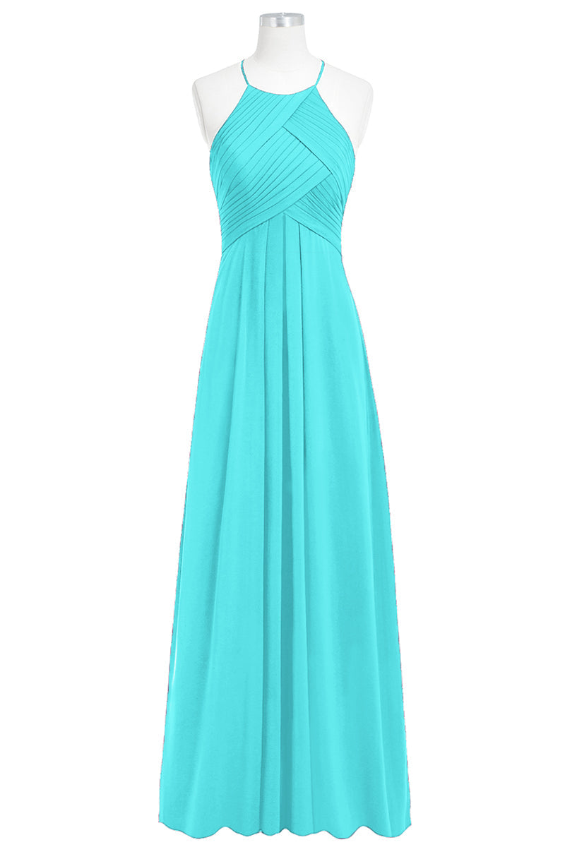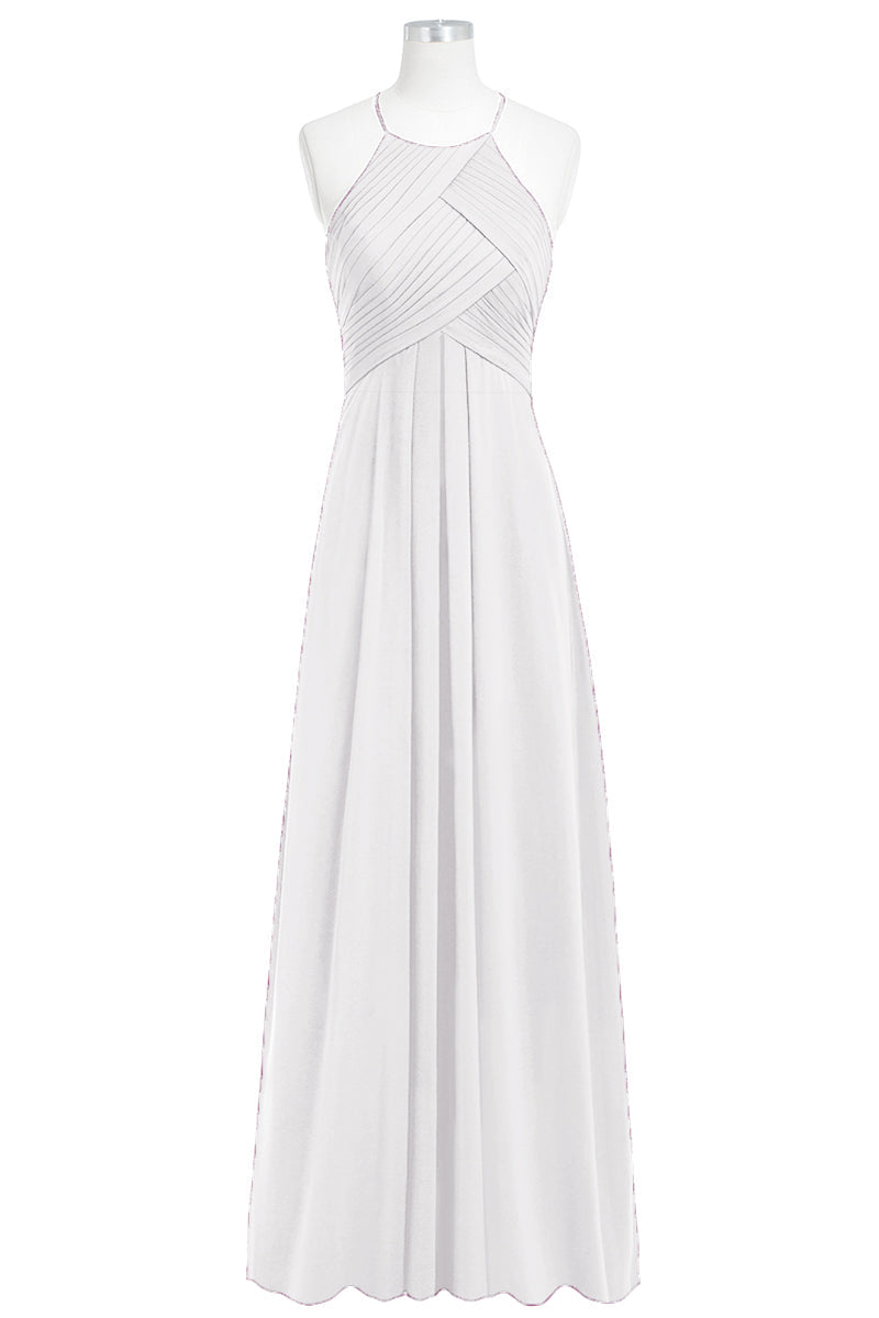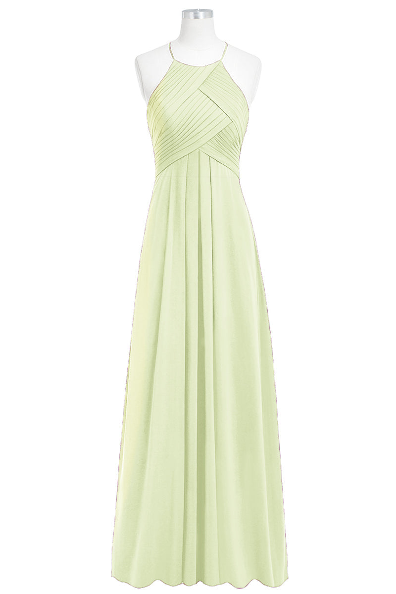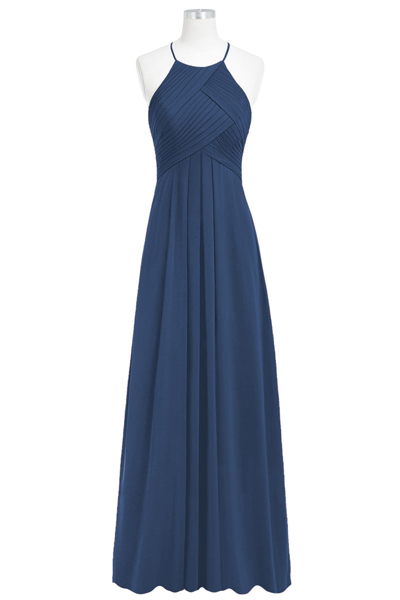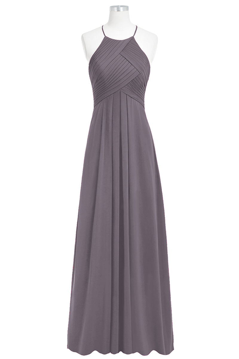 Chiffon Column Halter Sleeveless Bridesmaid Dress-B14023