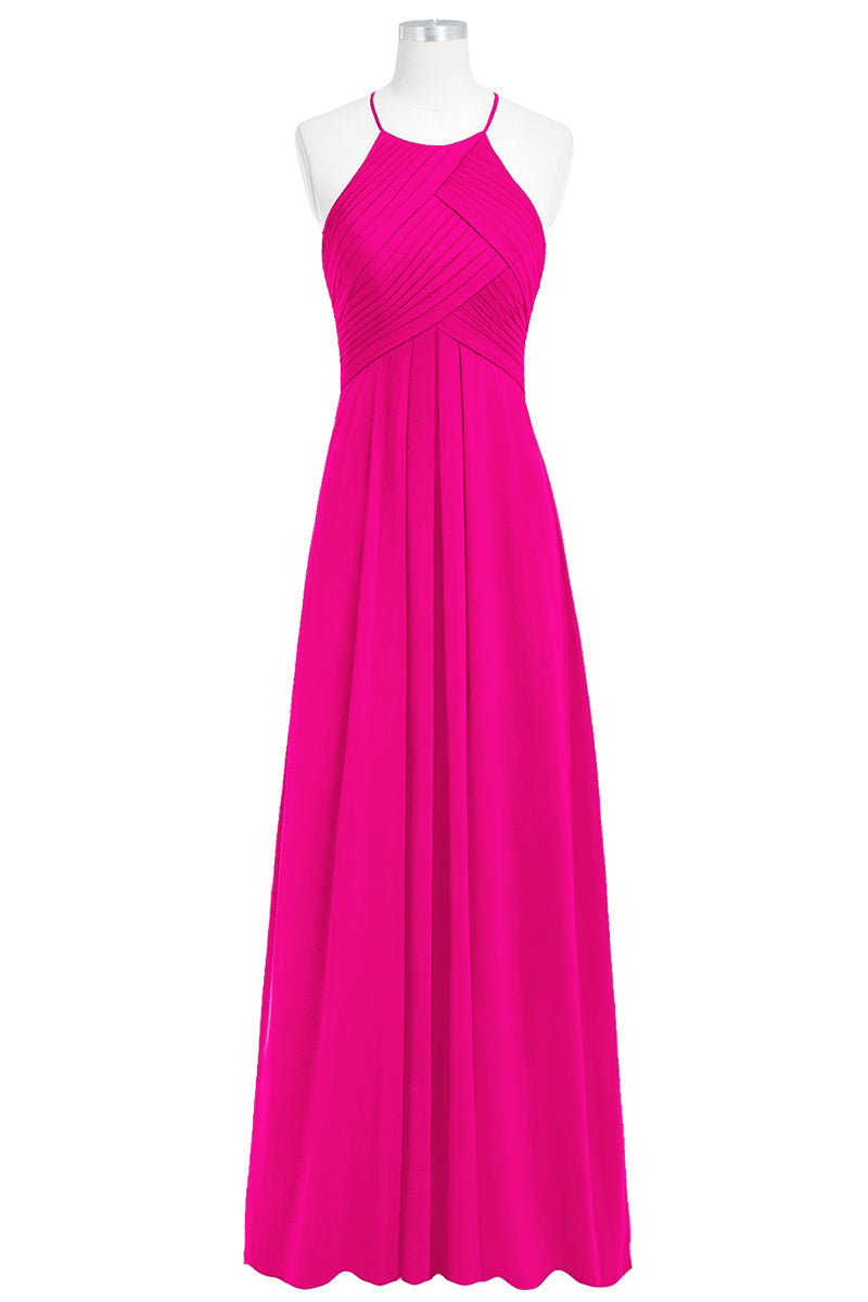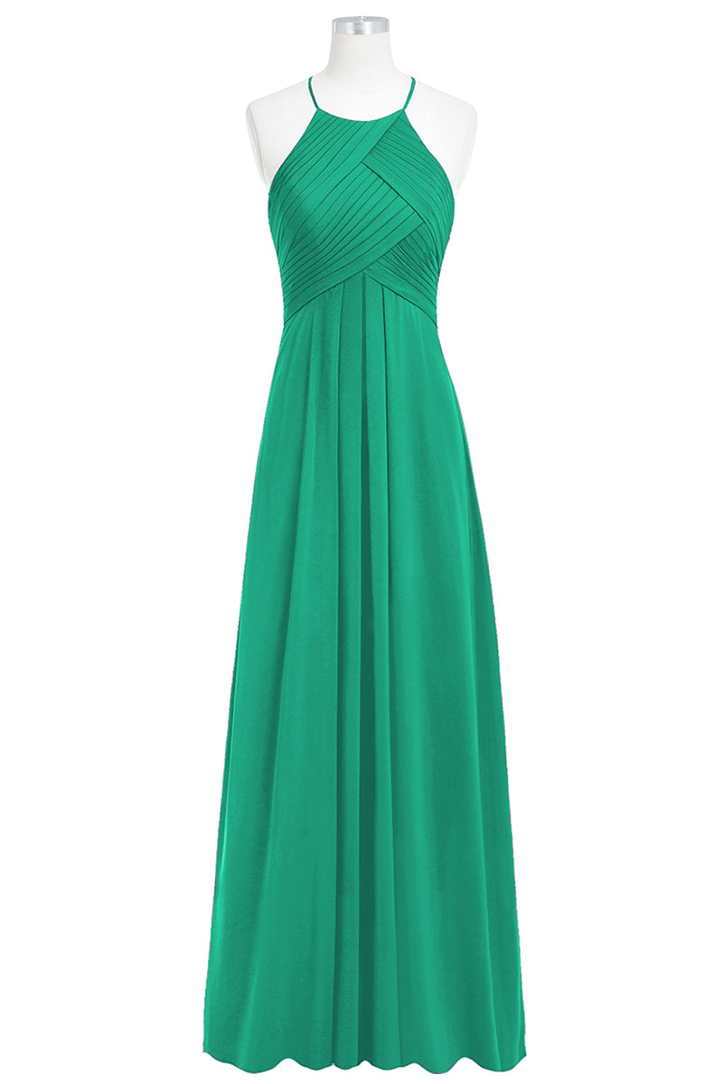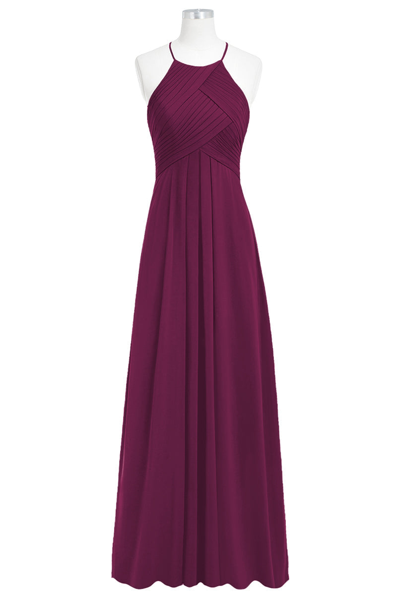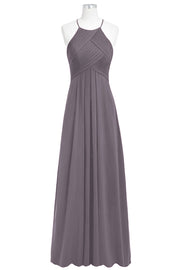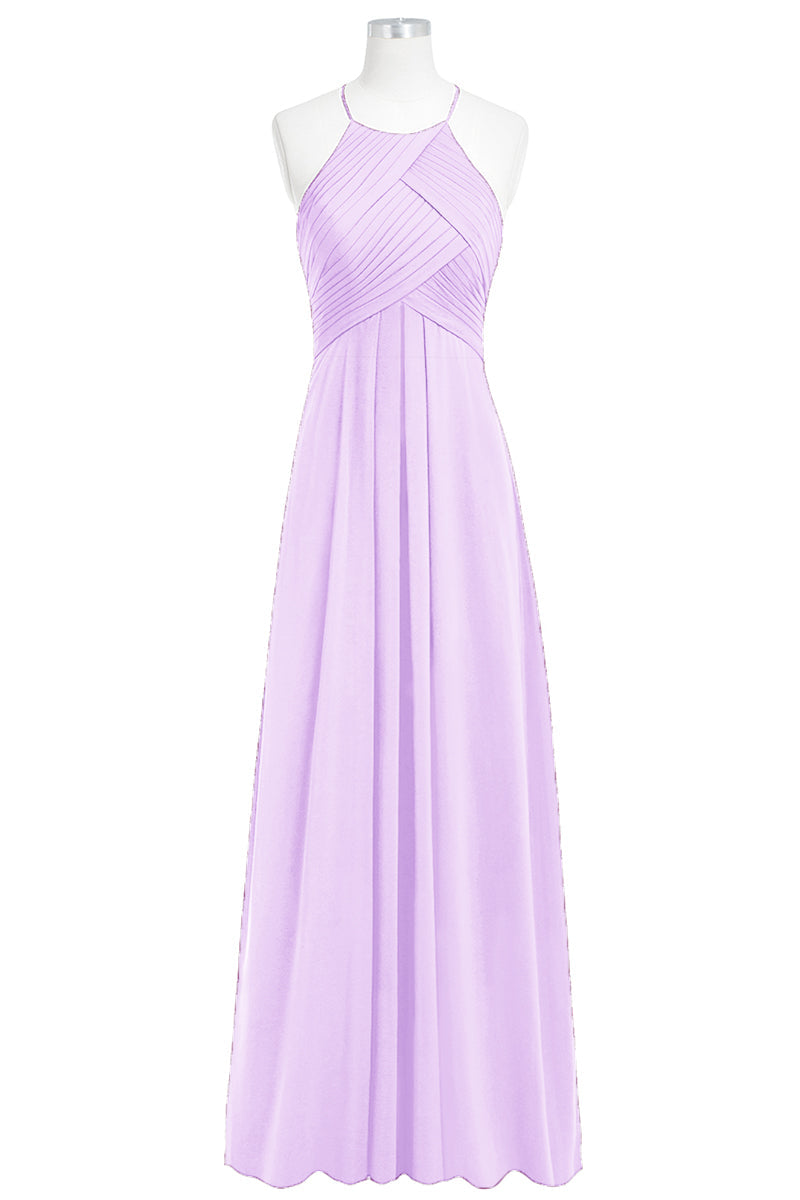 Chiffon Column Halter Sleeveless Bridesmaid Dress-B14023
