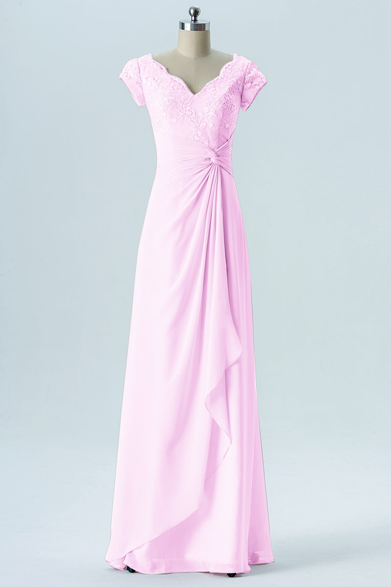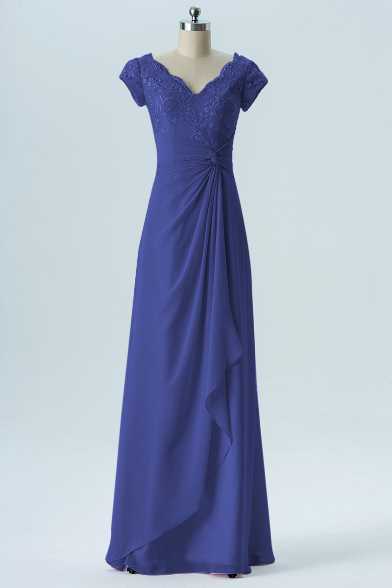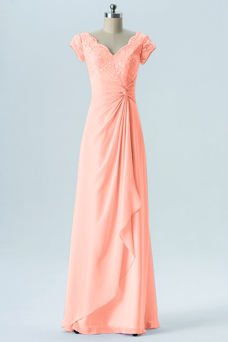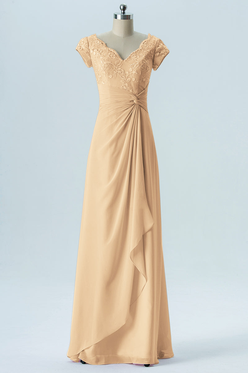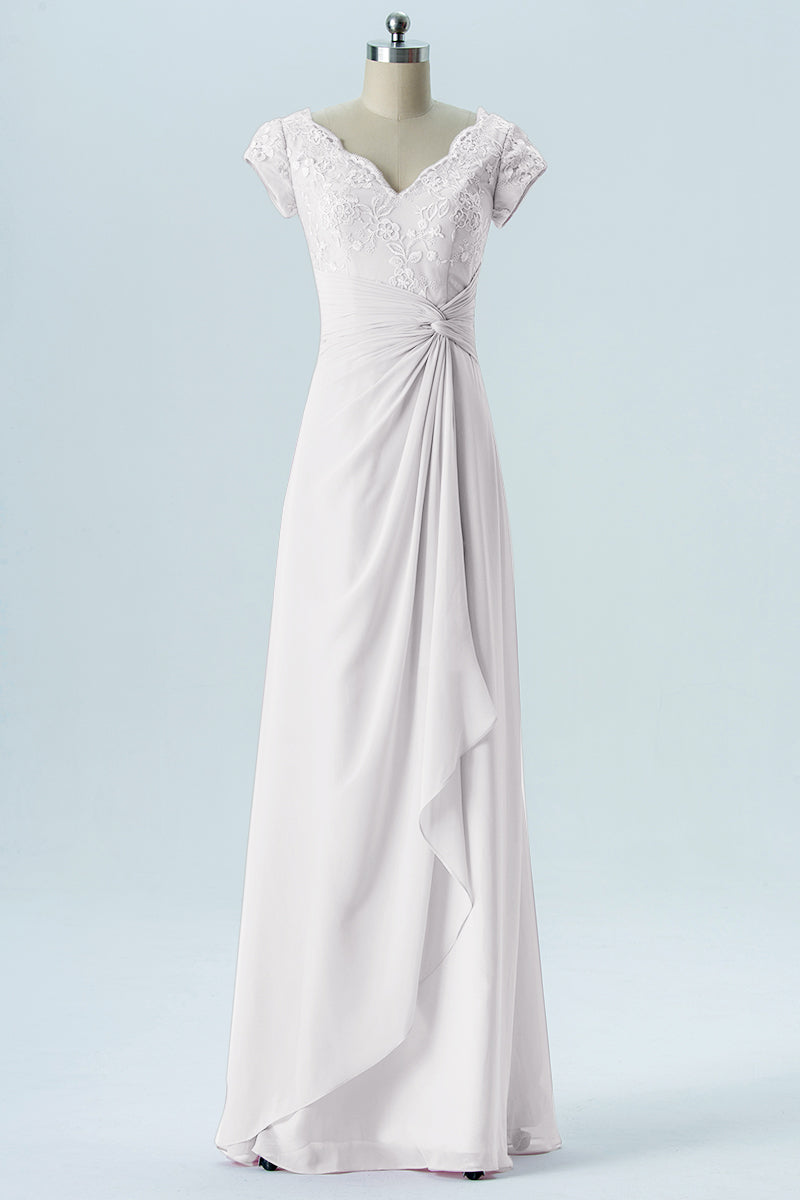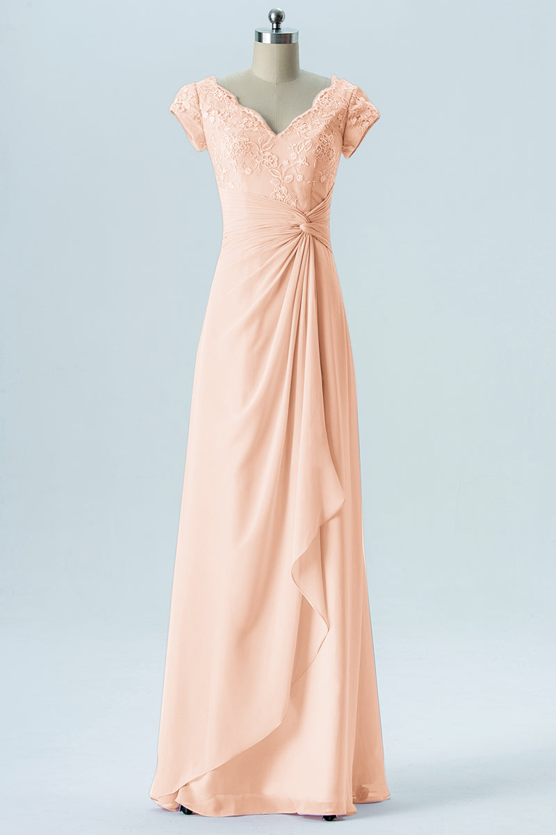 Lace Column Scalloped Edge Short Sleeves Bridesmaid Dress-B13617