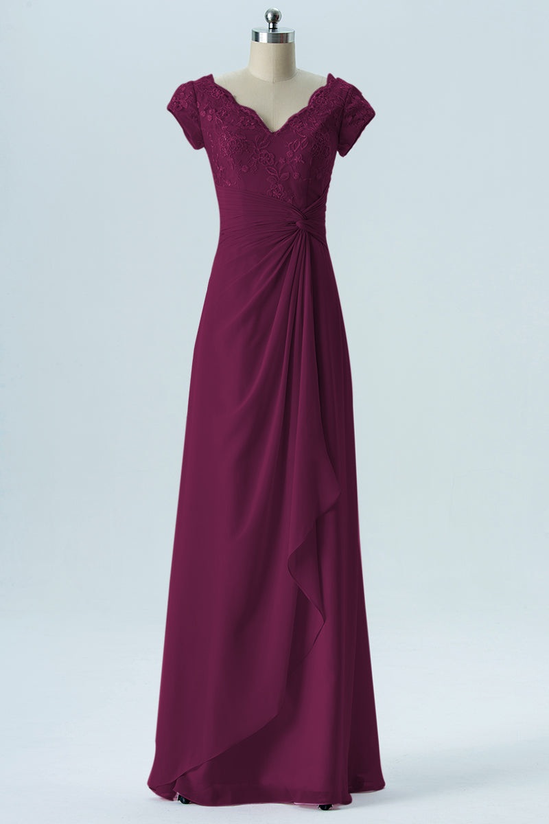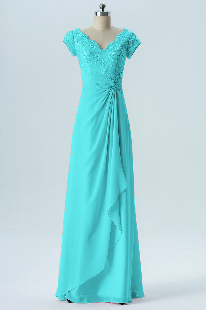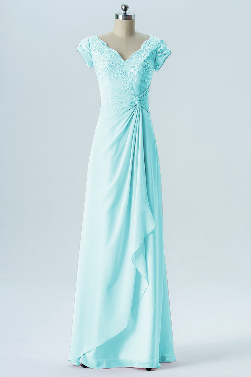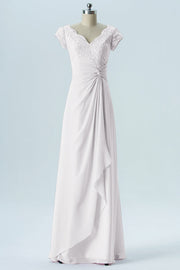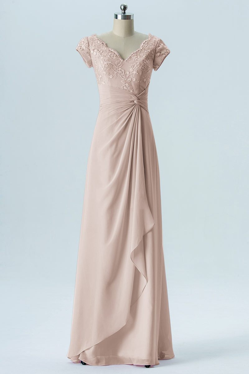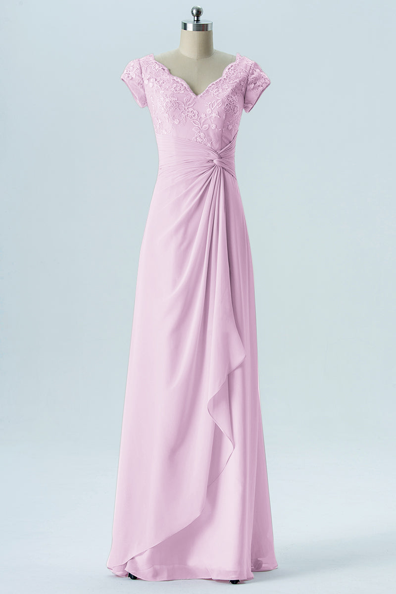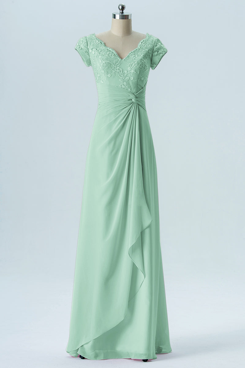 Lace Column Scalloped Edge Short Sleeves Bridesmaid Dress-B13617