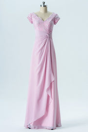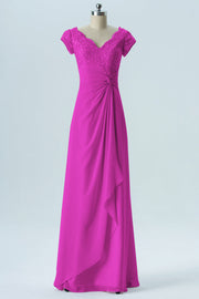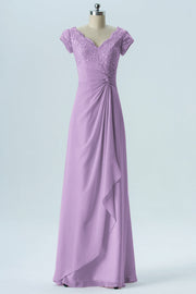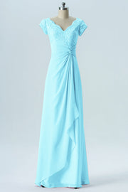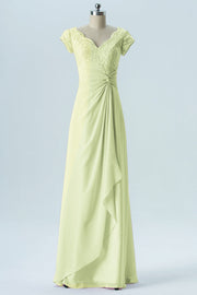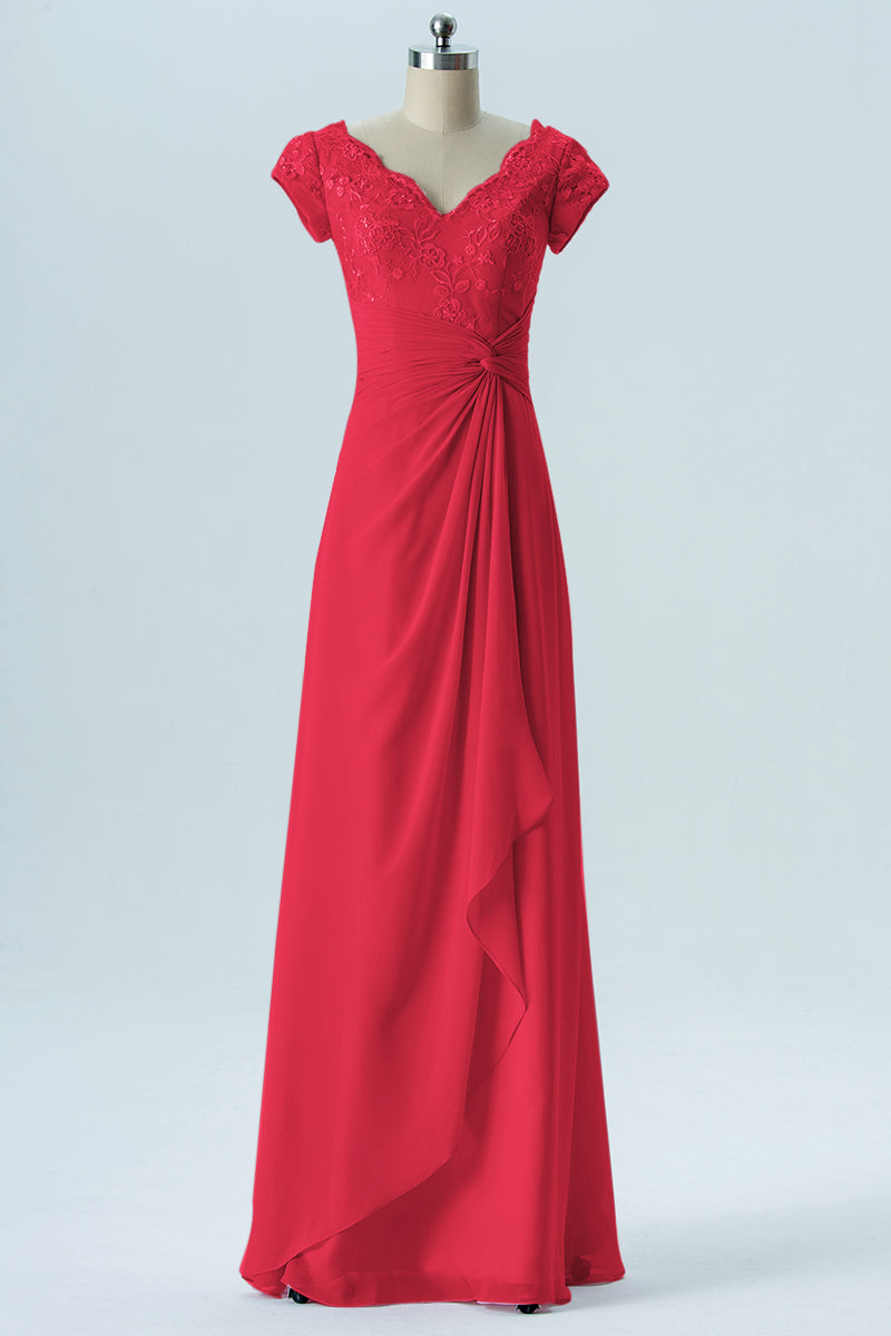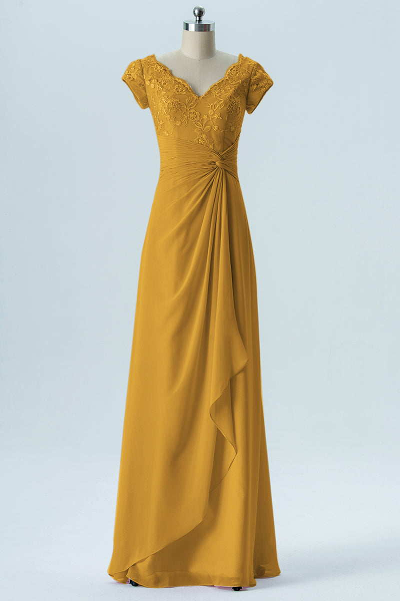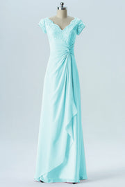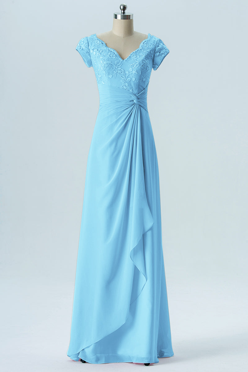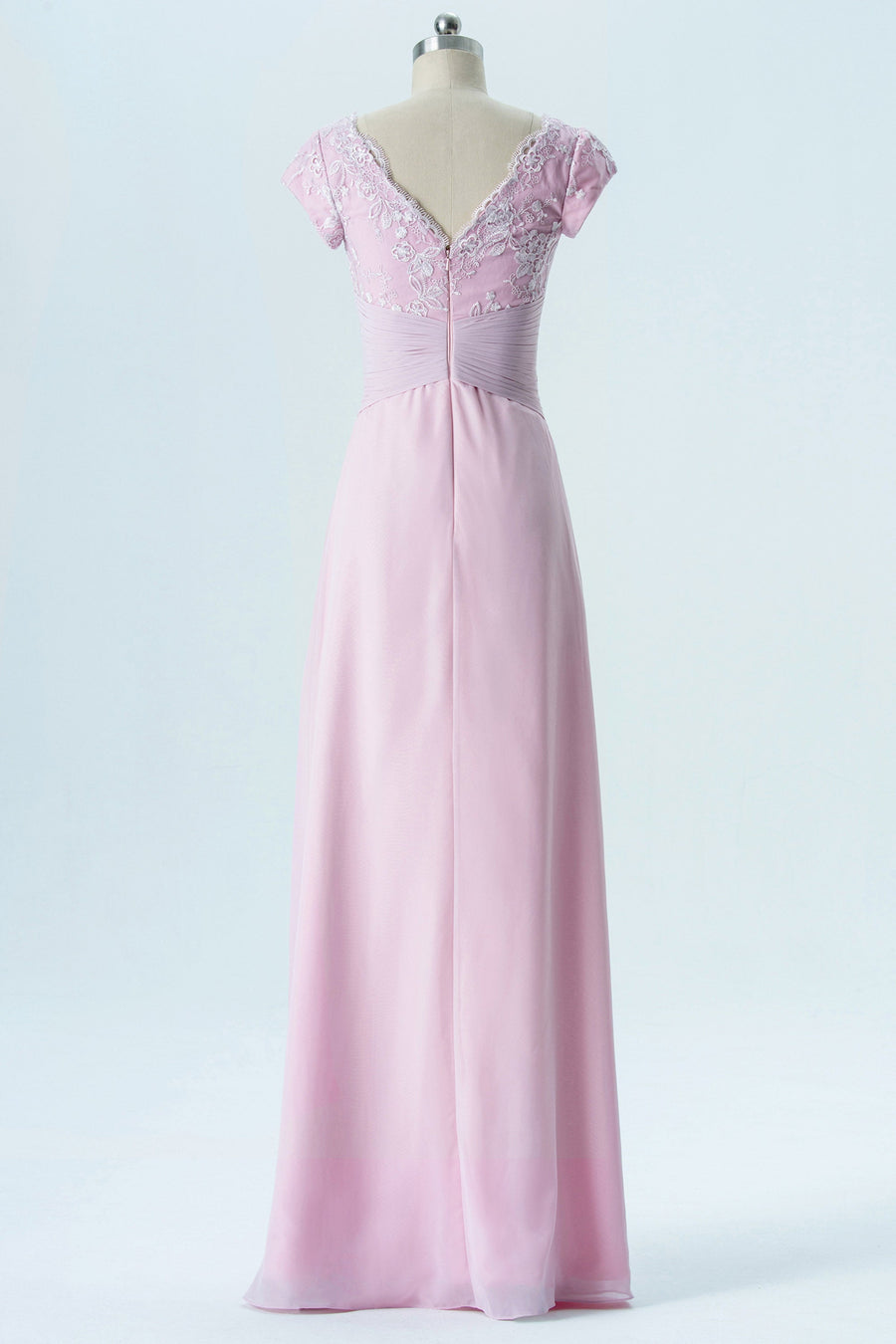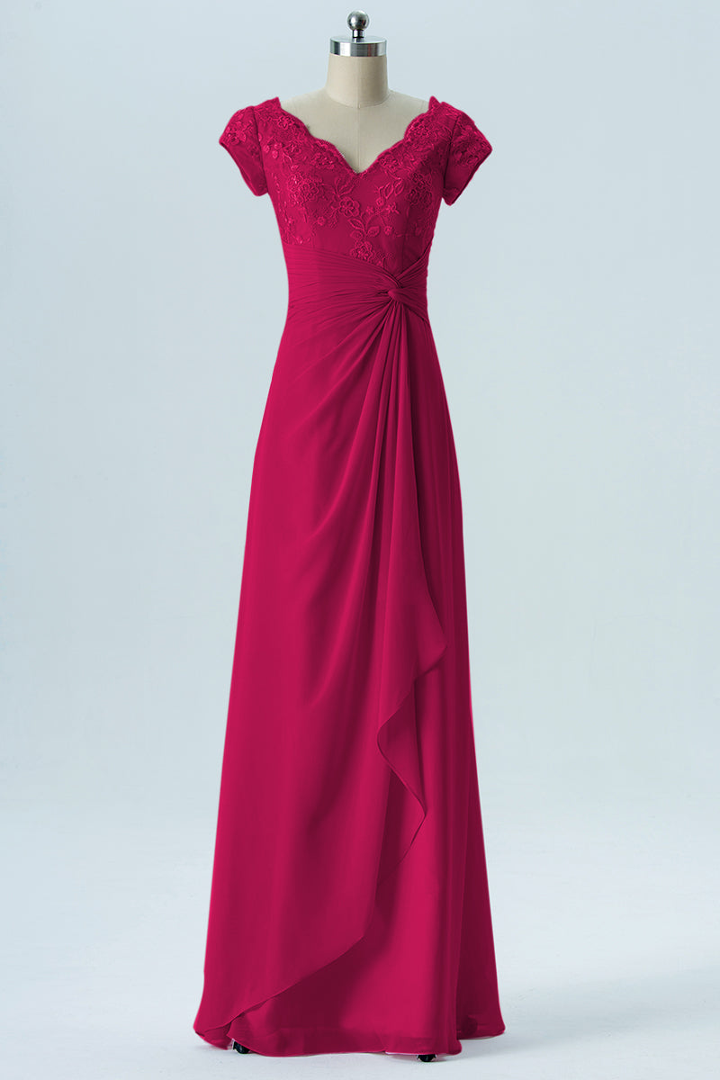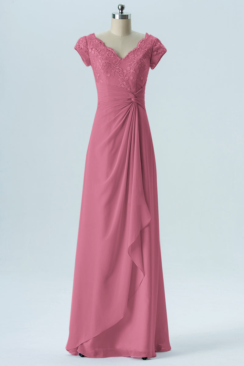 Lace Column Scalloped Edge Short Sleeves Bridesmaid Dress-B13617
