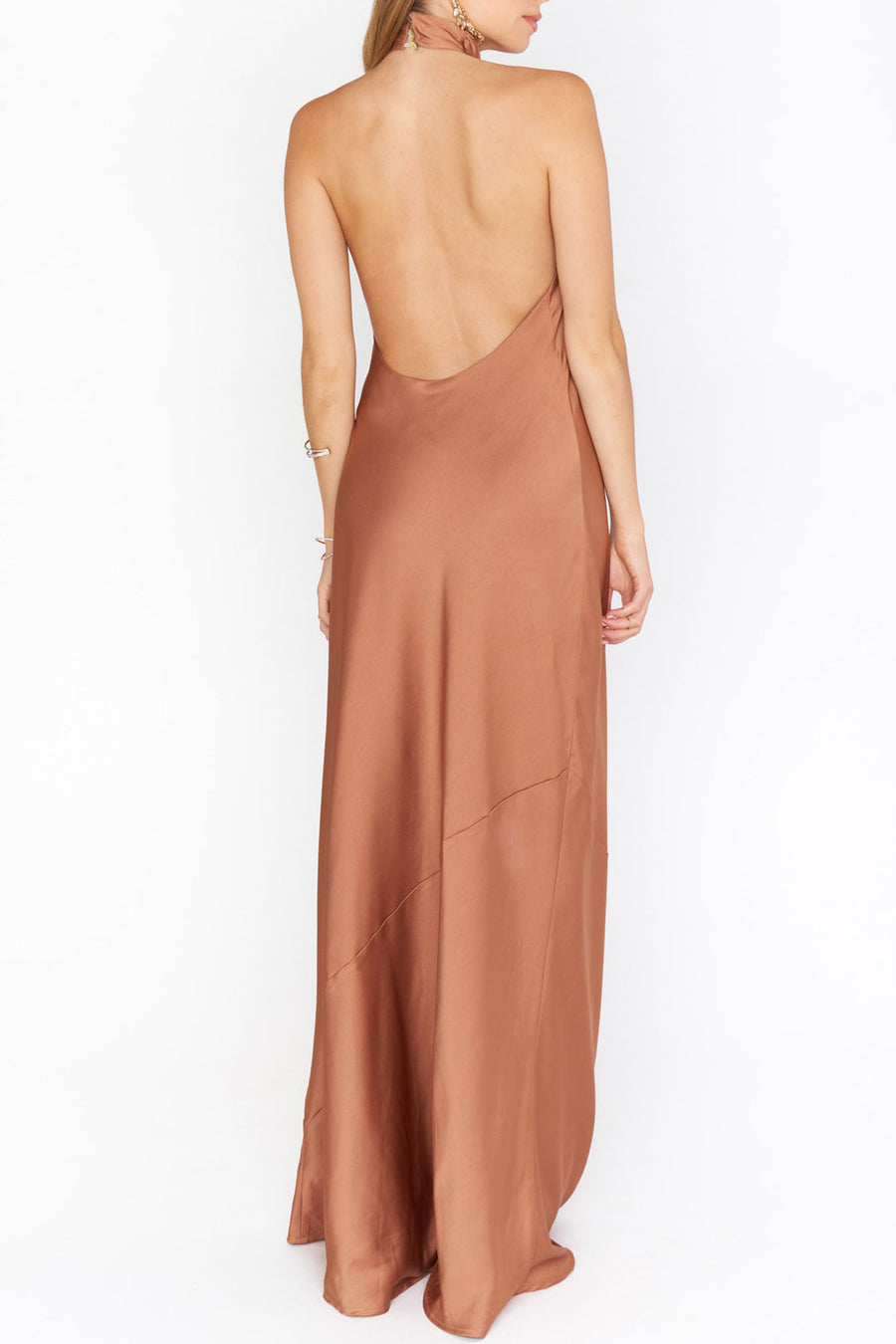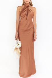 Stretch Satin A-Line Halter Sleeveless Bridesmaid Dress-B19341