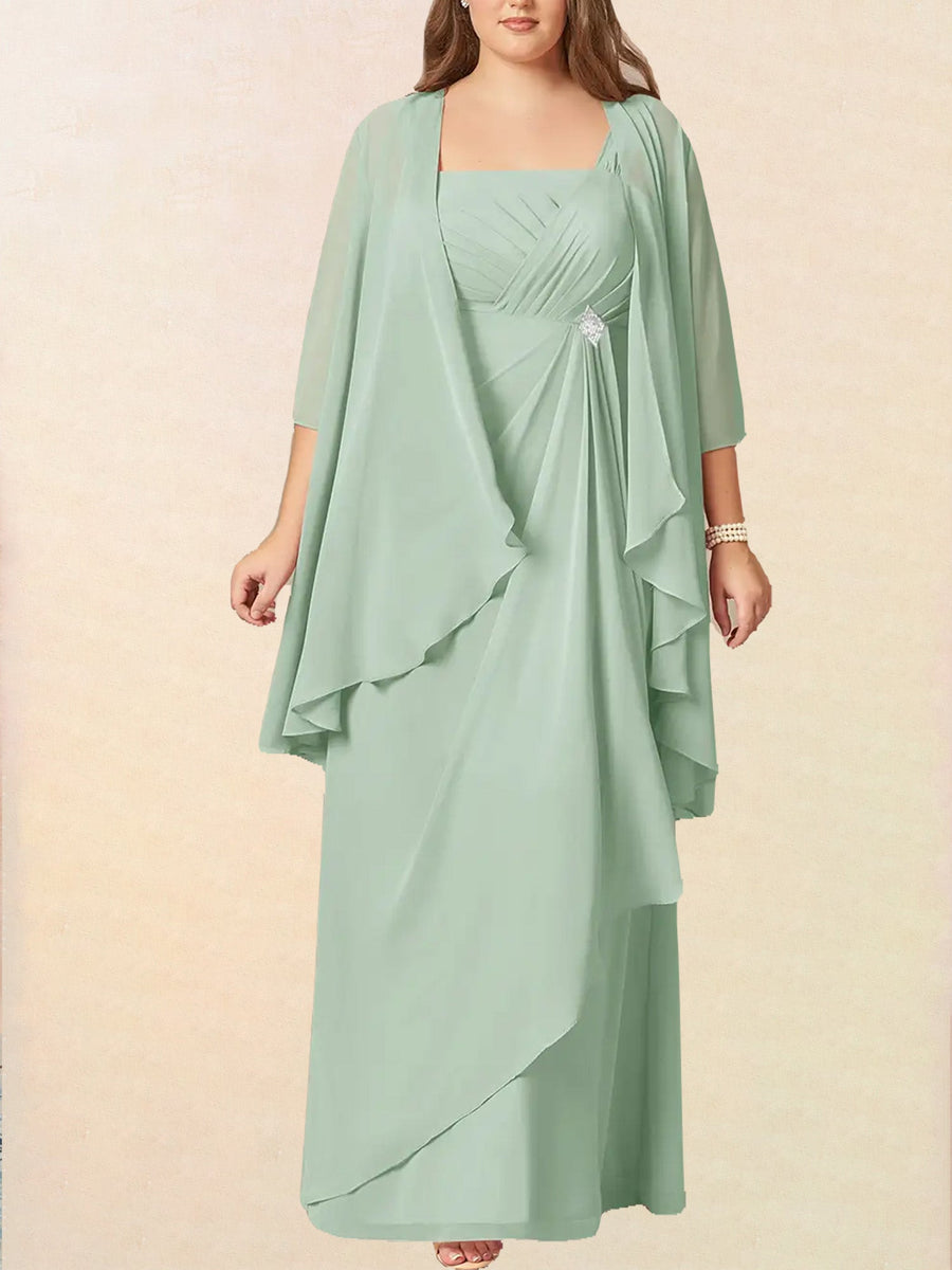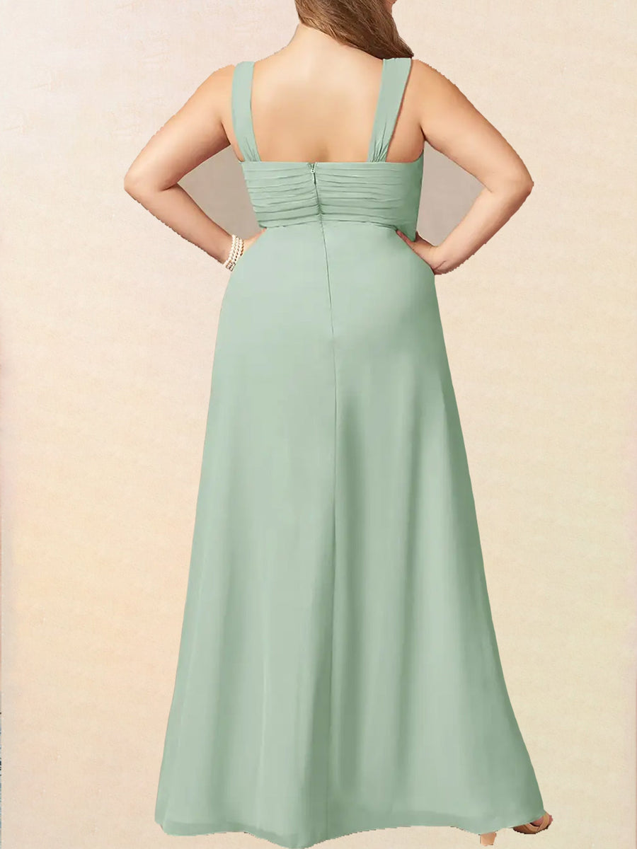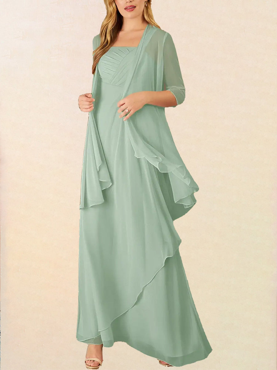 Chiffon A-Line Boat Neck 3/4 Sleeves Dress-BM00014