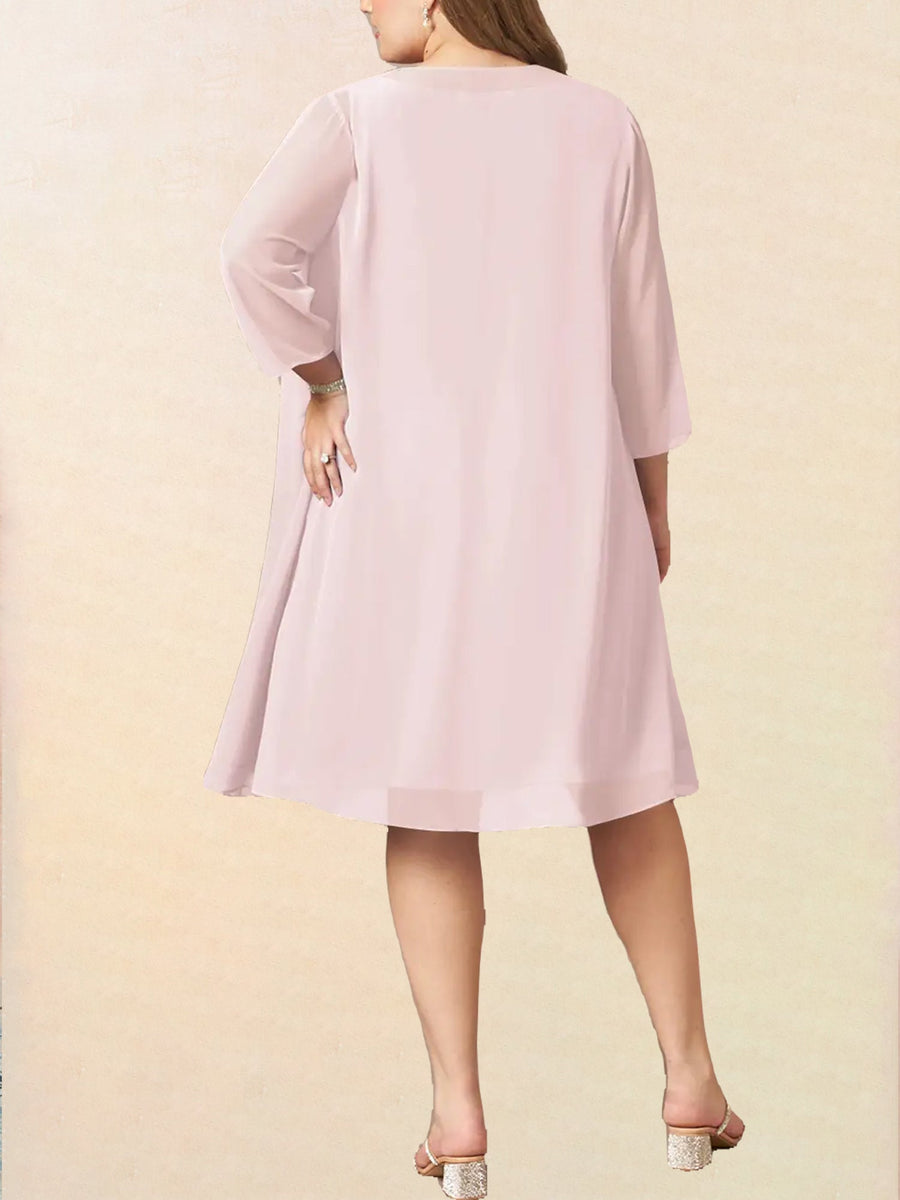 Chiffon A-Line Scoop Neck 3/4 Sleeves Dress-BM00021