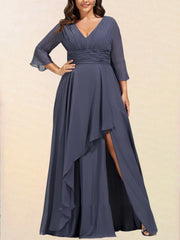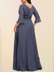 Chiffon A-Line V-Neck 3/4 Sleeves Dress-BM00027