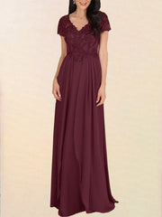 Lace A-Line V-Neck Half Sleeves Dress-BM00024