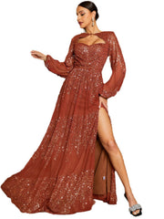 Sequin A-Line Sweetheart Long Sleeves-Dress-BM00044