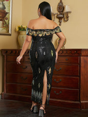 Sequin Sheath Off the Shoulder Half Sleeves-Dress-BM00040
