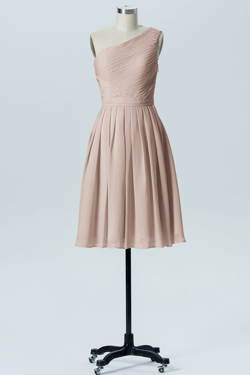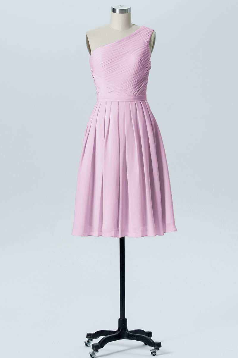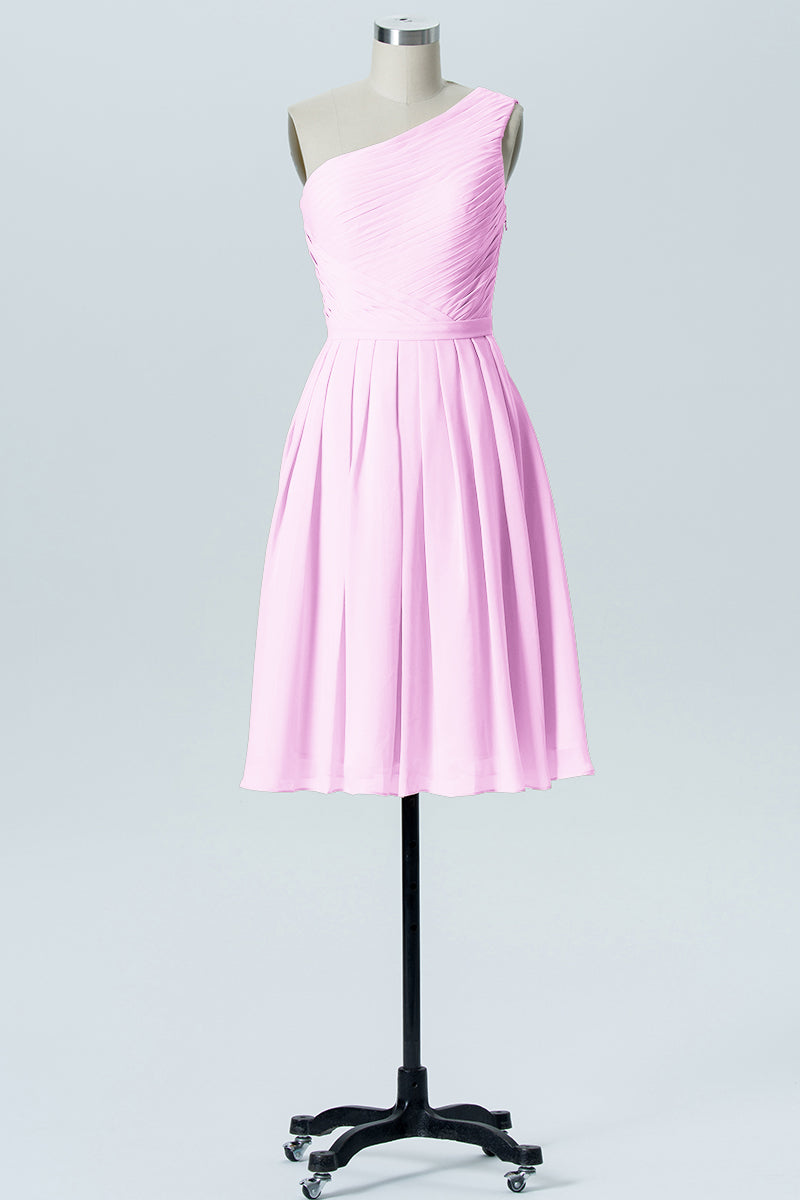 Chiffon A-line One Shoulder Sleeveless Bridesmaid Dress-B04990