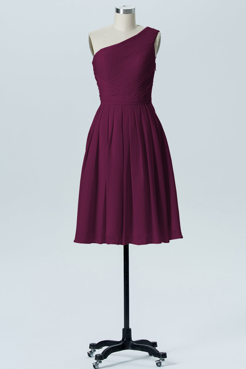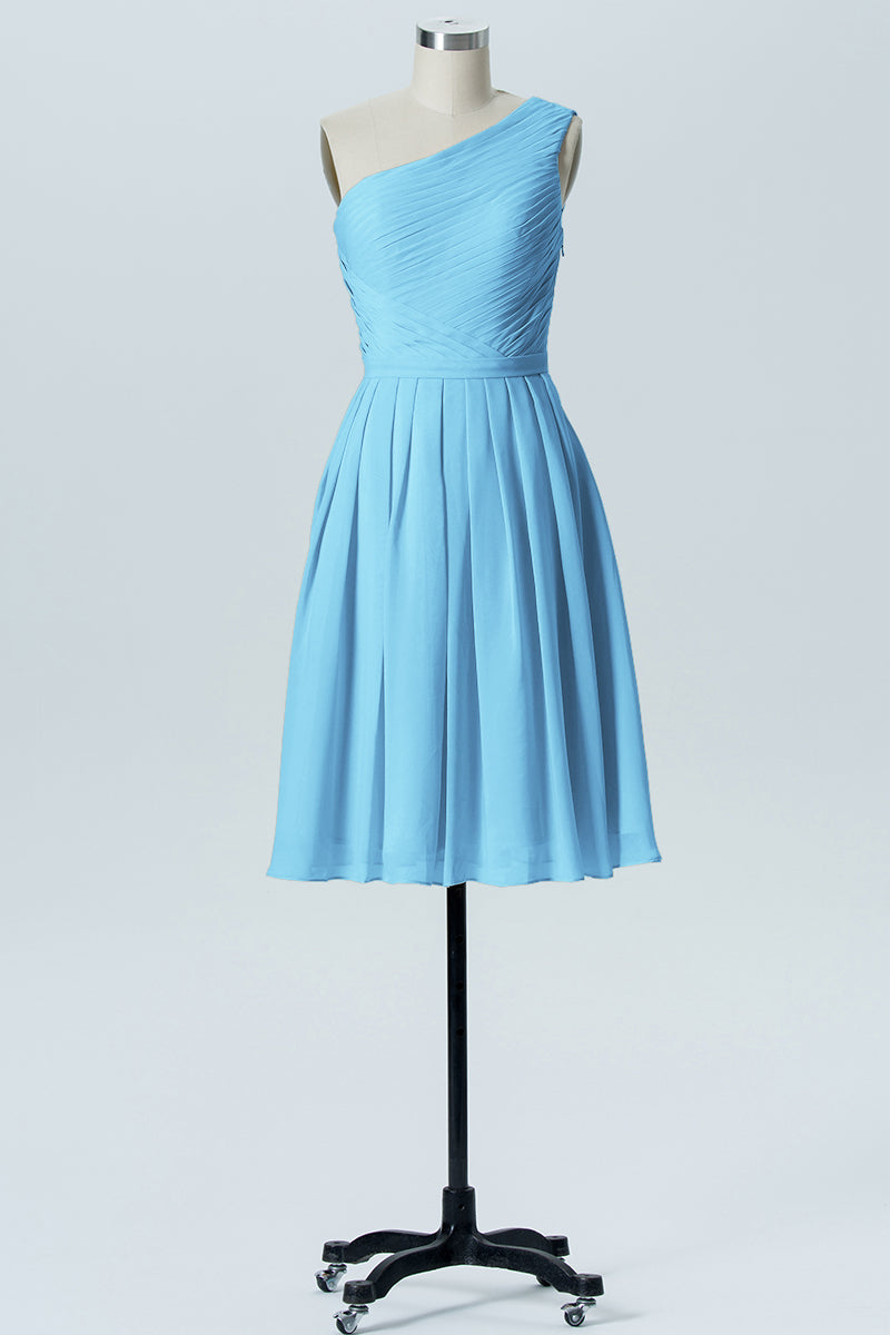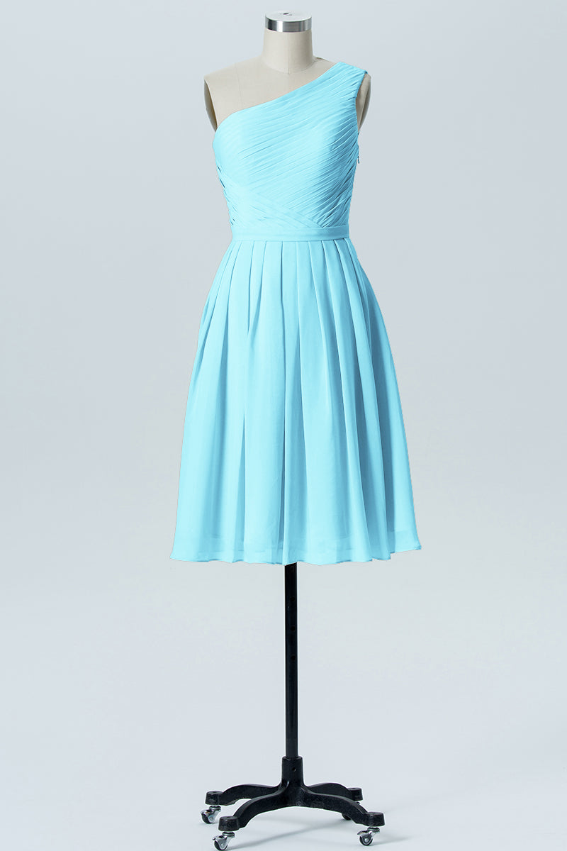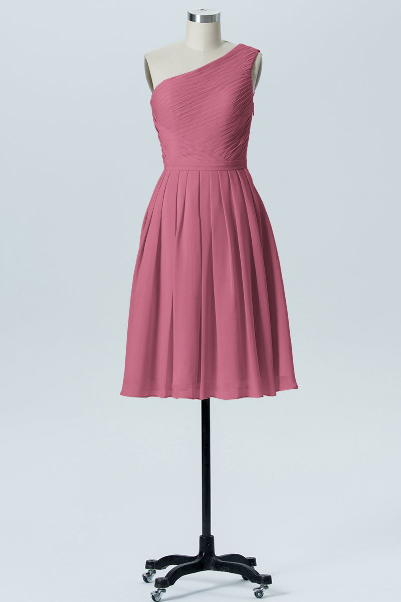 Chiffon A-line One Shoulder Sleeveless Bridesmaid Dress-B04990