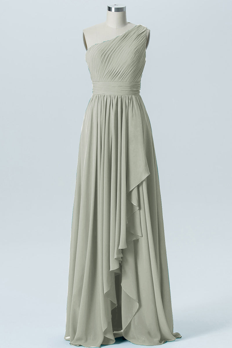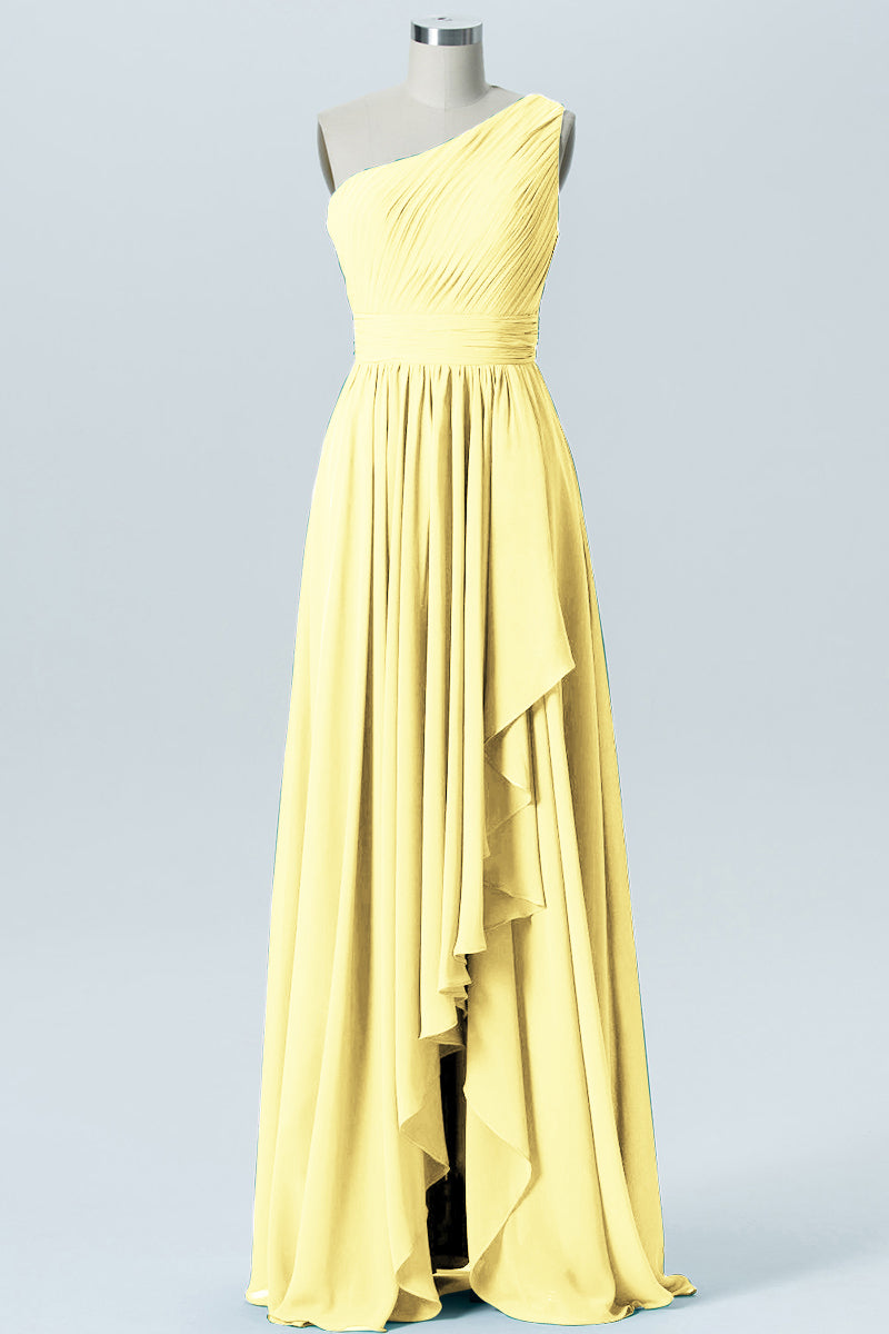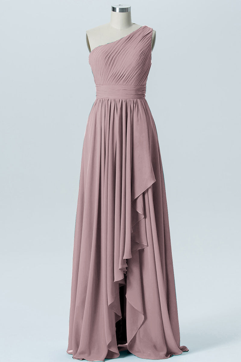 Chiffon A-line One Shoulder Sleeveless Bridesmaid Dress-B07900