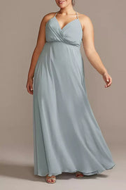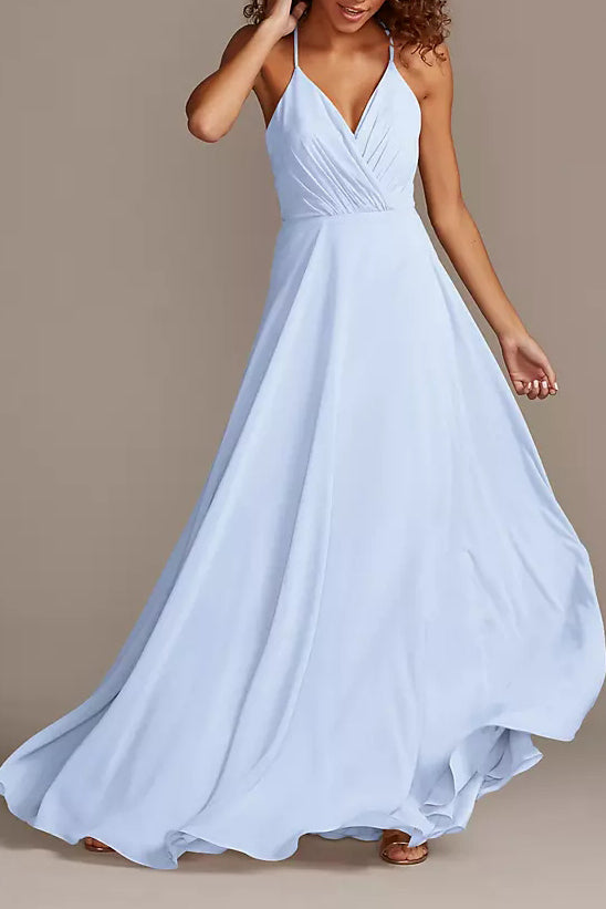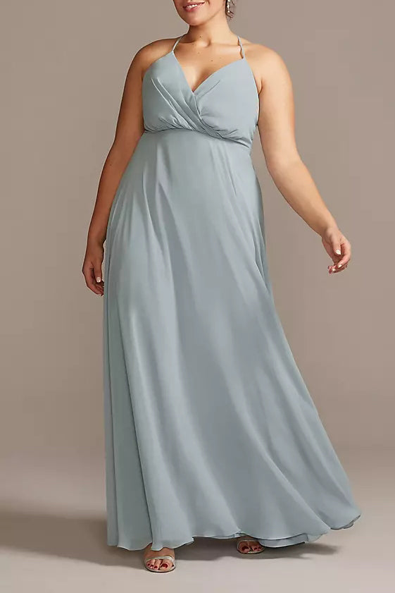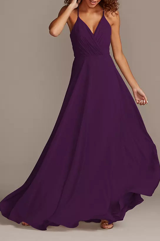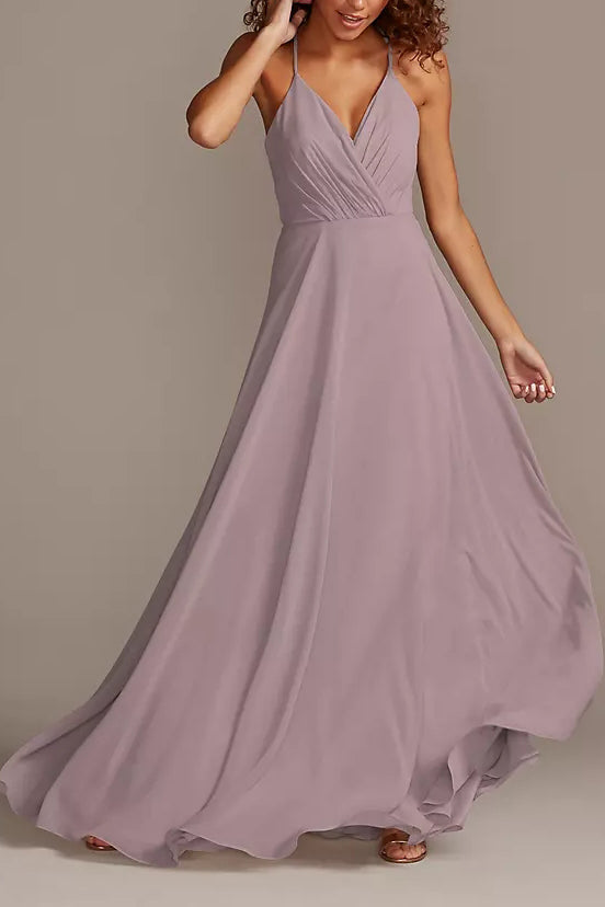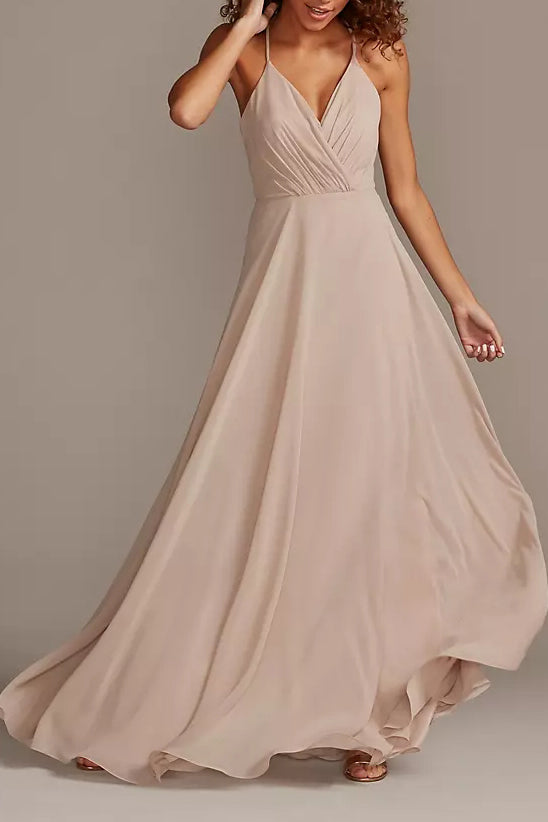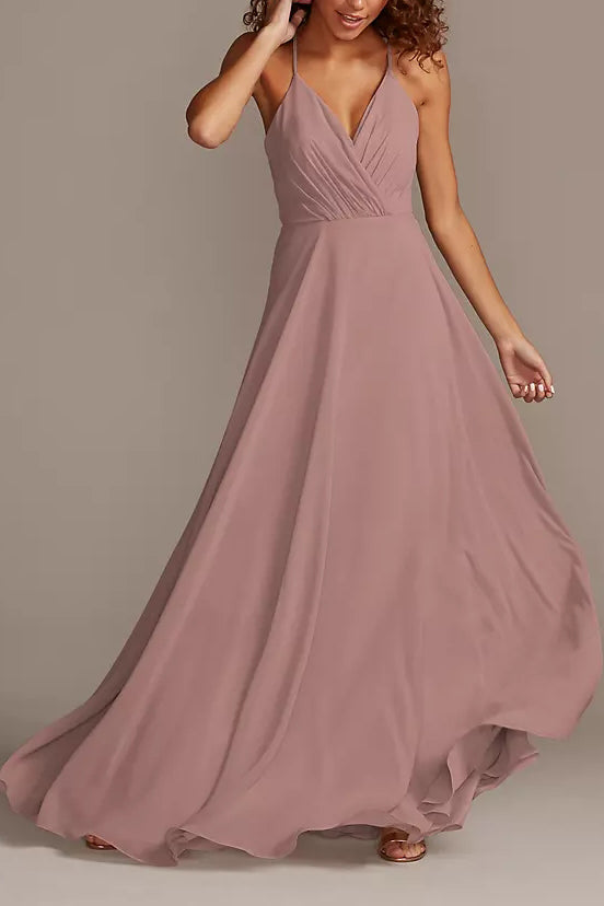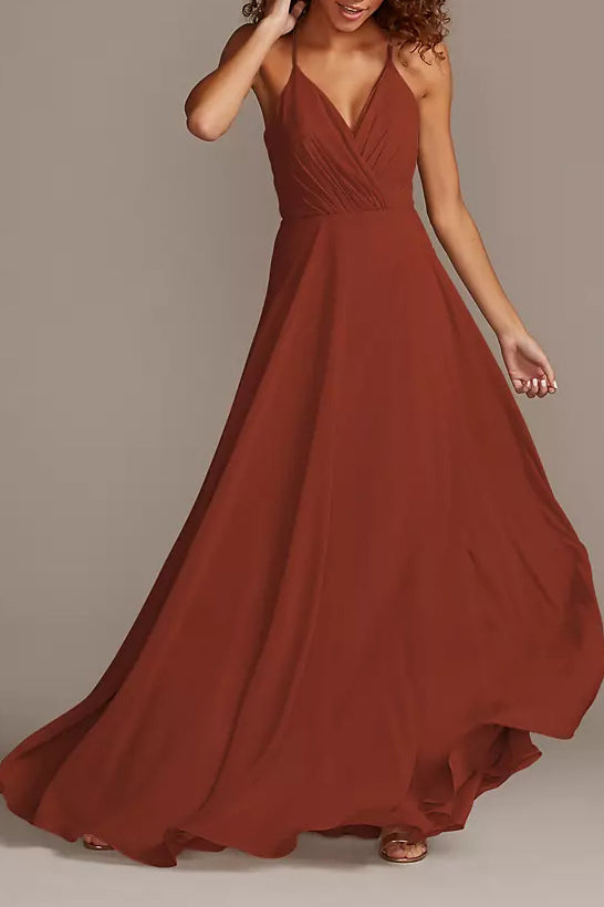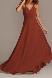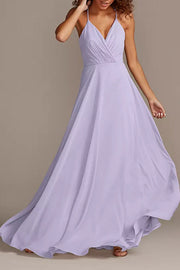 Chiffon A-Line V-Neck Sleeveless Bridesmaid Dress-B19808