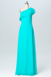 Chiffon Column One Shoulder Sleeveless Bridesmaid Dress-B03055