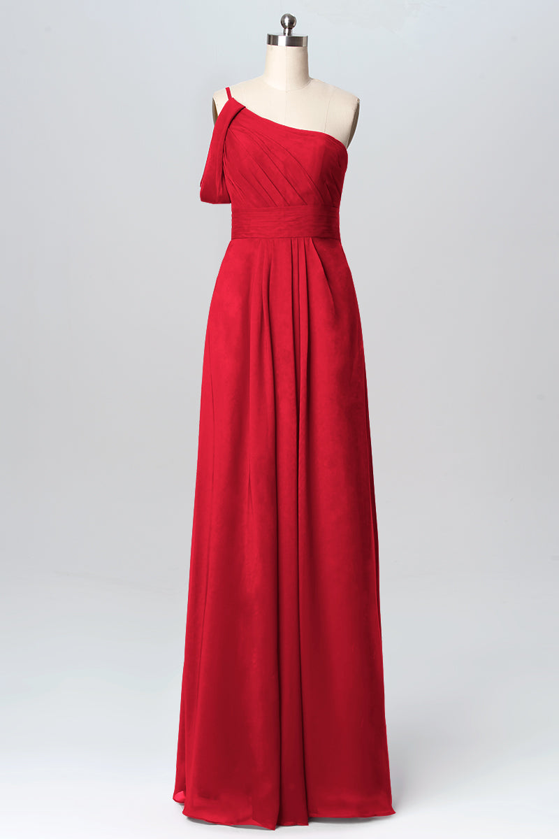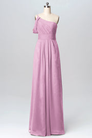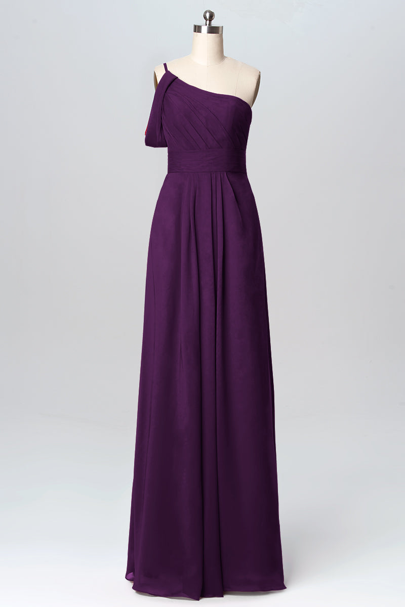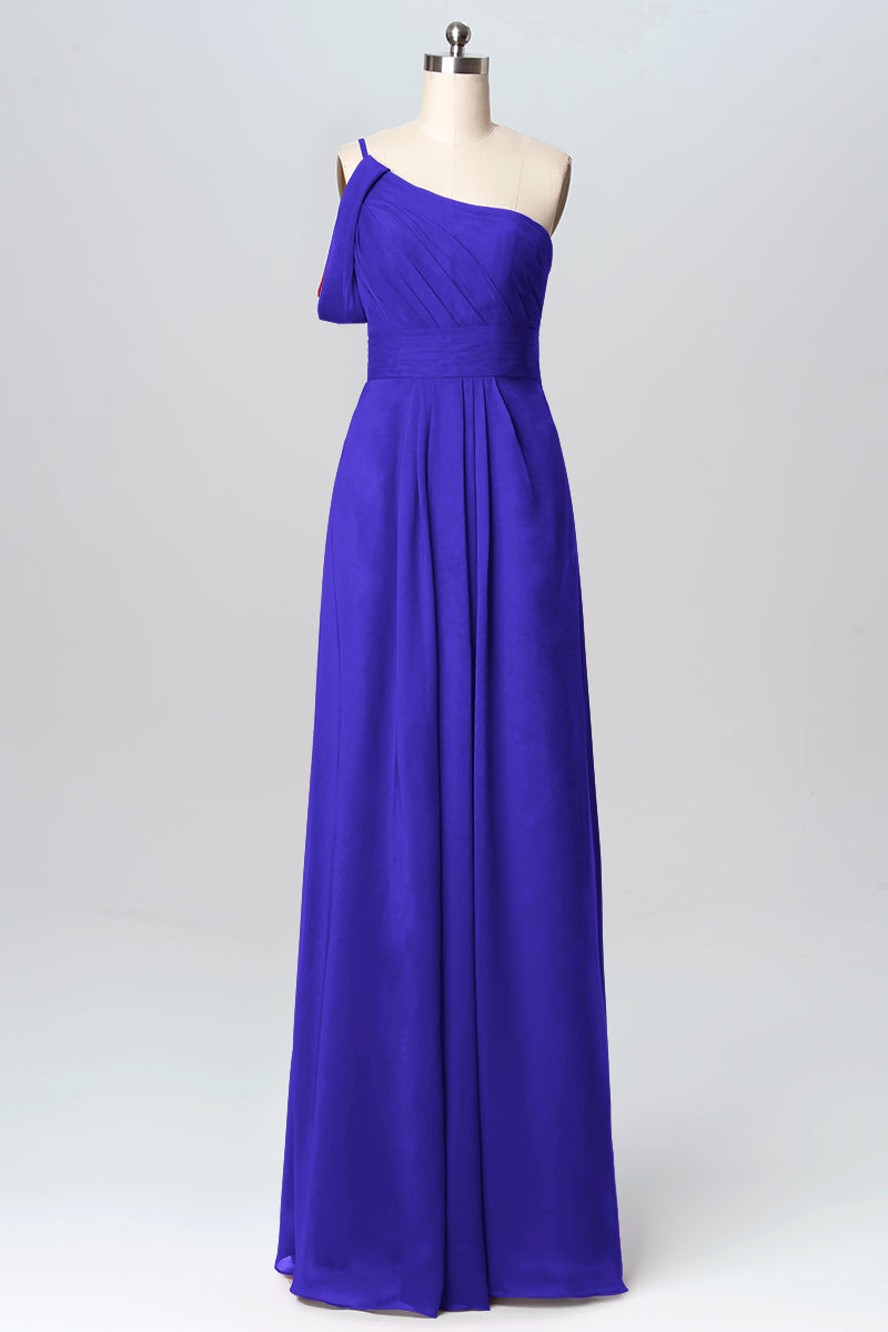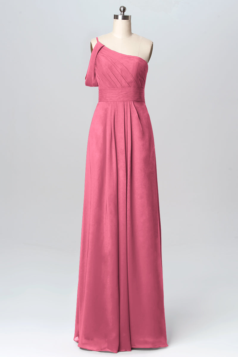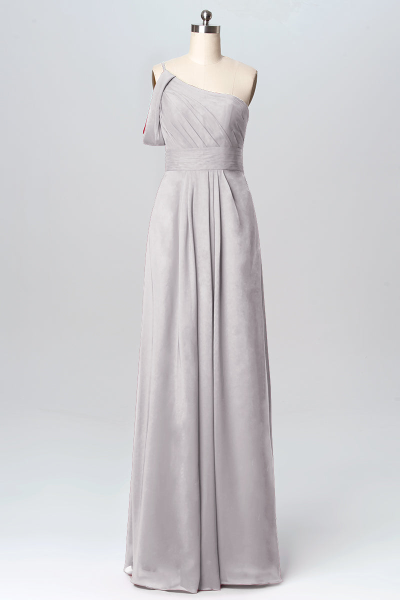 Chiffon Column One Shoulder Sleeveless Bridesmaid Dress-B03100