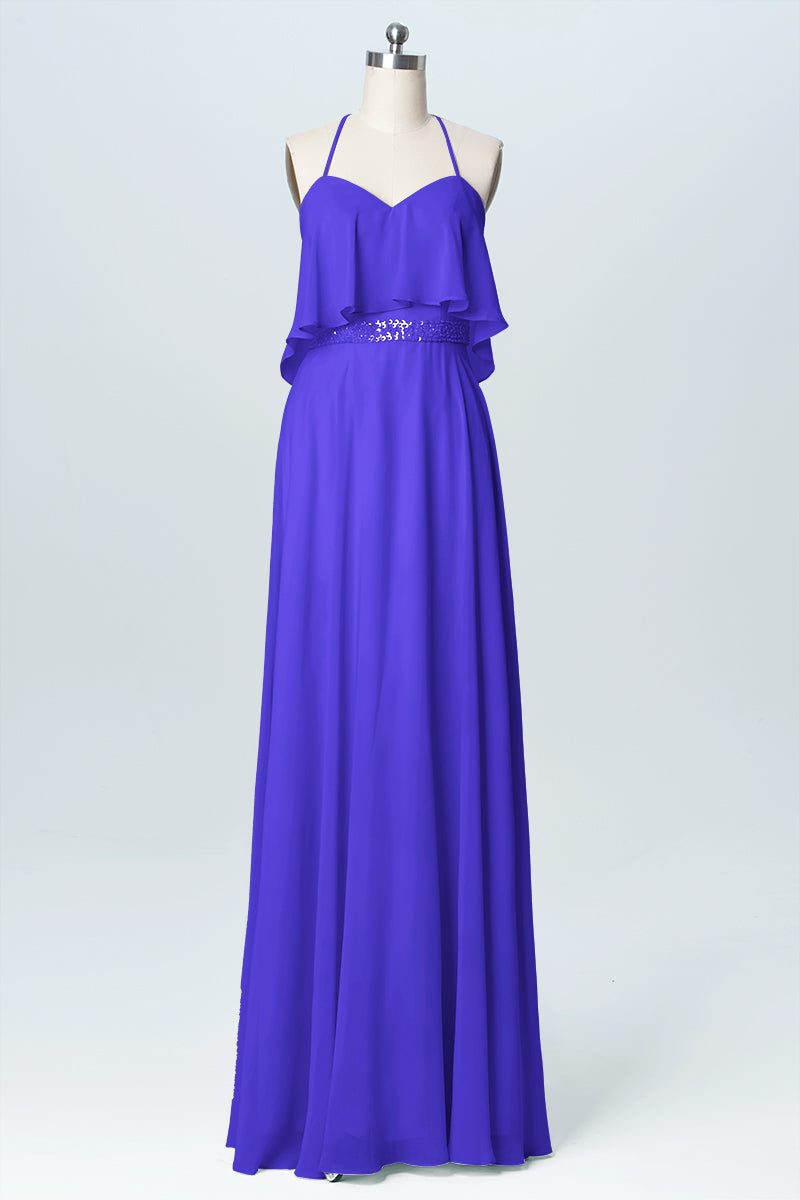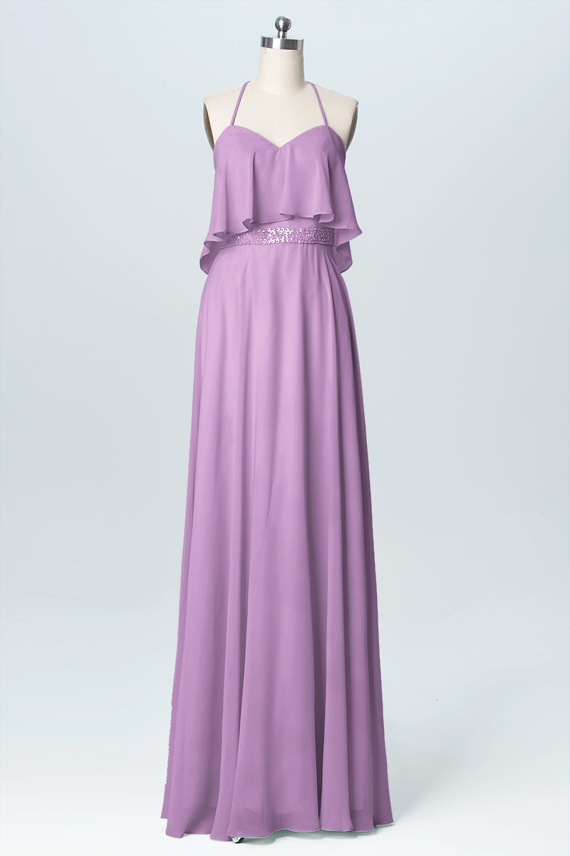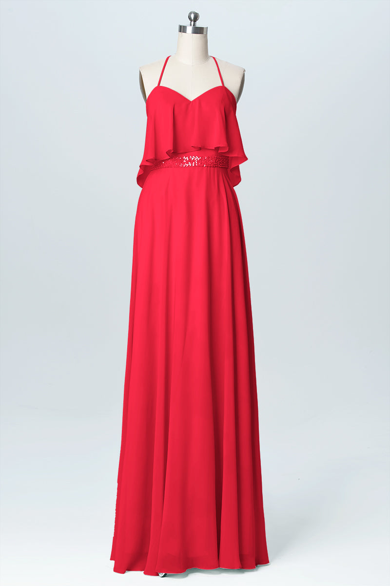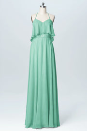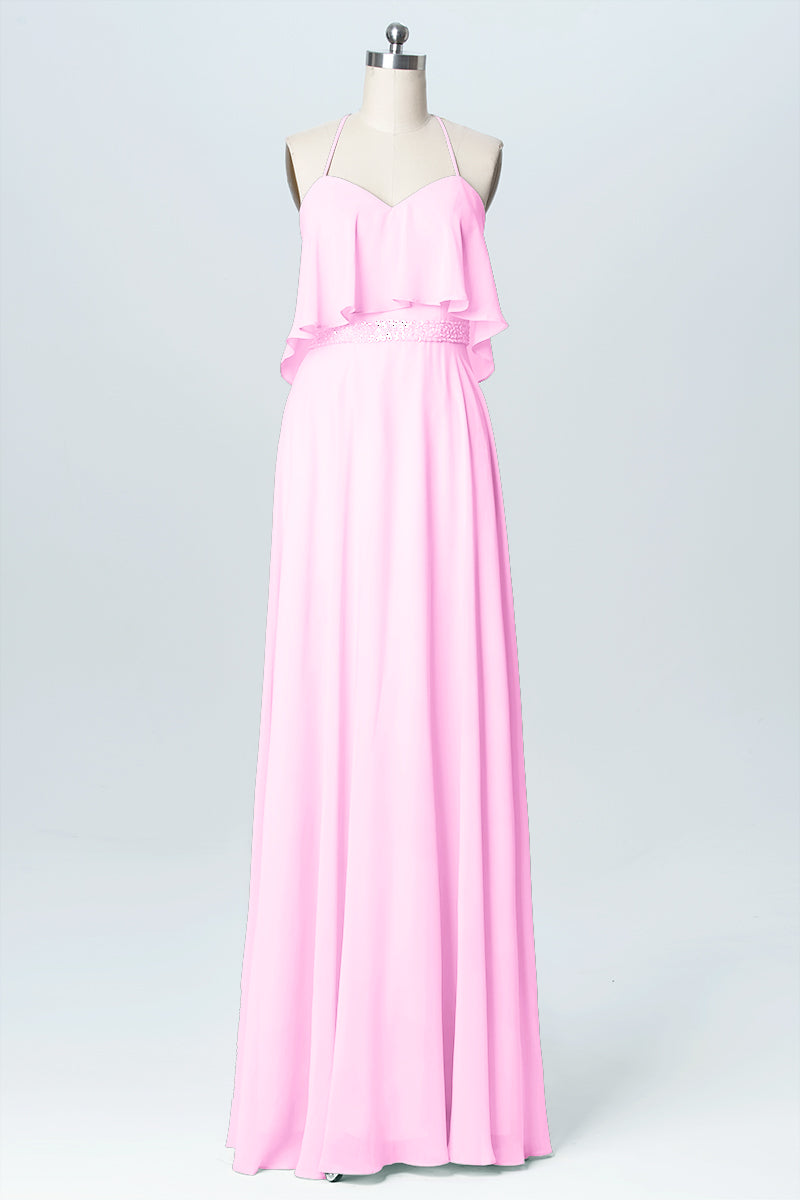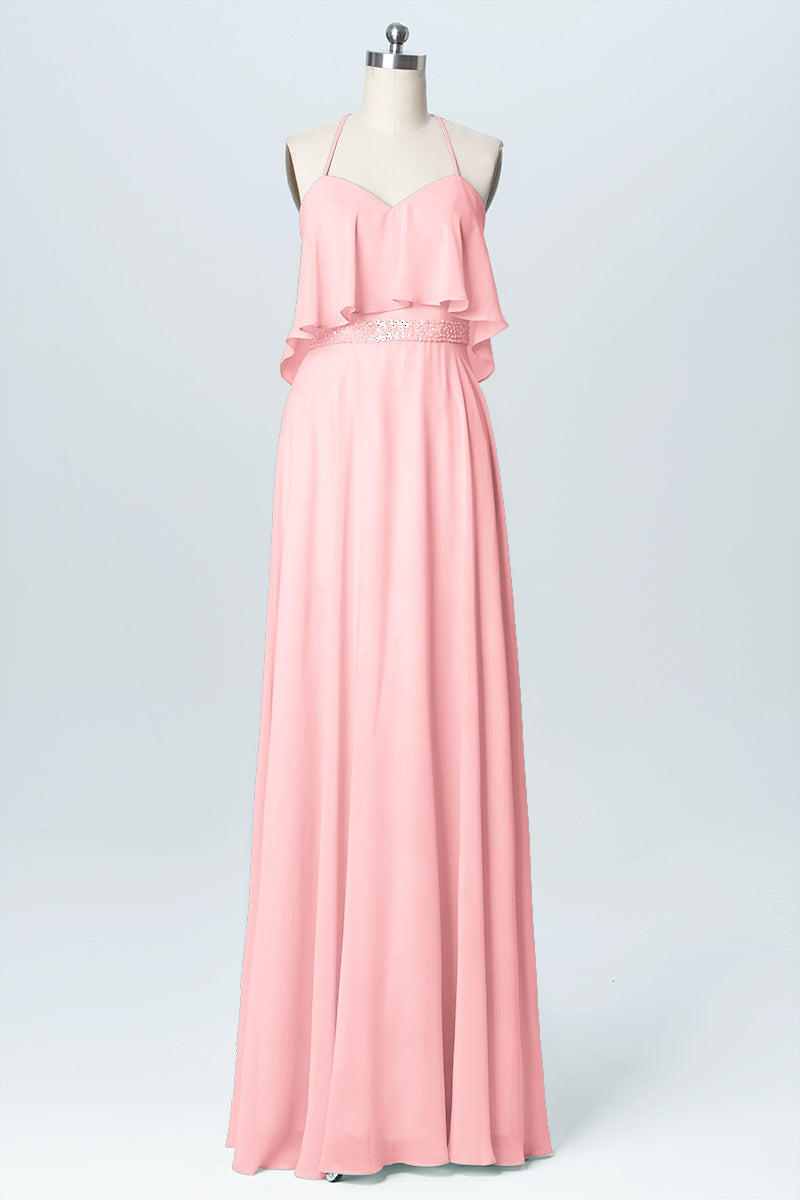 Chiffon Column Spaghetti Straps Sleeveless Bridesmaid Dress-B03045