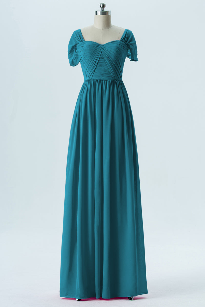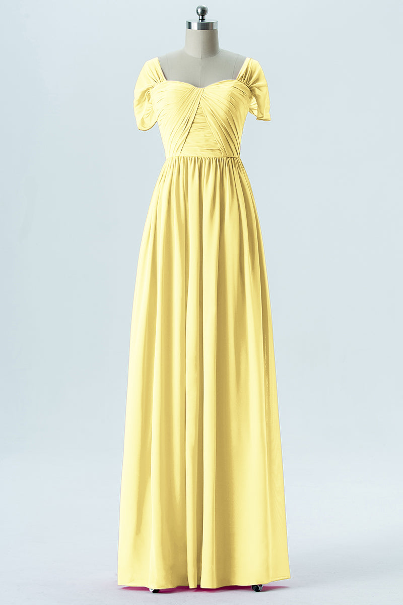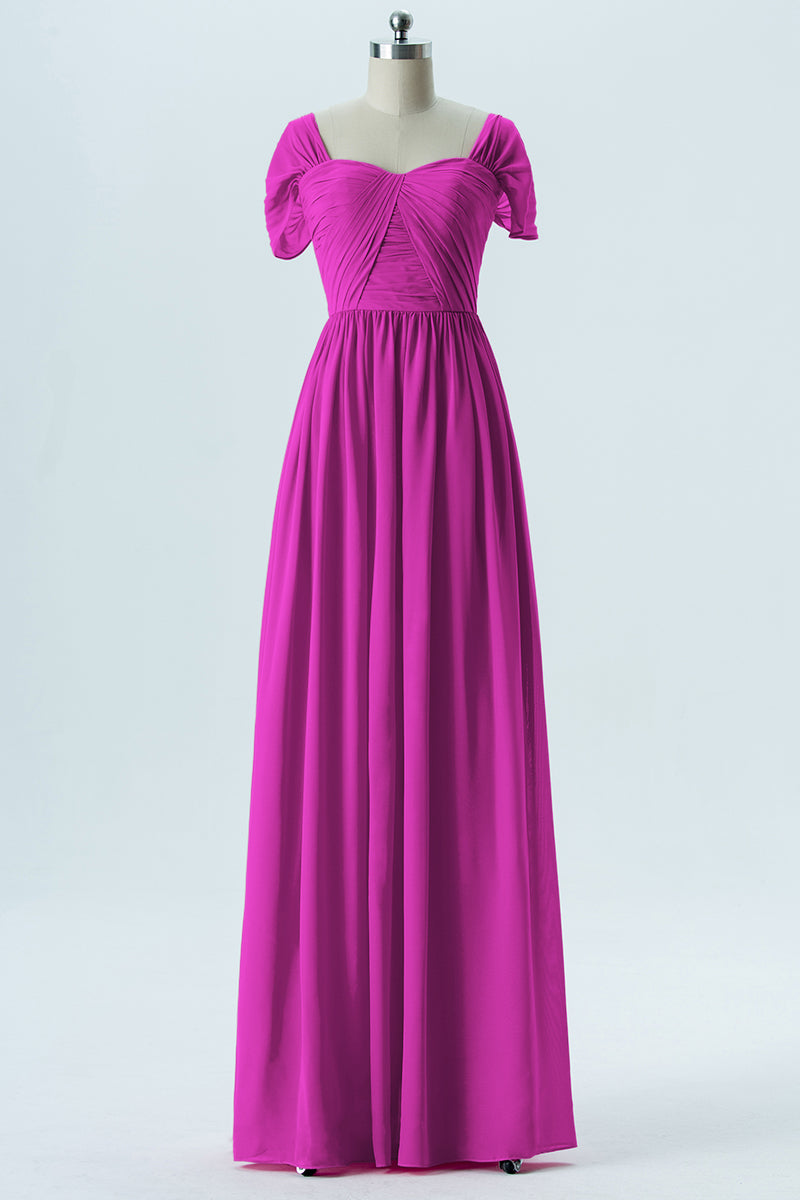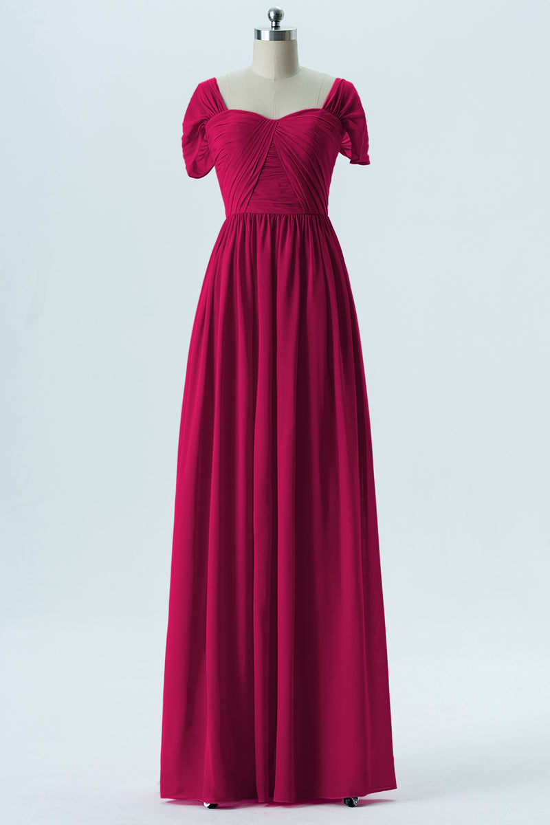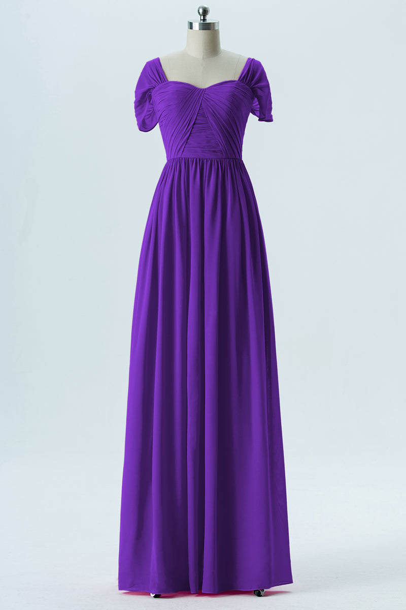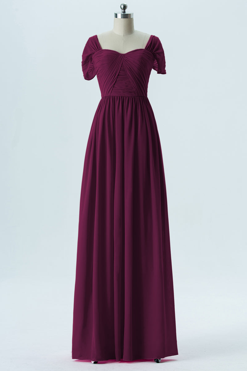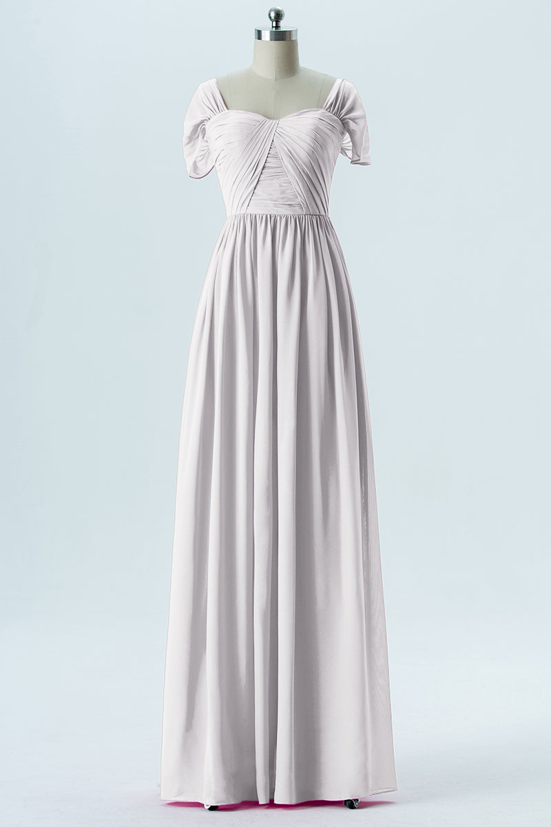 Chiffon Column Sweetheart Short Sleeves Bridesmaid Dress-B13661