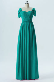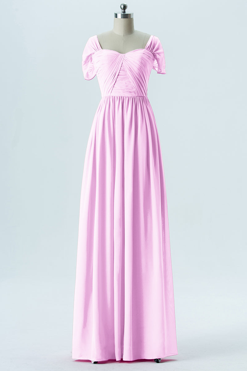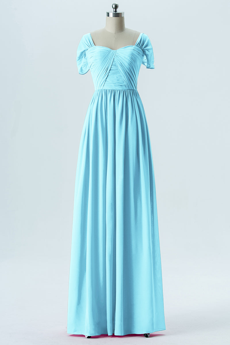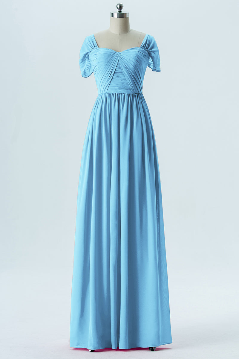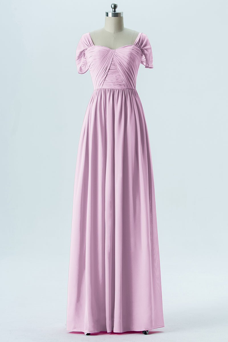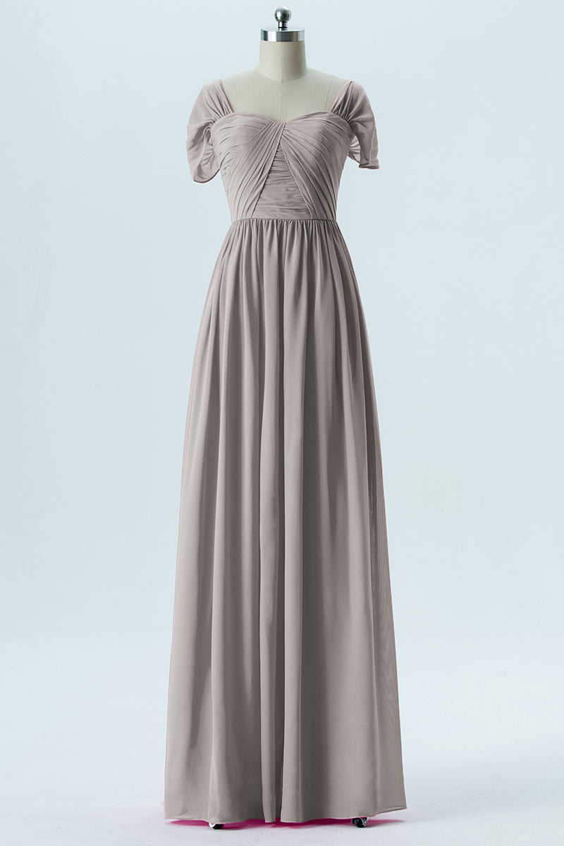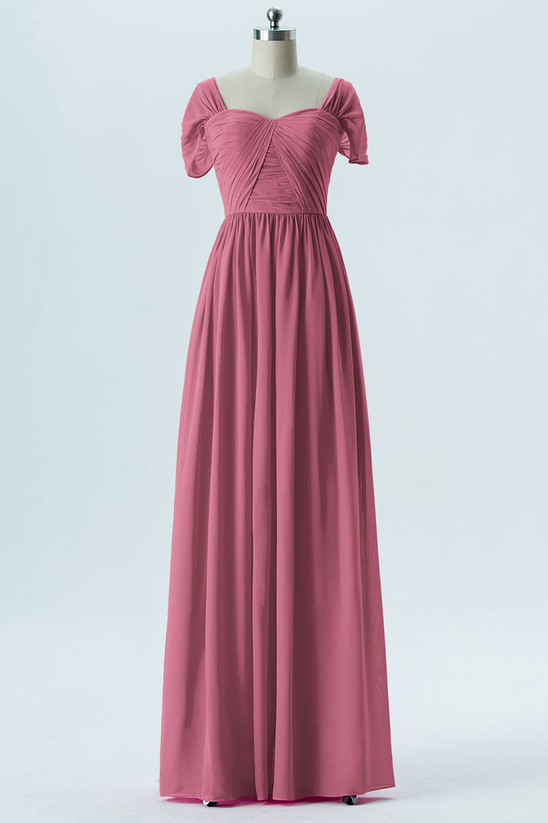 Chiffon Column Sweetheart Short Sleeves Bridesmaid Dress-B13661