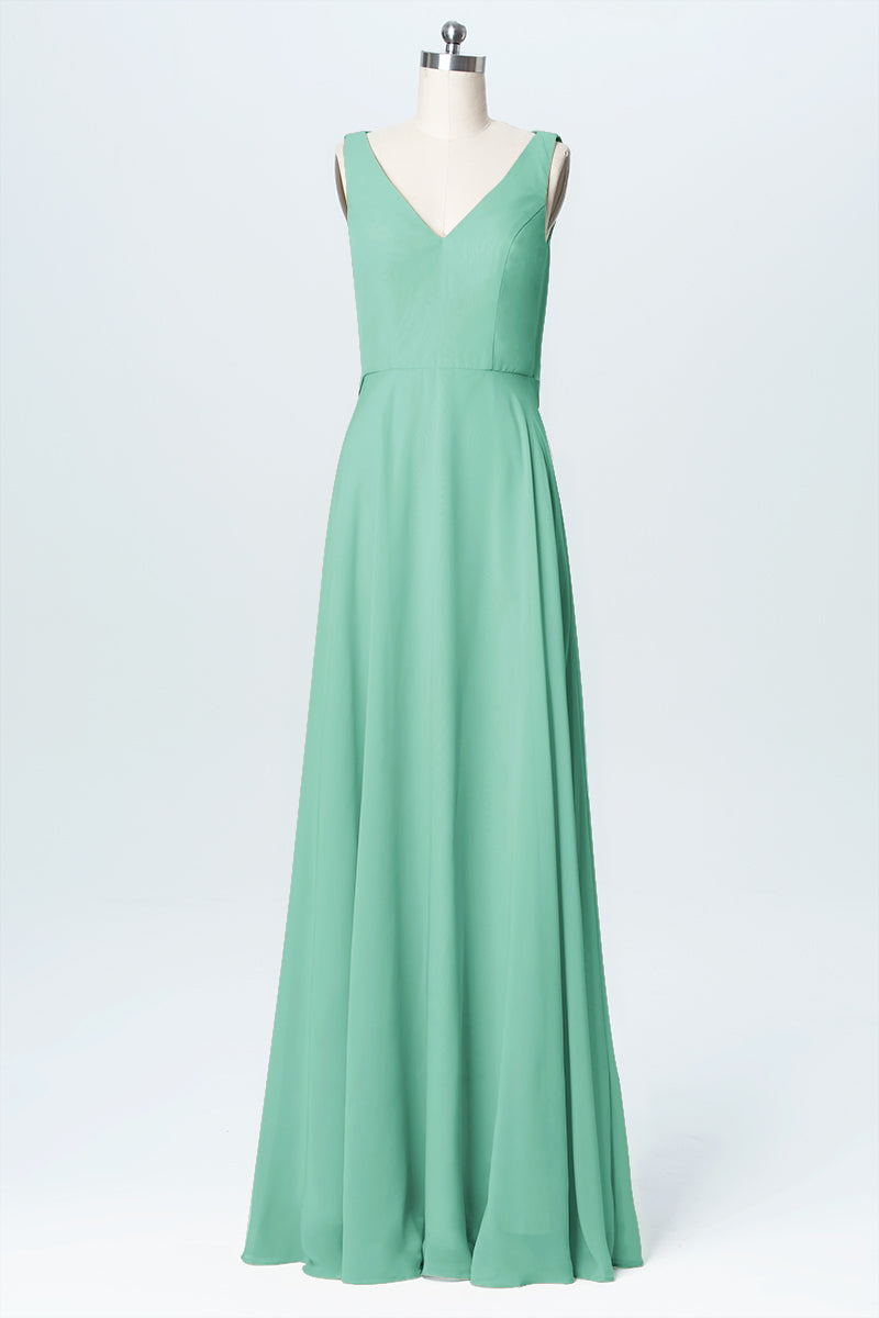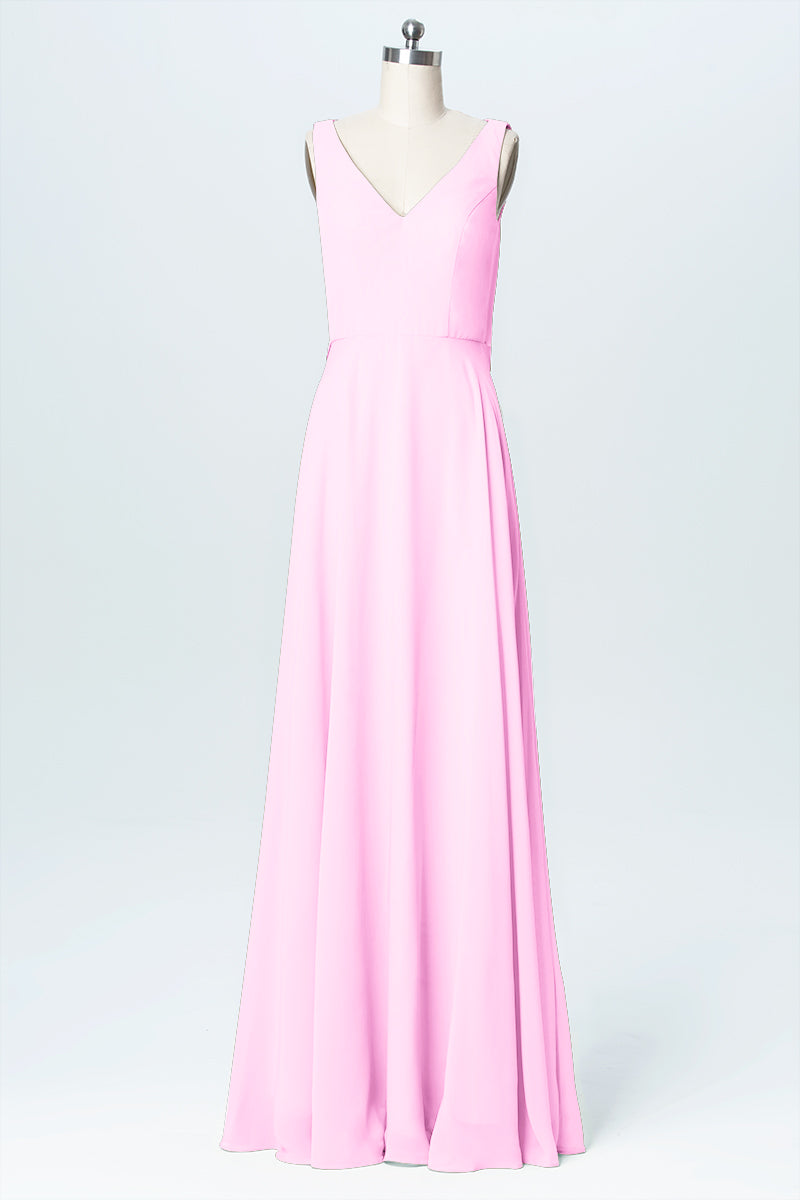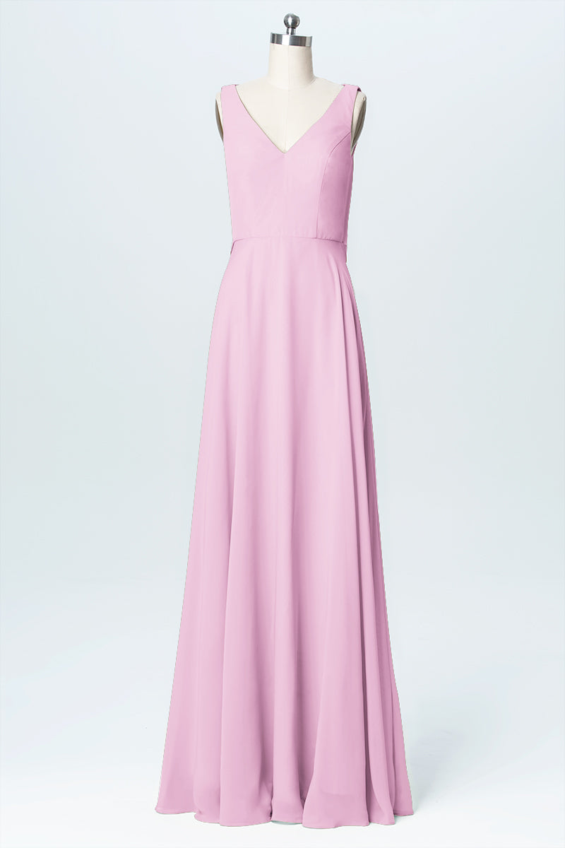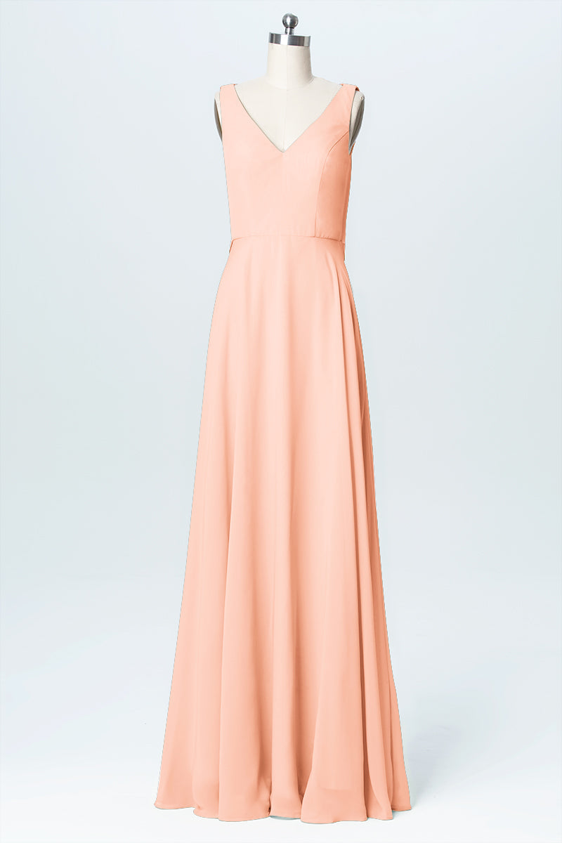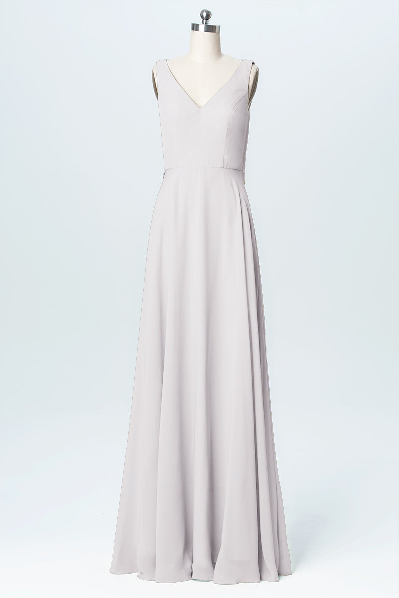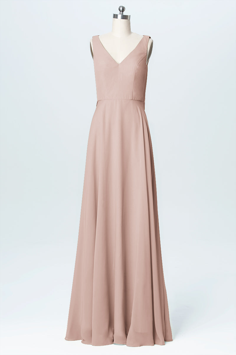 Chiffon Column V-Neck Sleeveless Bridesmaid Dress-B03056