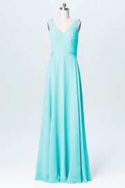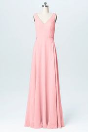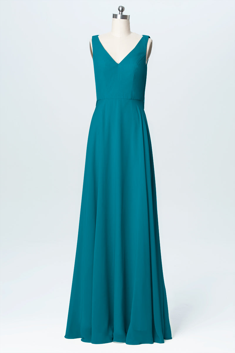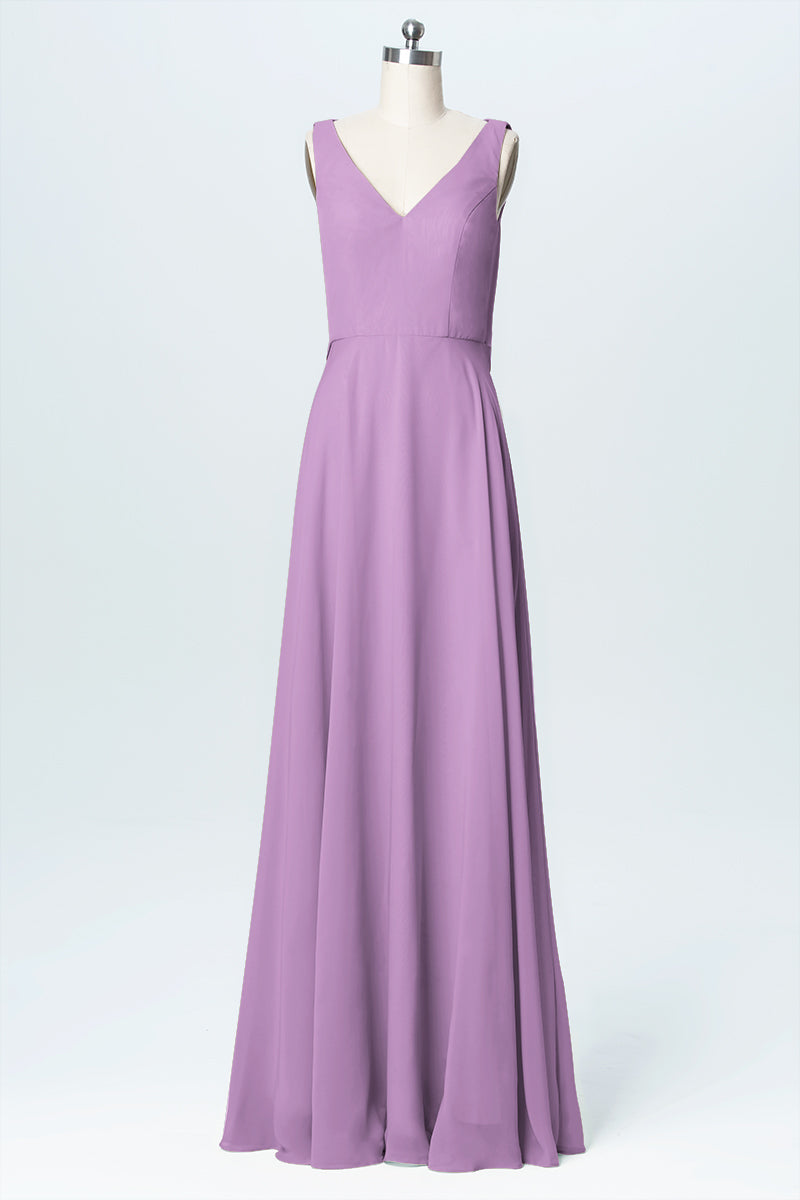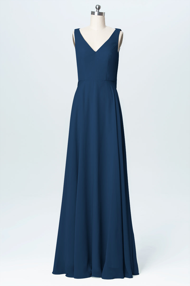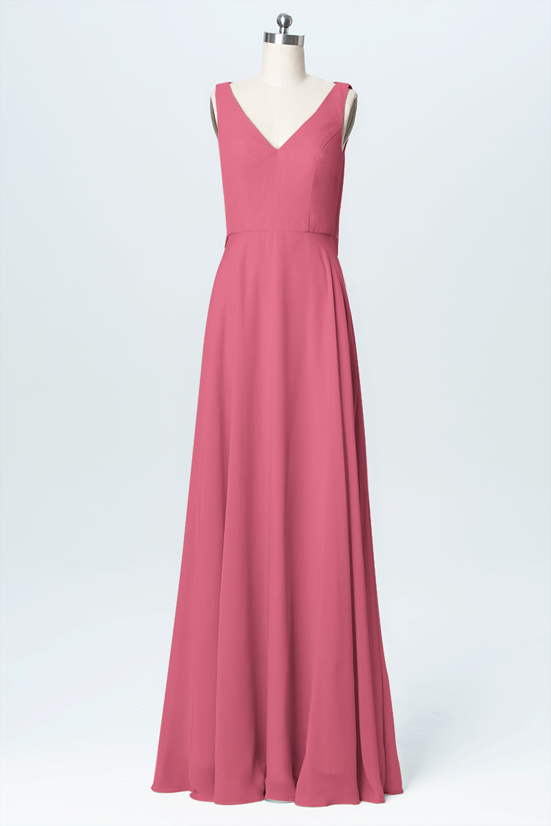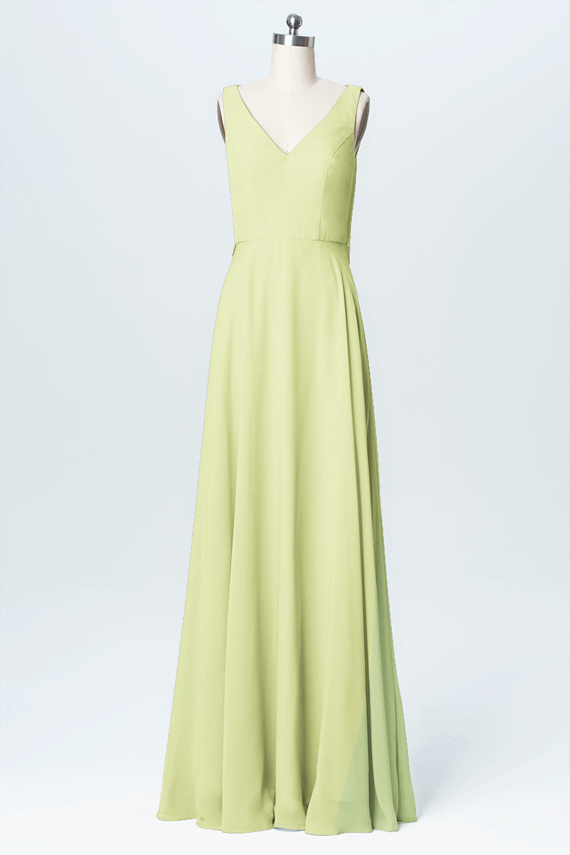 Chiffon Column V-Neck Sleeveless Bridesmaid Dress-B03056