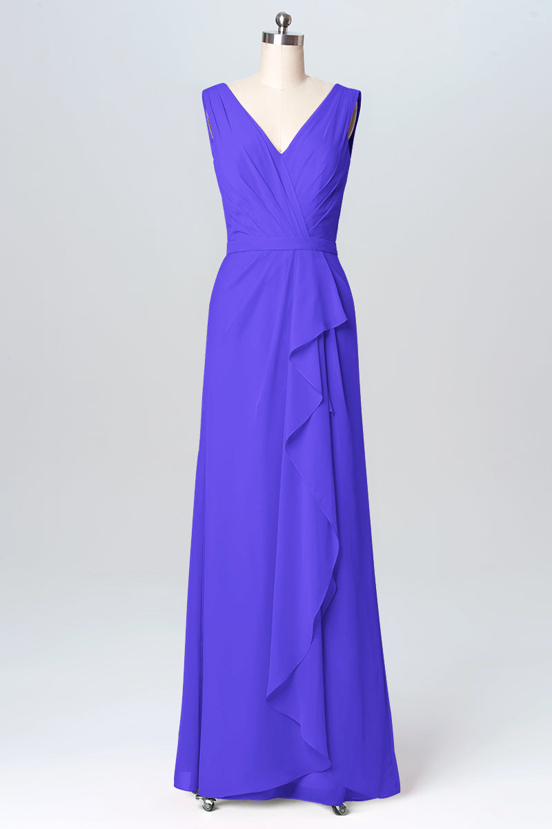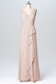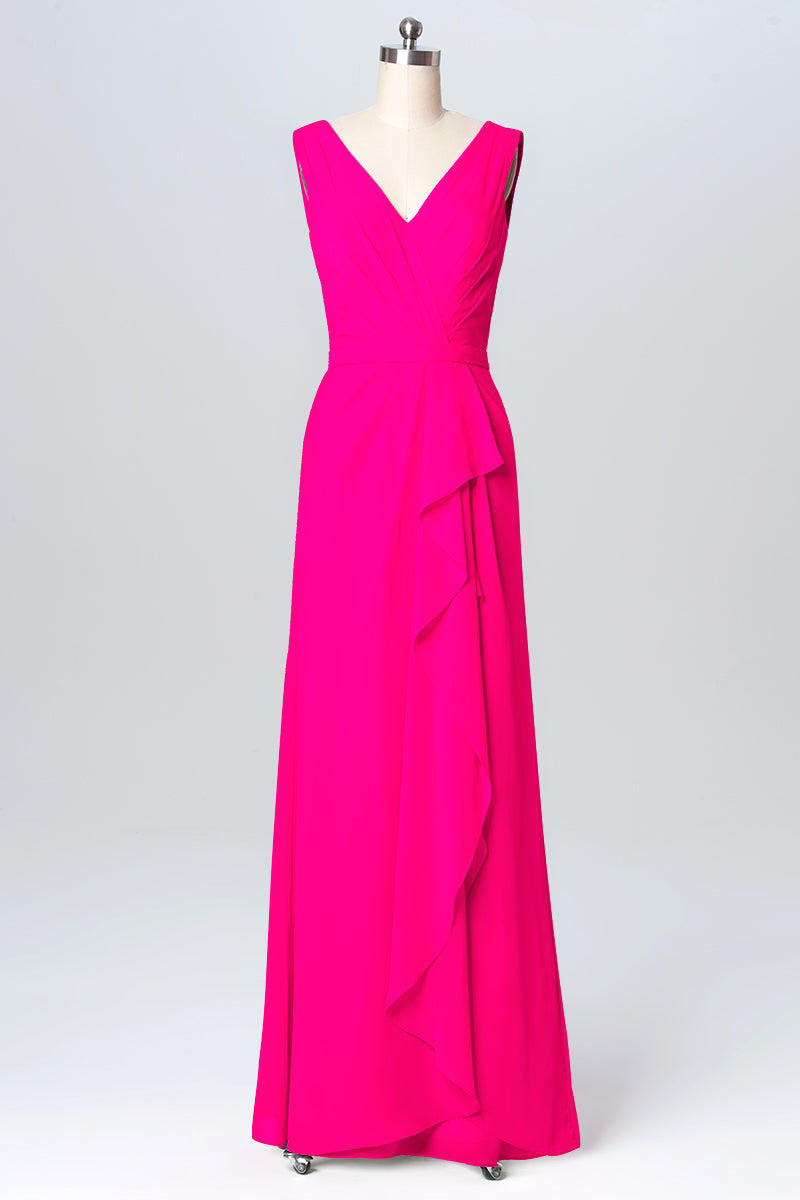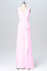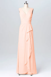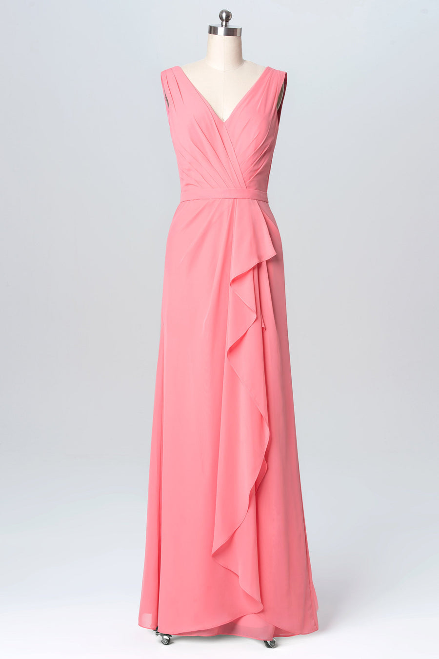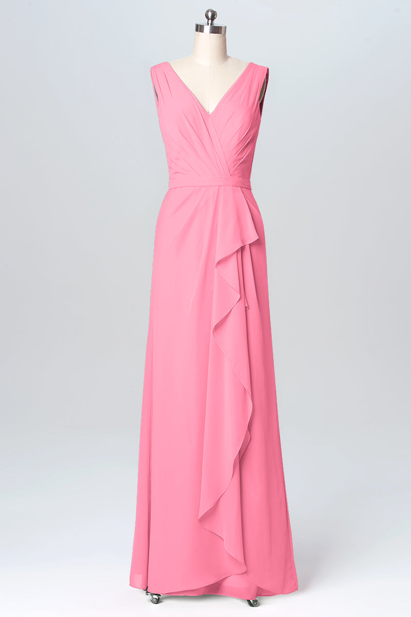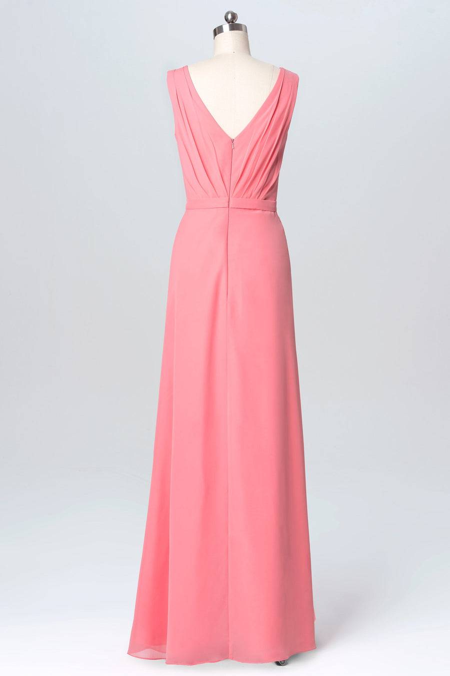 Chiffon Column V-Neck Sleeveless Bridesmaid Dress-B03093