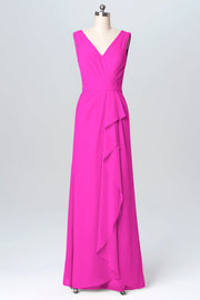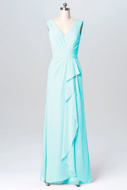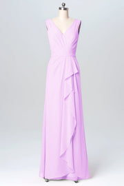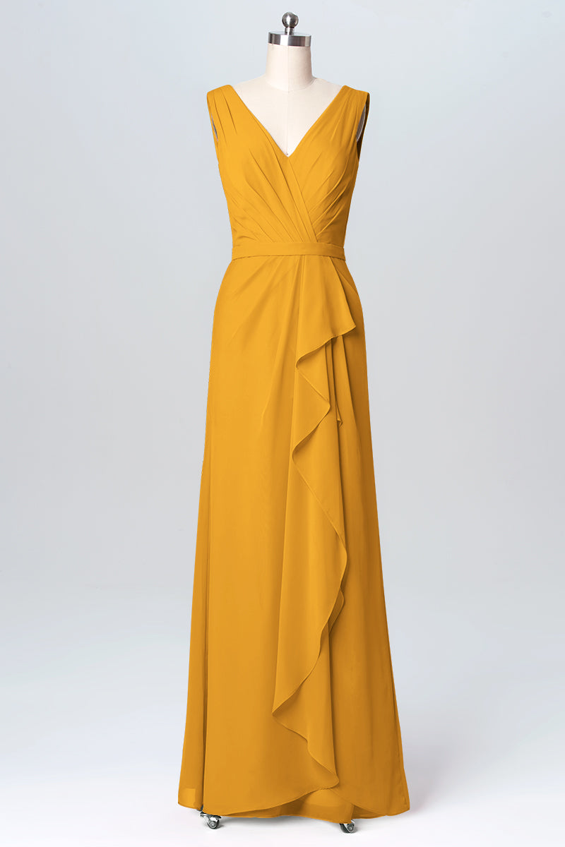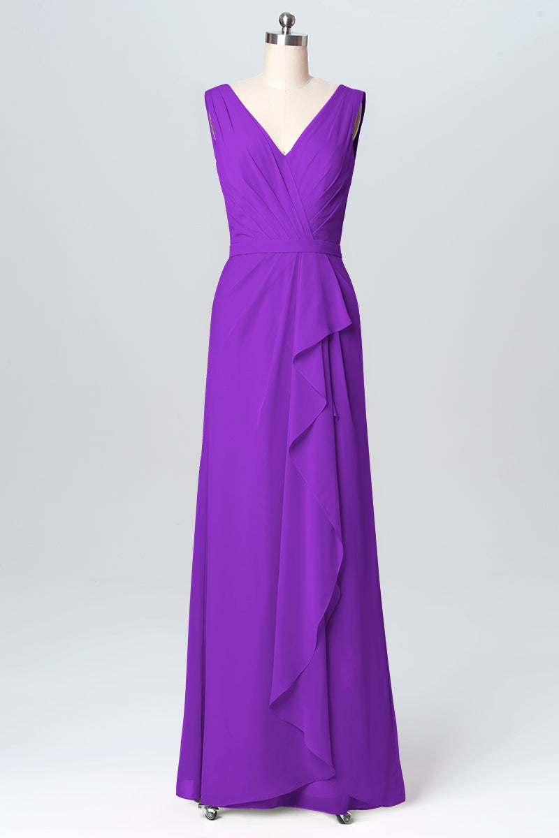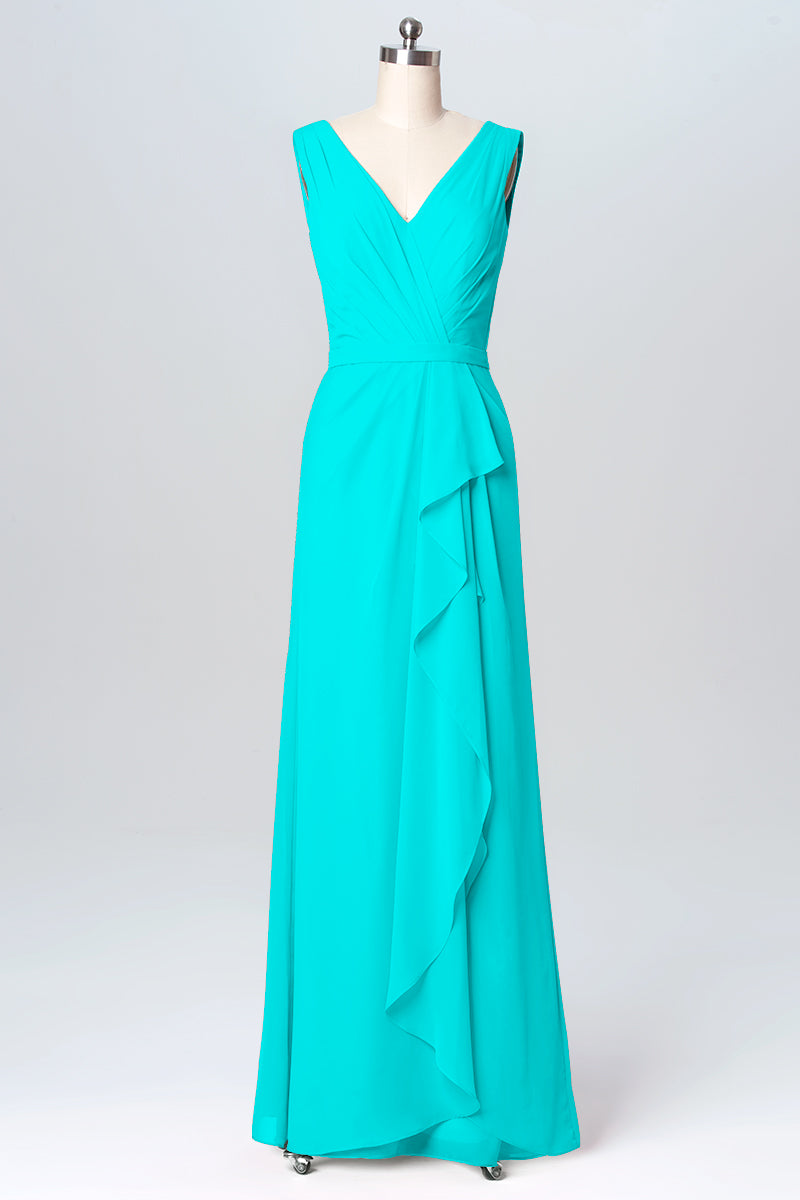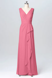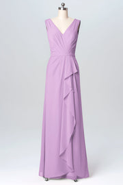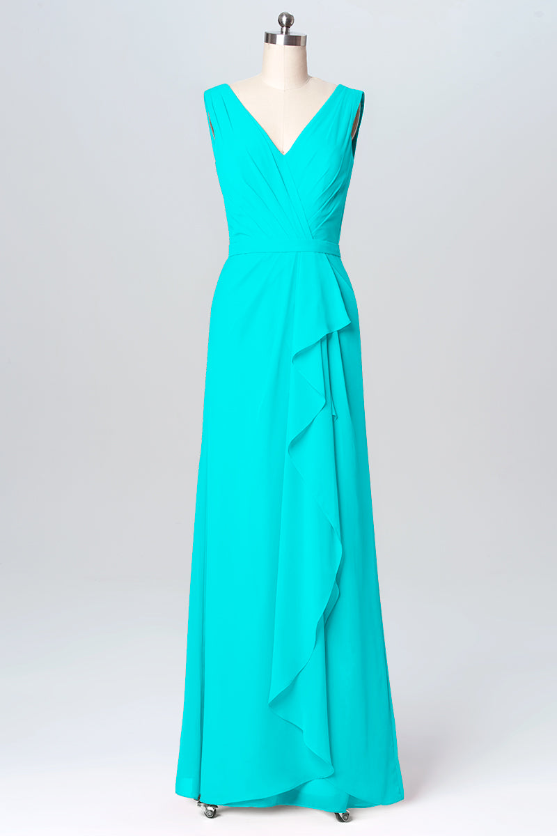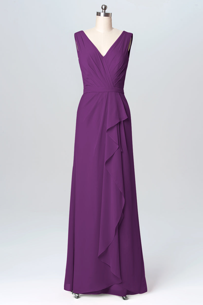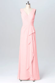 Chiffon Column V-Neck Sleeveless Bridesmaid Dress-B03093