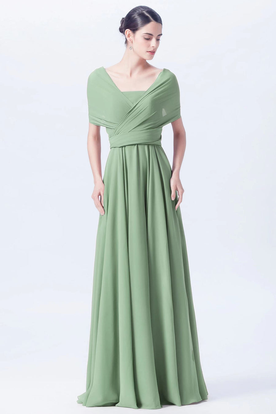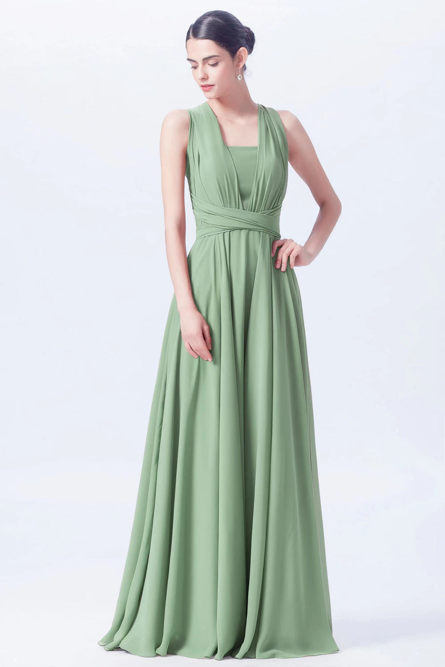 Chiffon A-line Convertible Sleeveless Bridesmaid Dress-B04979