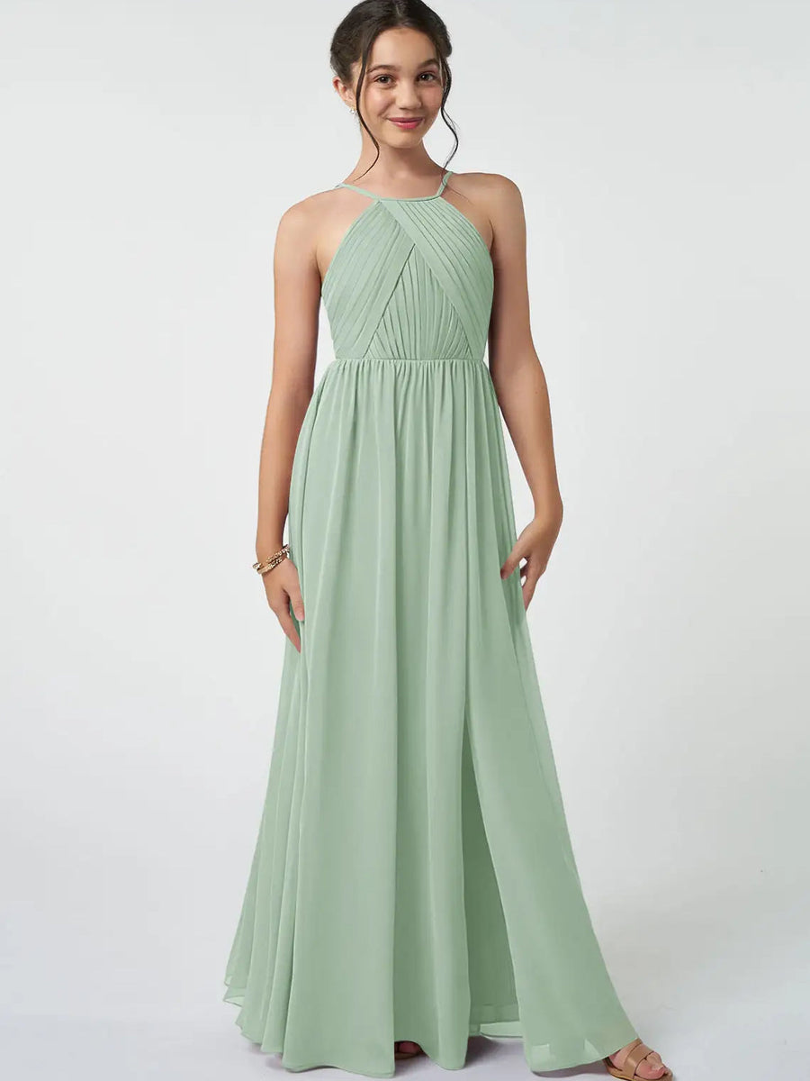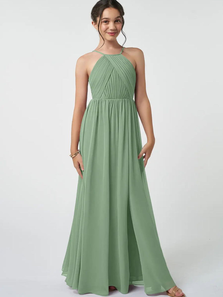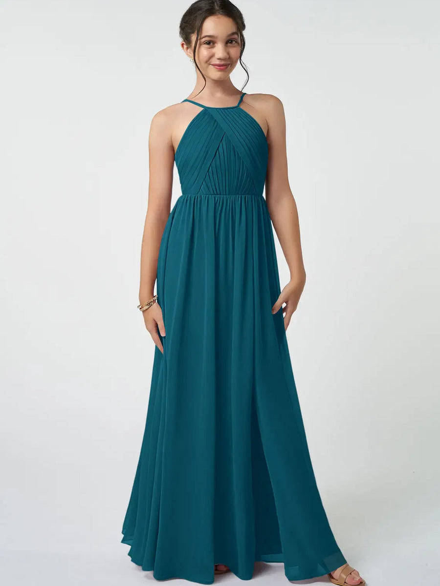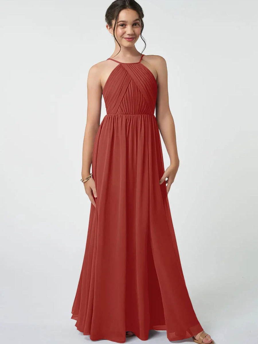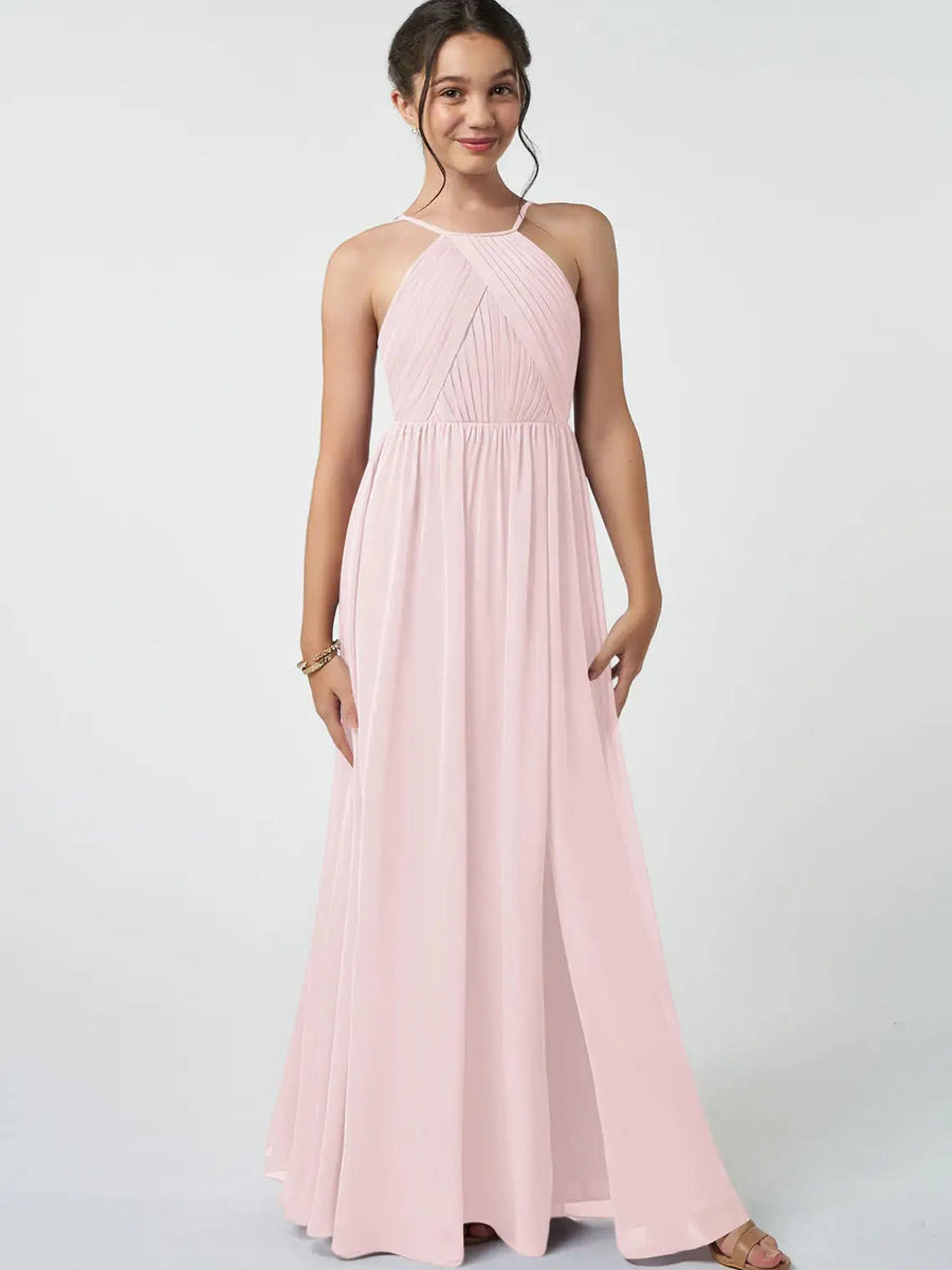 Chiffon A-Line Halter Sleeveless Junior Dress-BJ00010