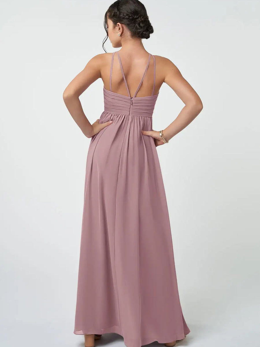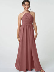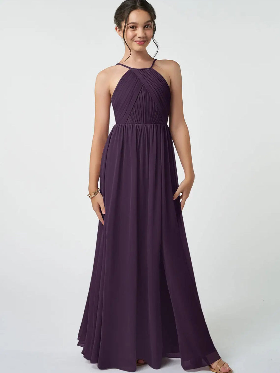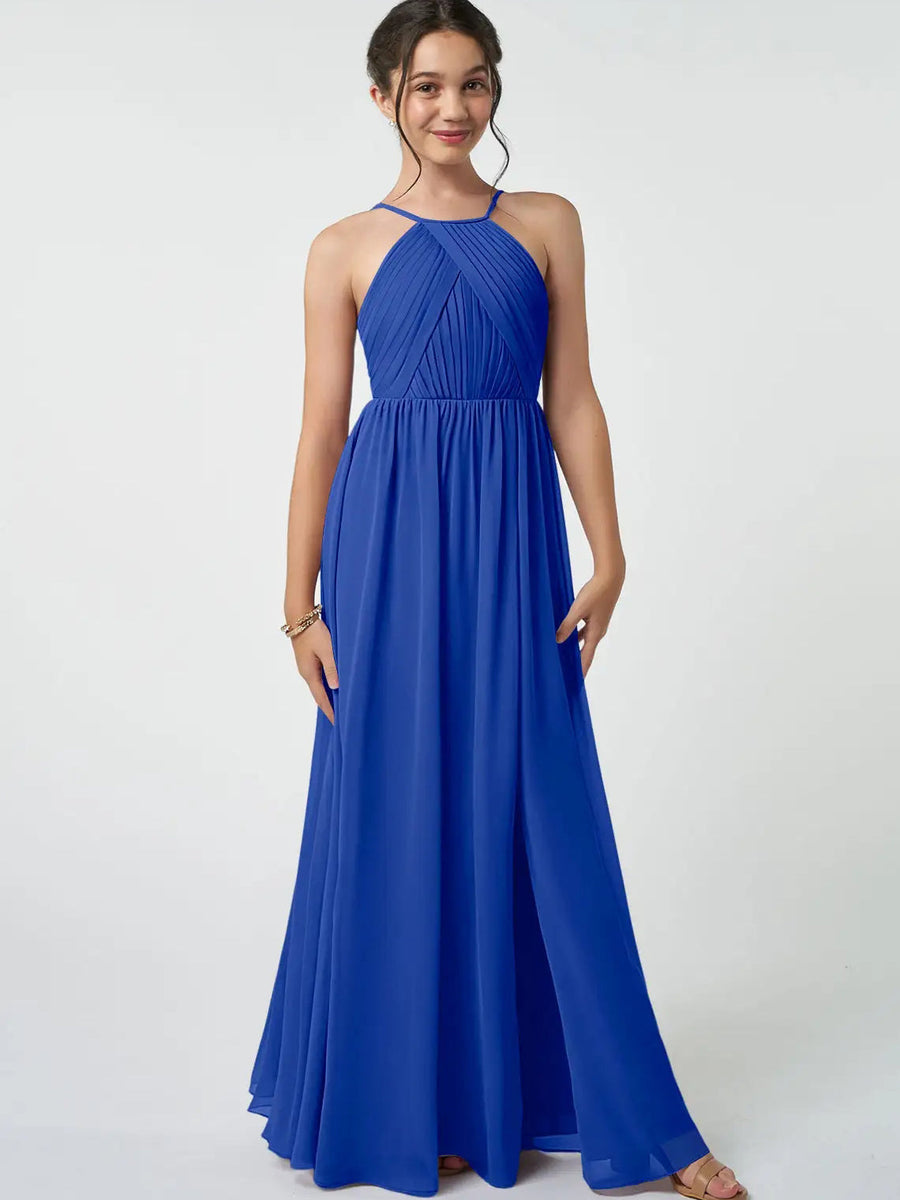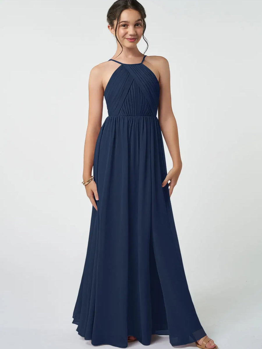 Chiffon A-Line Halter Sleeveless Junior Dress-BJ00010