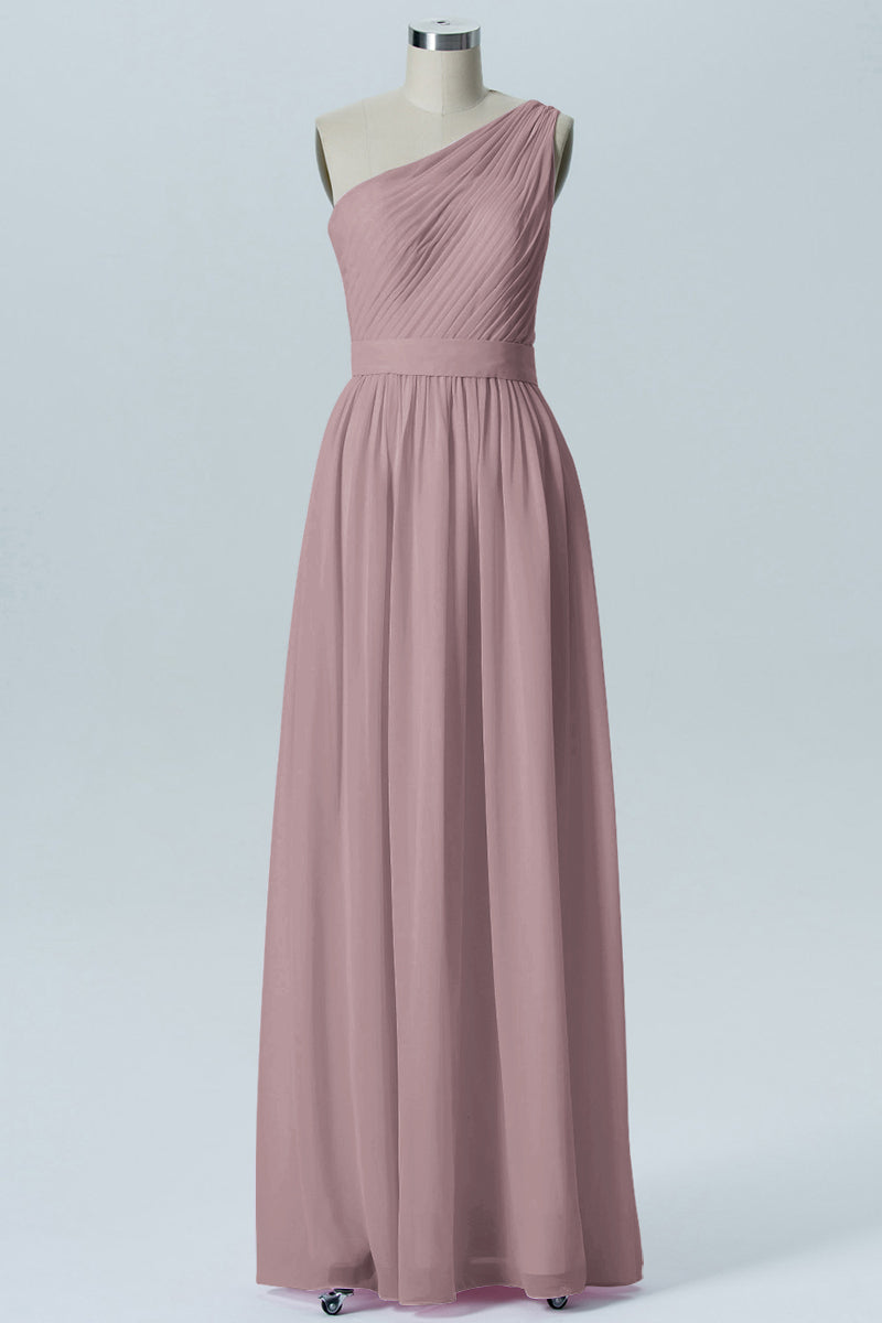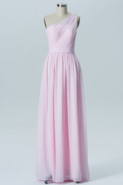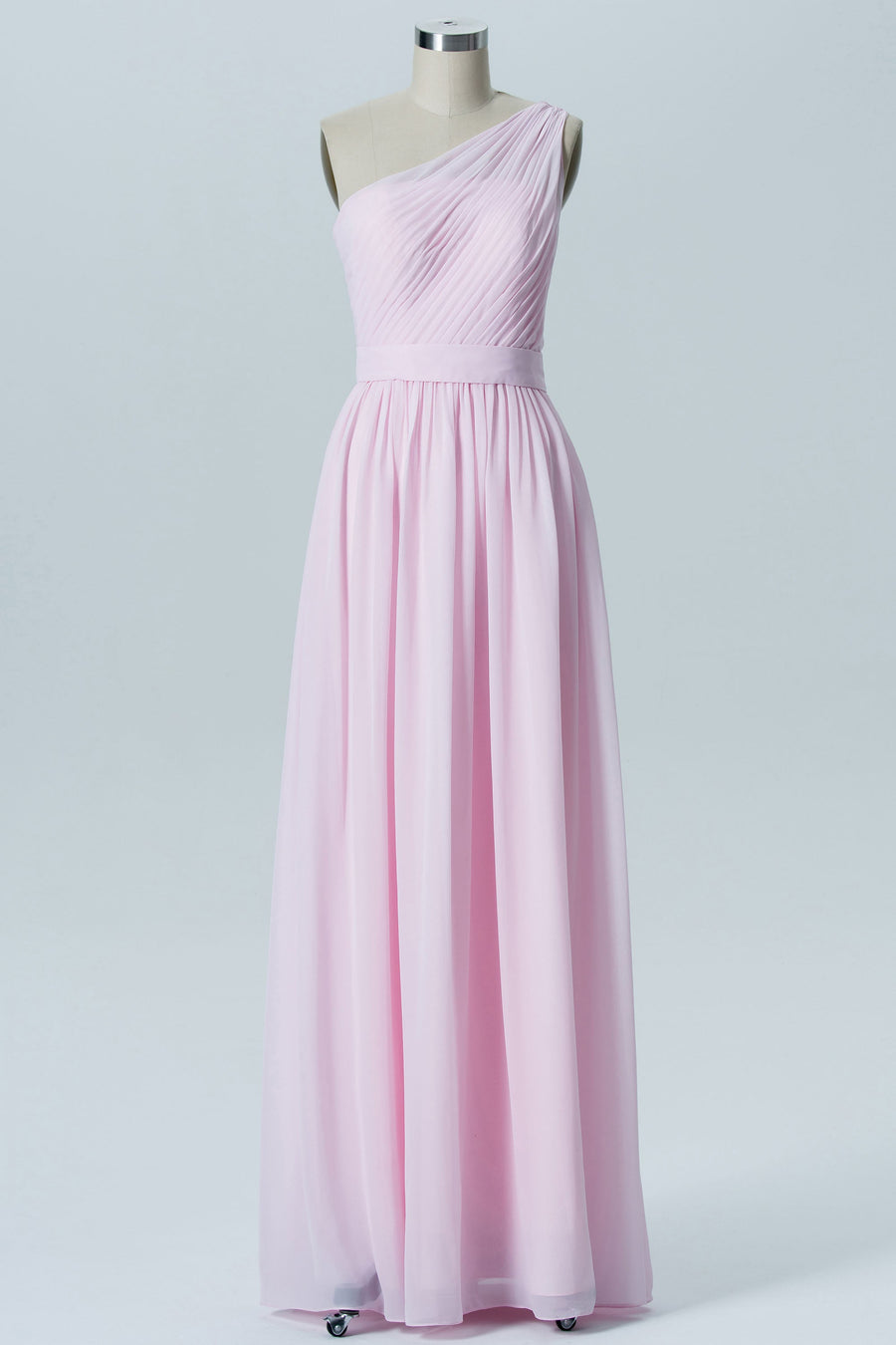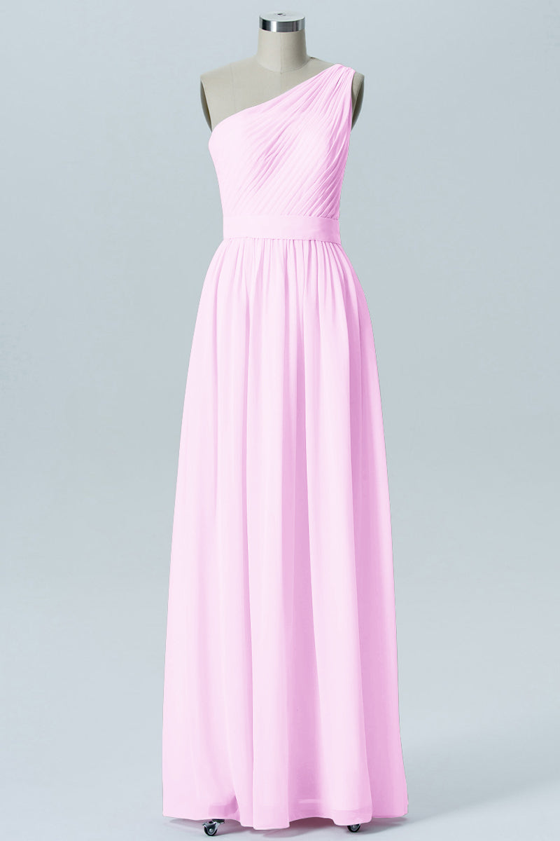 Chiffon A-line One Shoulder Sleeveless Bridesmaid Dress-B07615