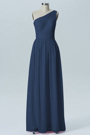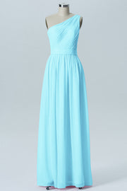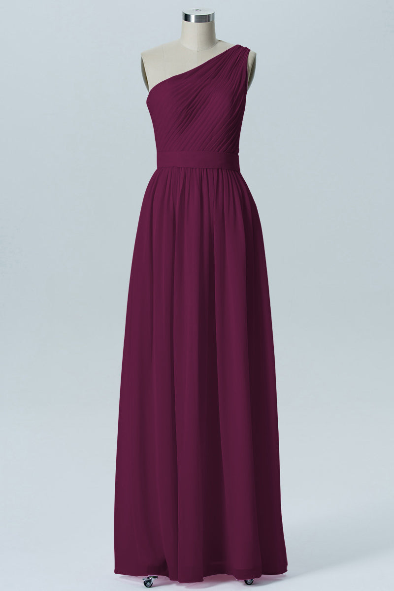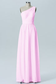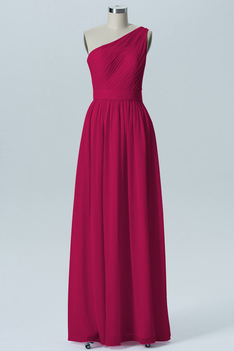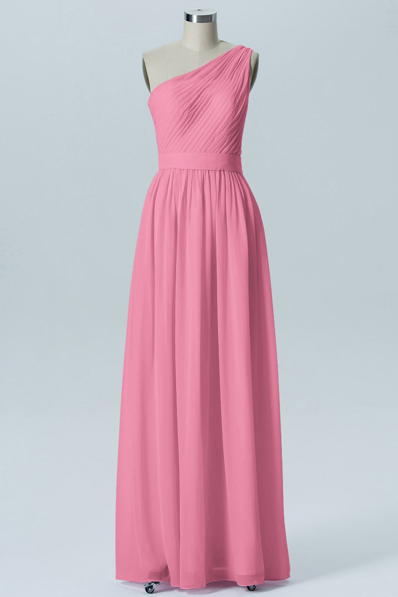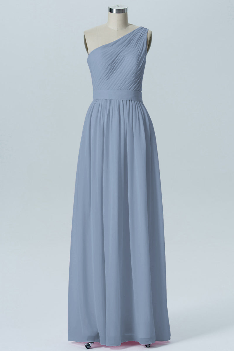 Chiffon A-line One Shoulder Sleeveless Bridesmaid Dress-B07615