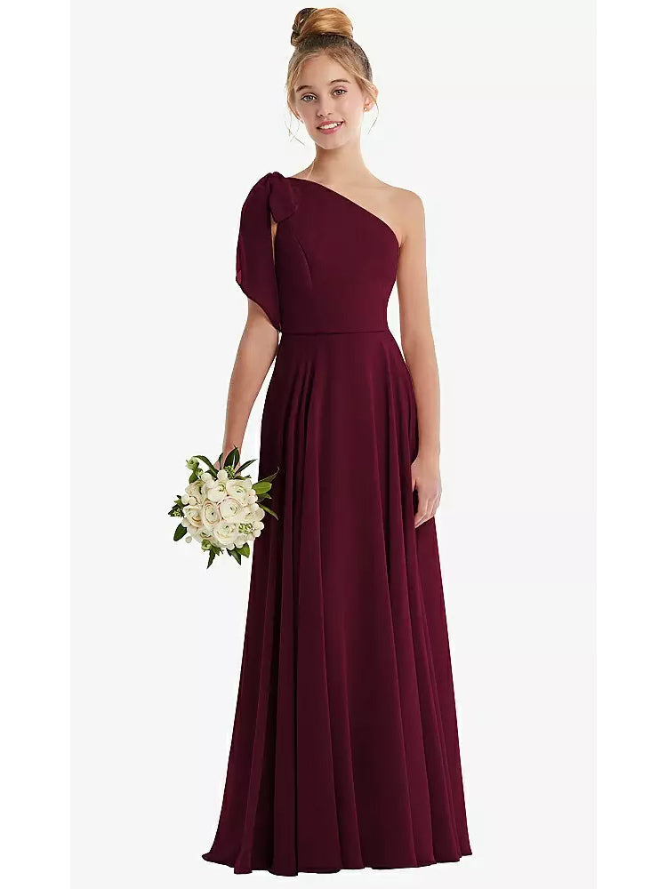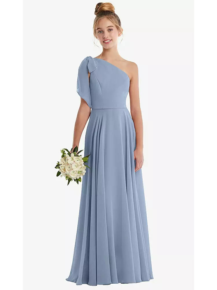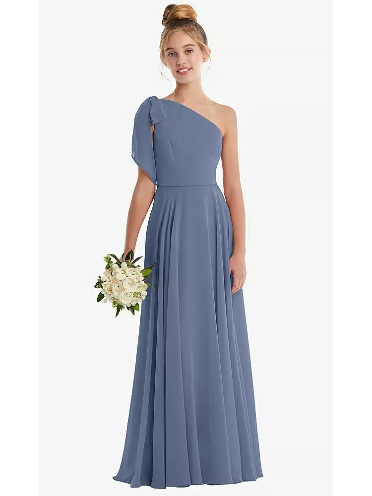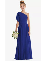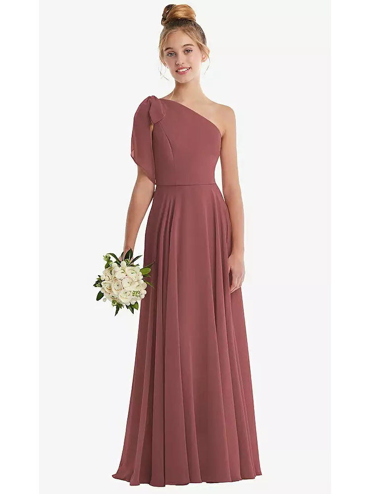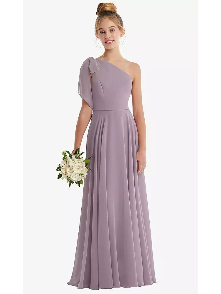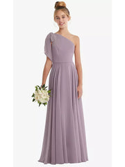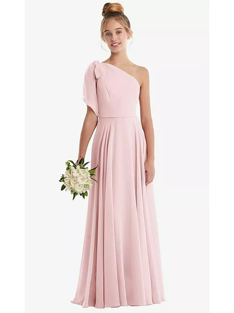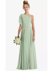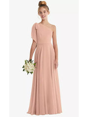 Chiffon A-Line One Shoulder Sleeveless Junior Dress-BJ00020