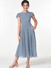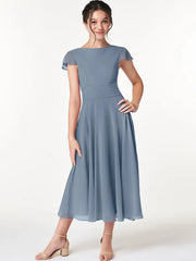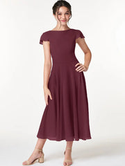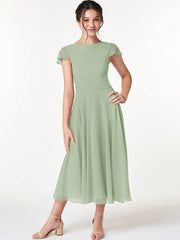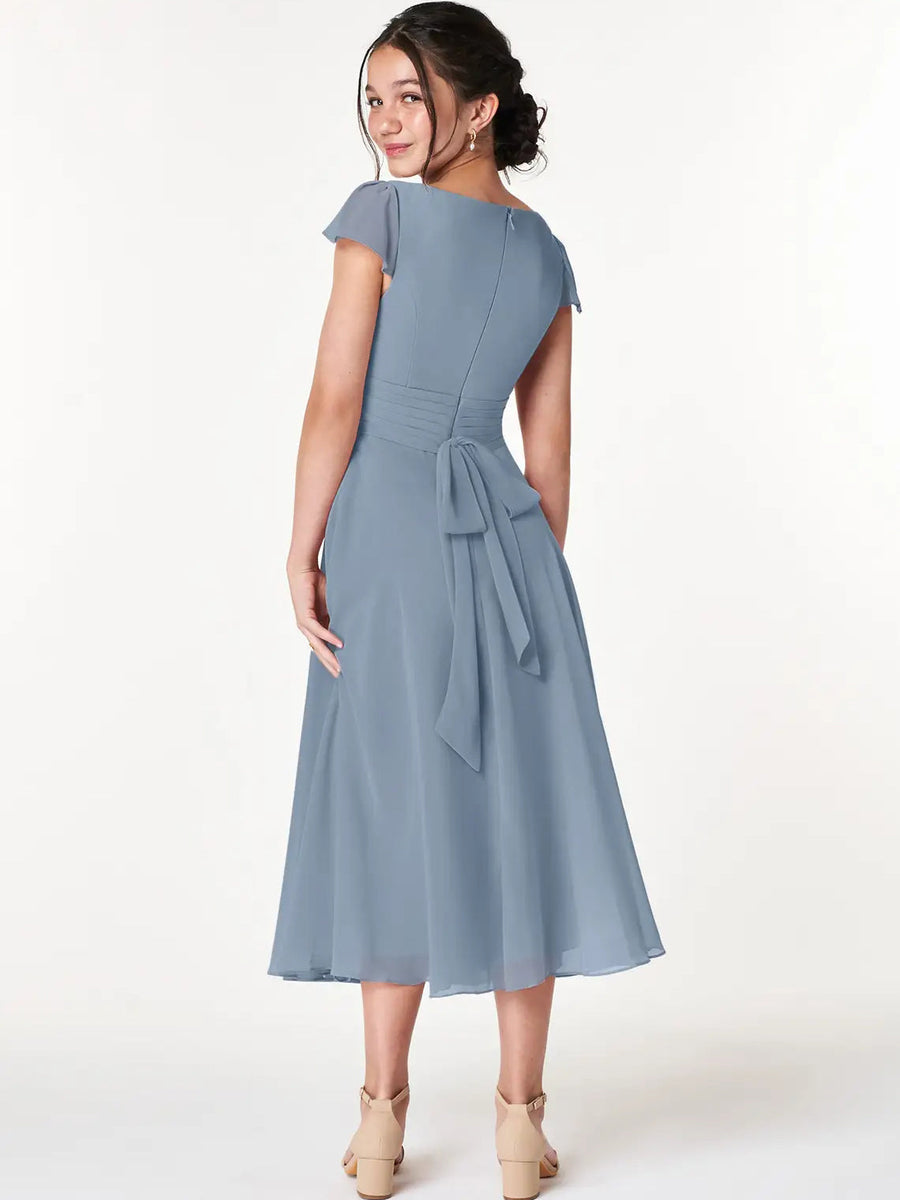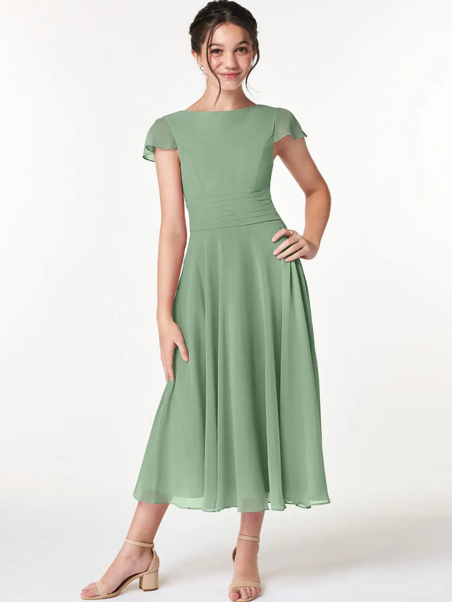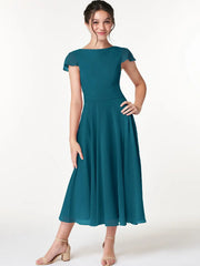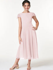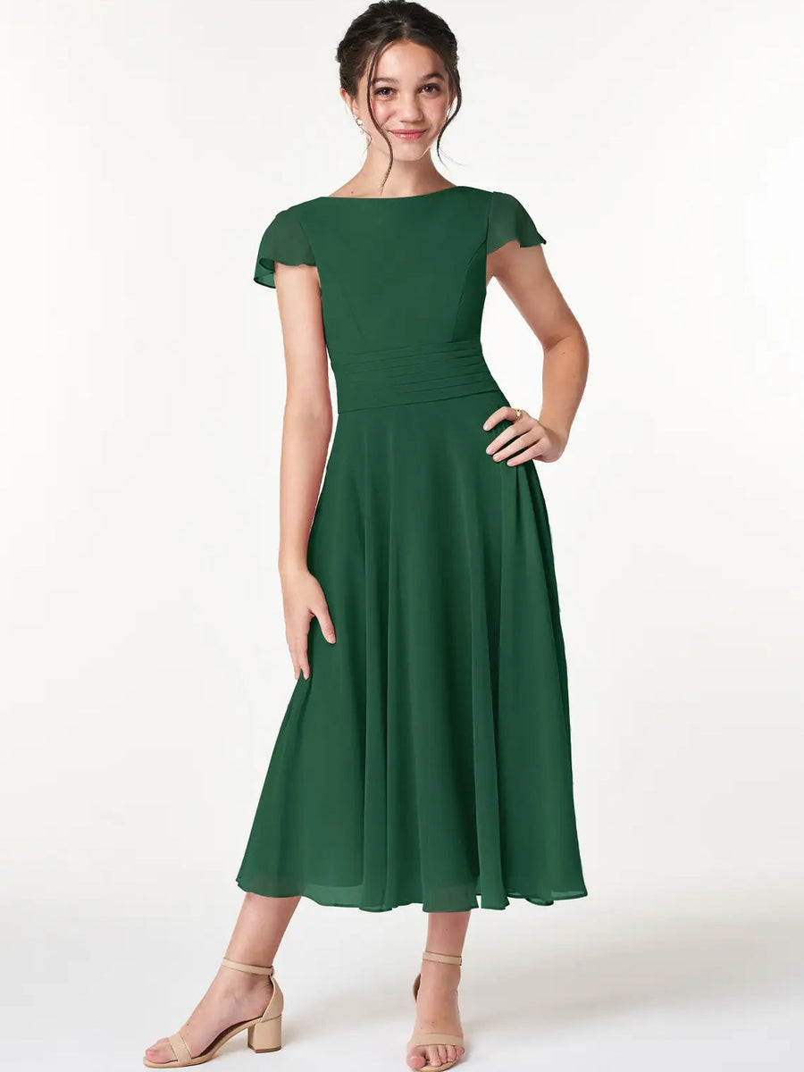 Chiffon A-Line Scoop Neck Half Sleeves Junior Dress-BJ00022