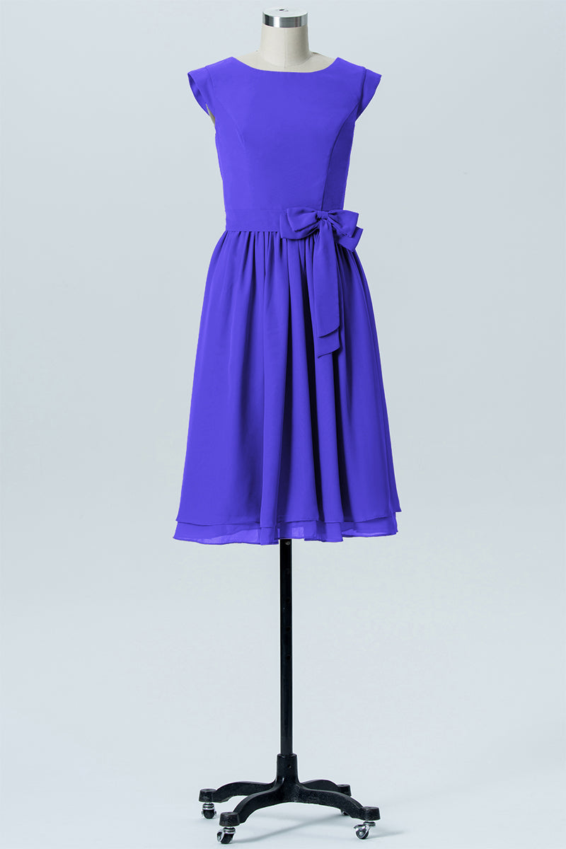 Chiffon A-line Scoop Neck Sleeveless Bridesmaid Dress-B03978