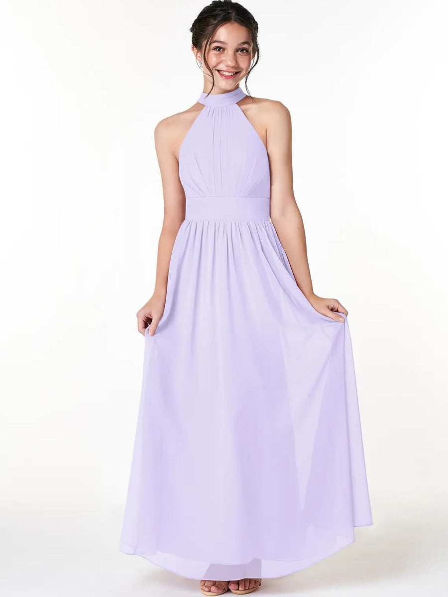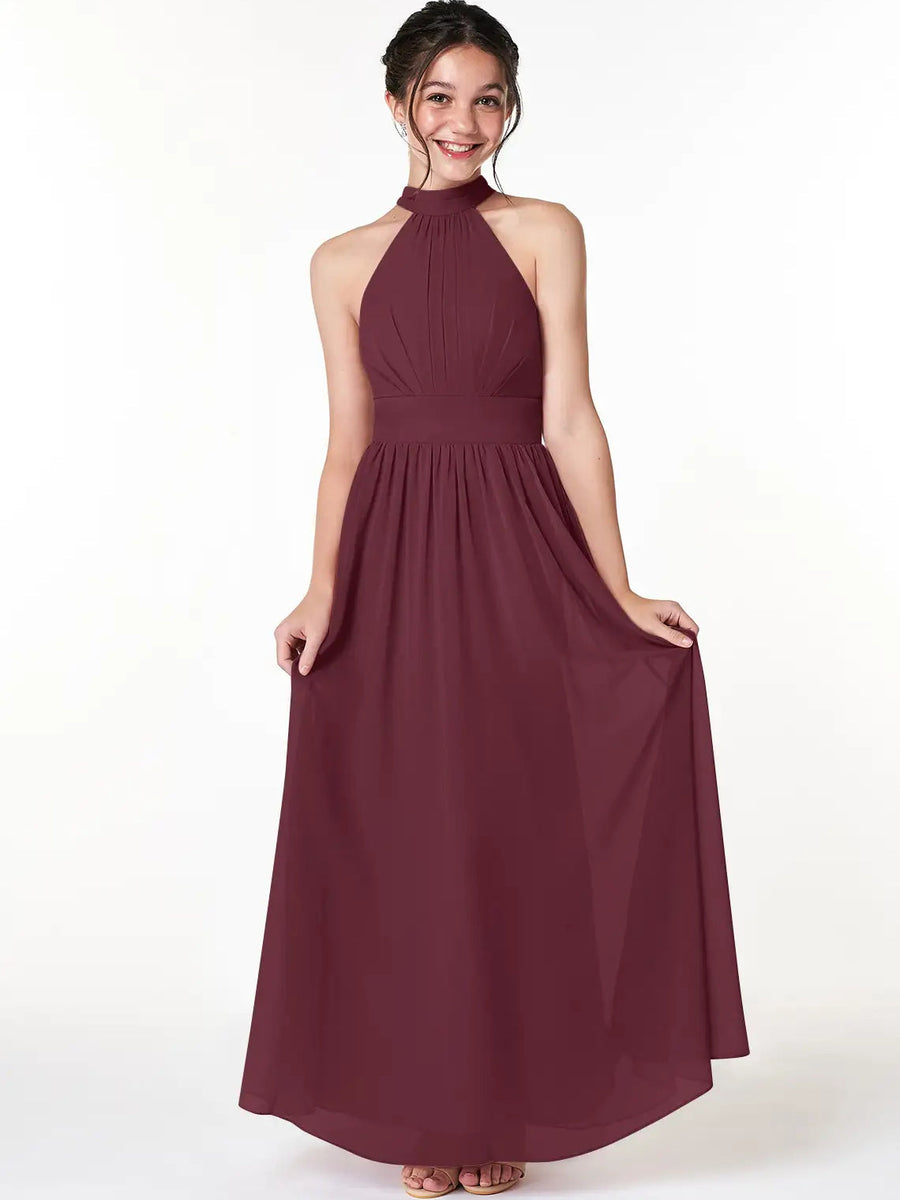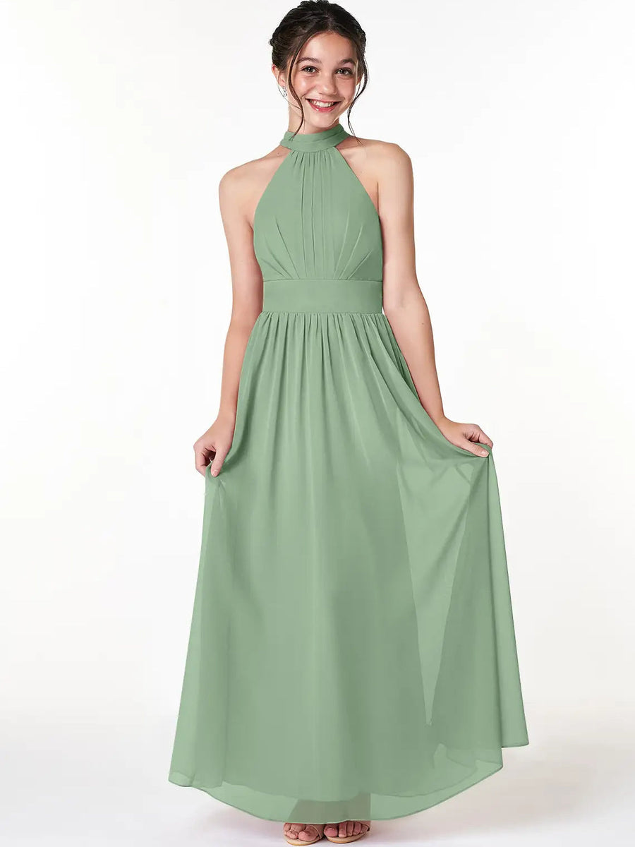 Chiffon A-Line Scoop Neck Sleeveless Junior Dress-BJ00024