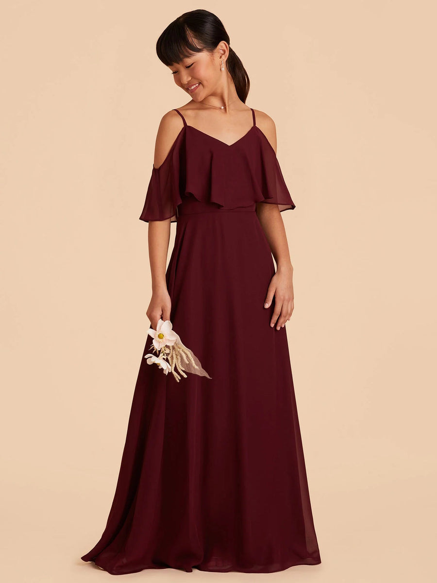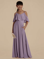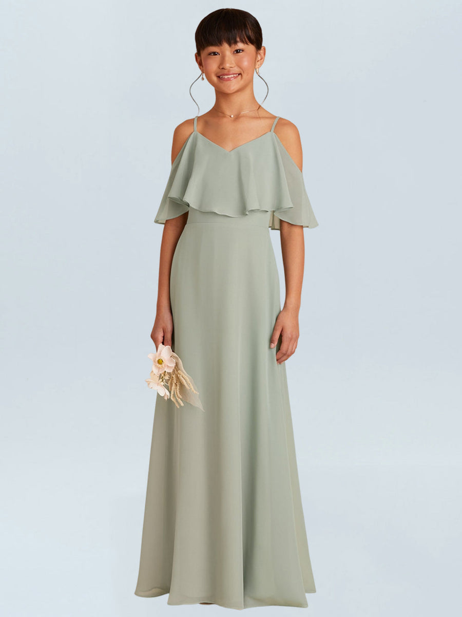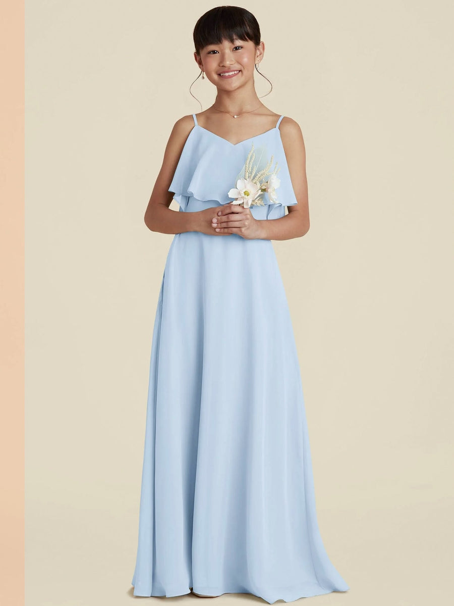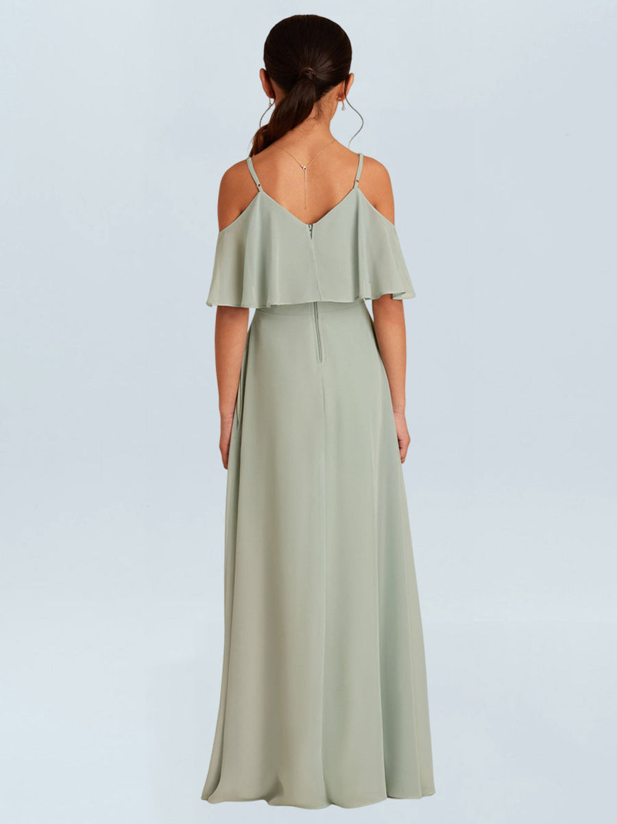 Chiffon A-Line Spaghetti Straps Half Sleeves Junior Dress-BJ00001