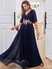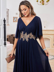 Chiffon A-Line V-Neck Half Sleeves-Dress-BM00042