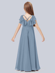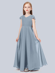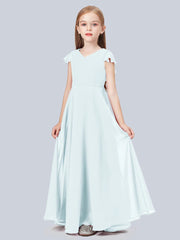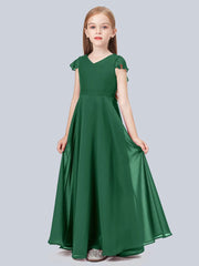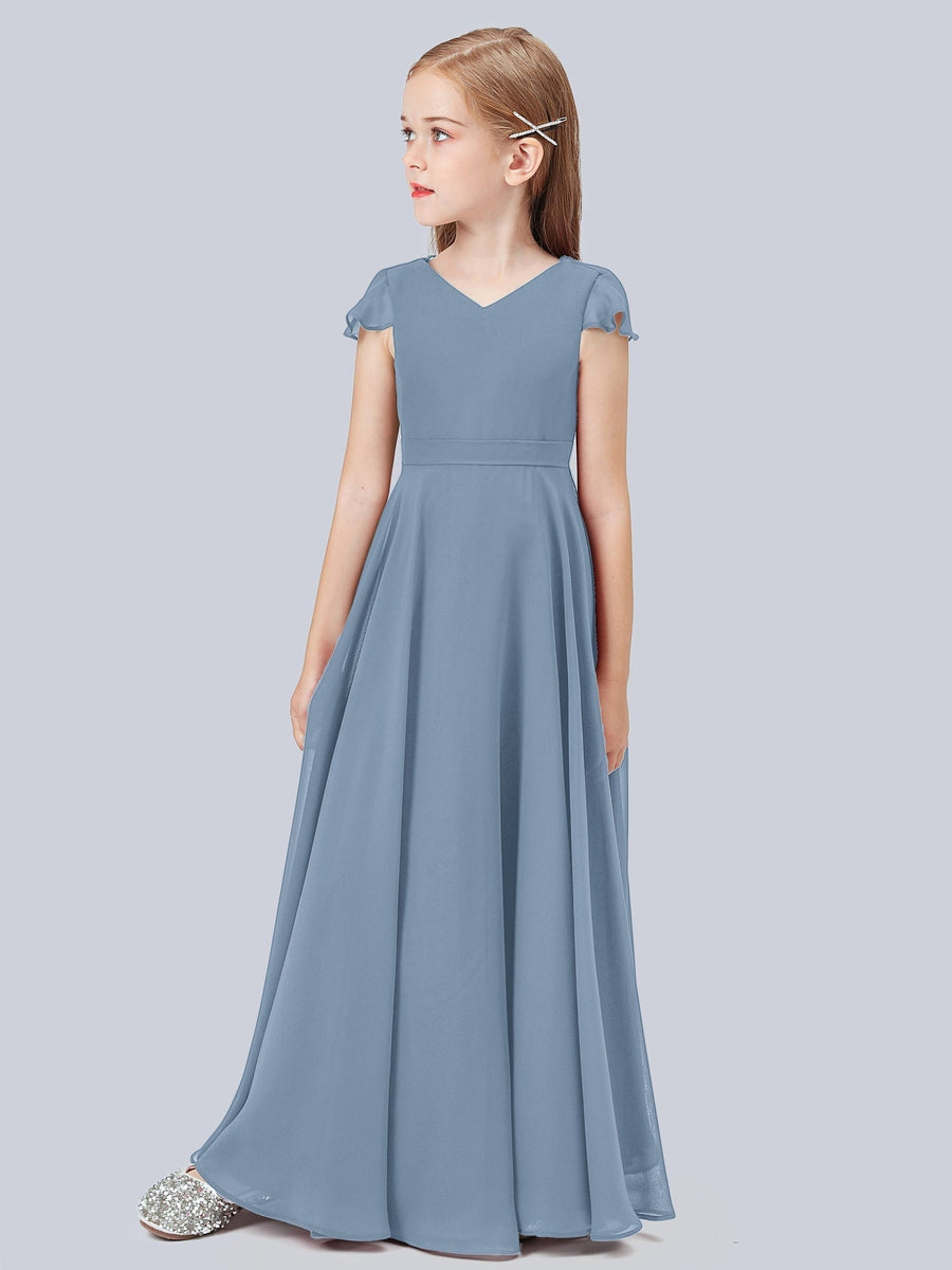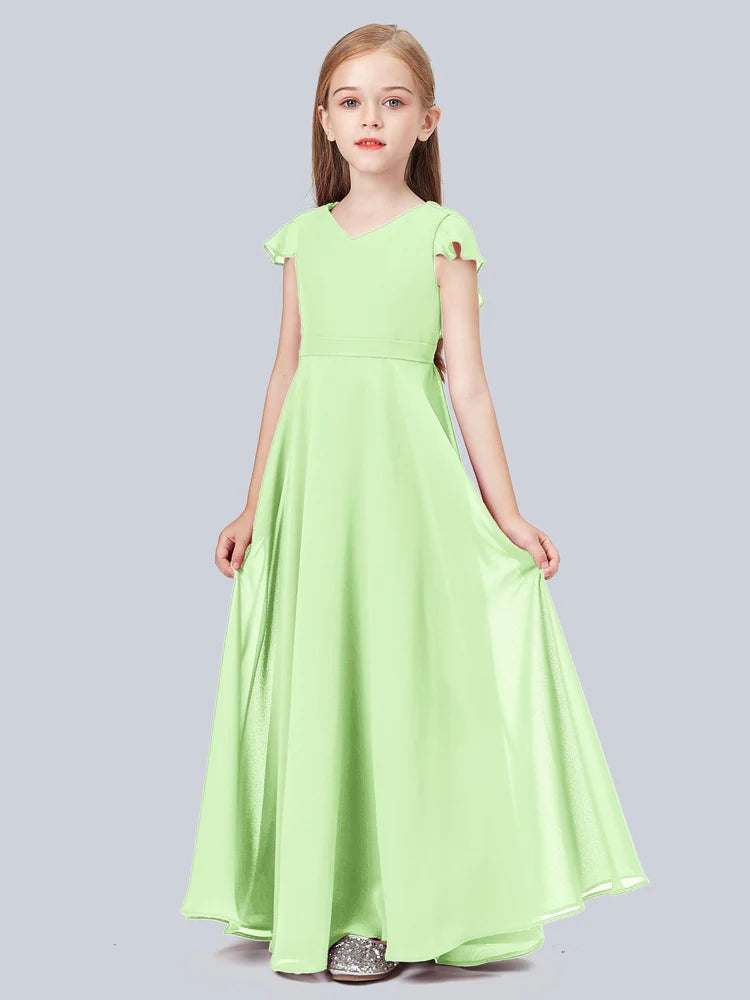 Chiffon A-Line V-Neck Half Sleeves Junior Dress-BJ00015