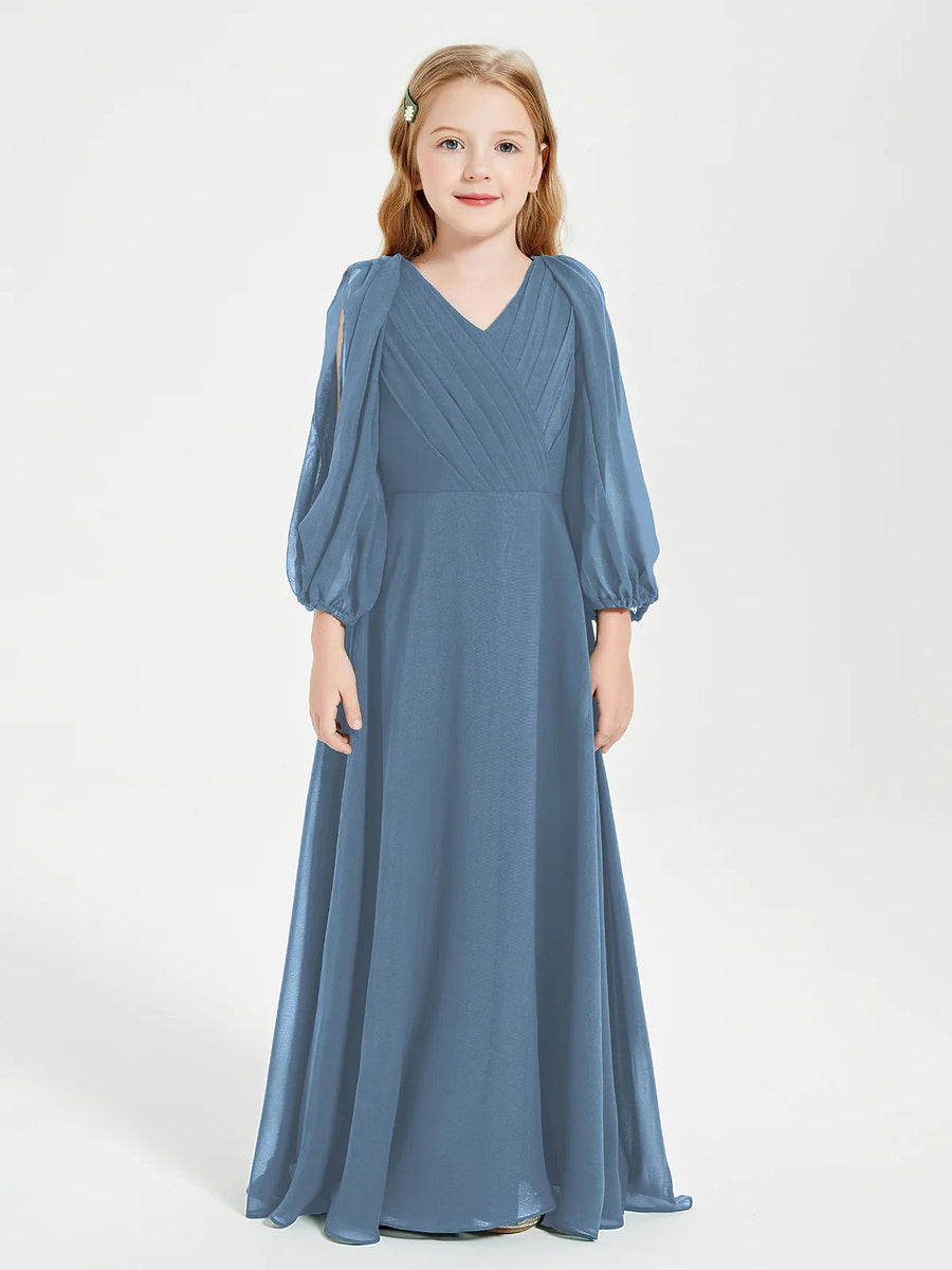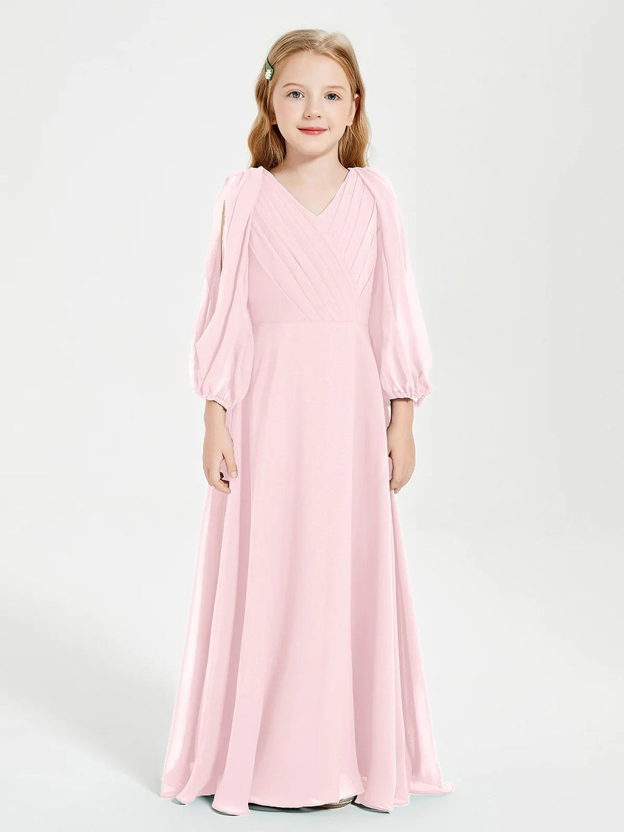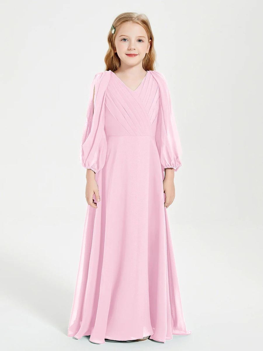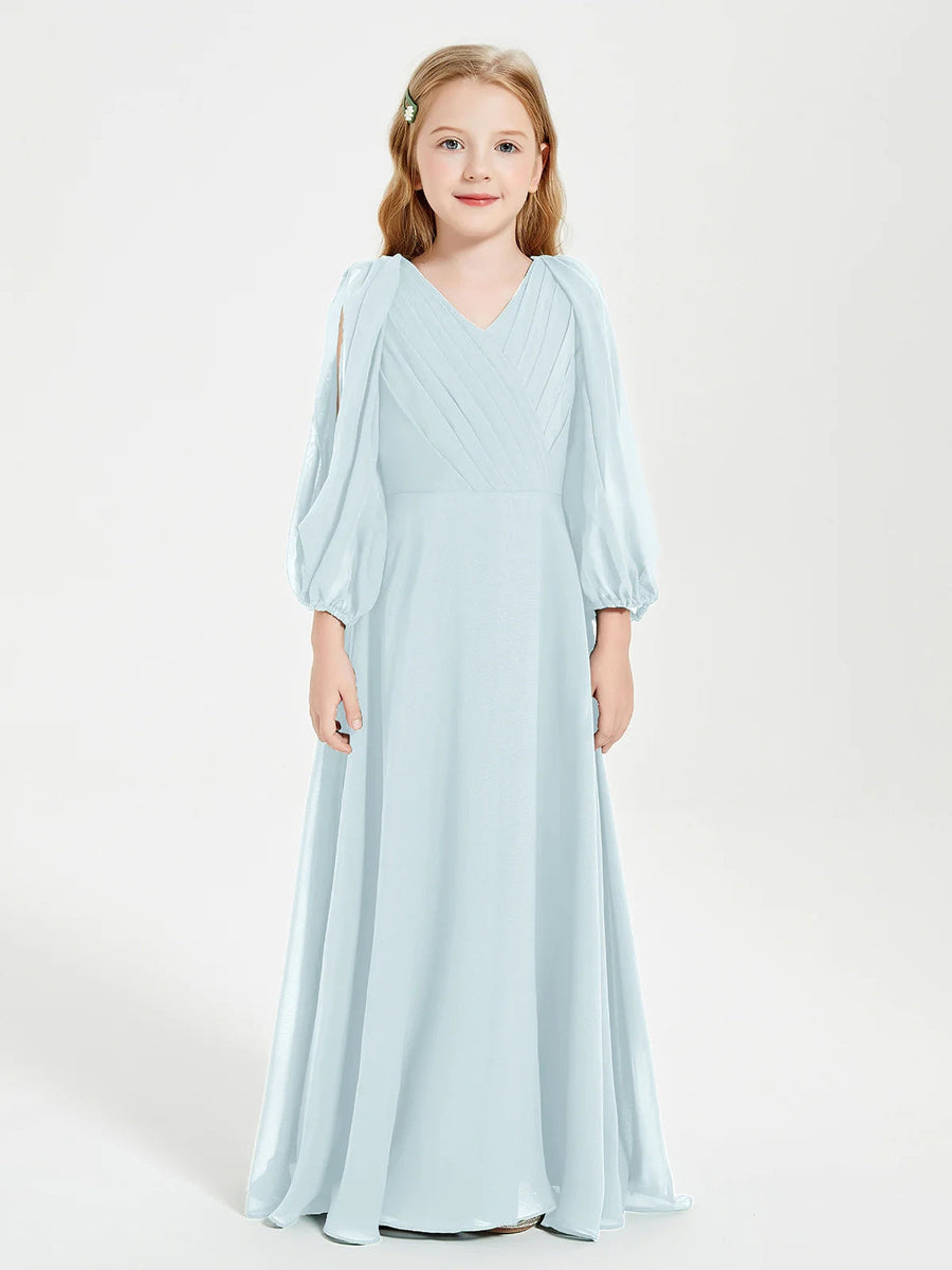 Chiffon A-Line V-Neck Long Sleeves Junior Dress-BJ00018