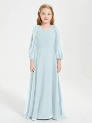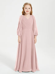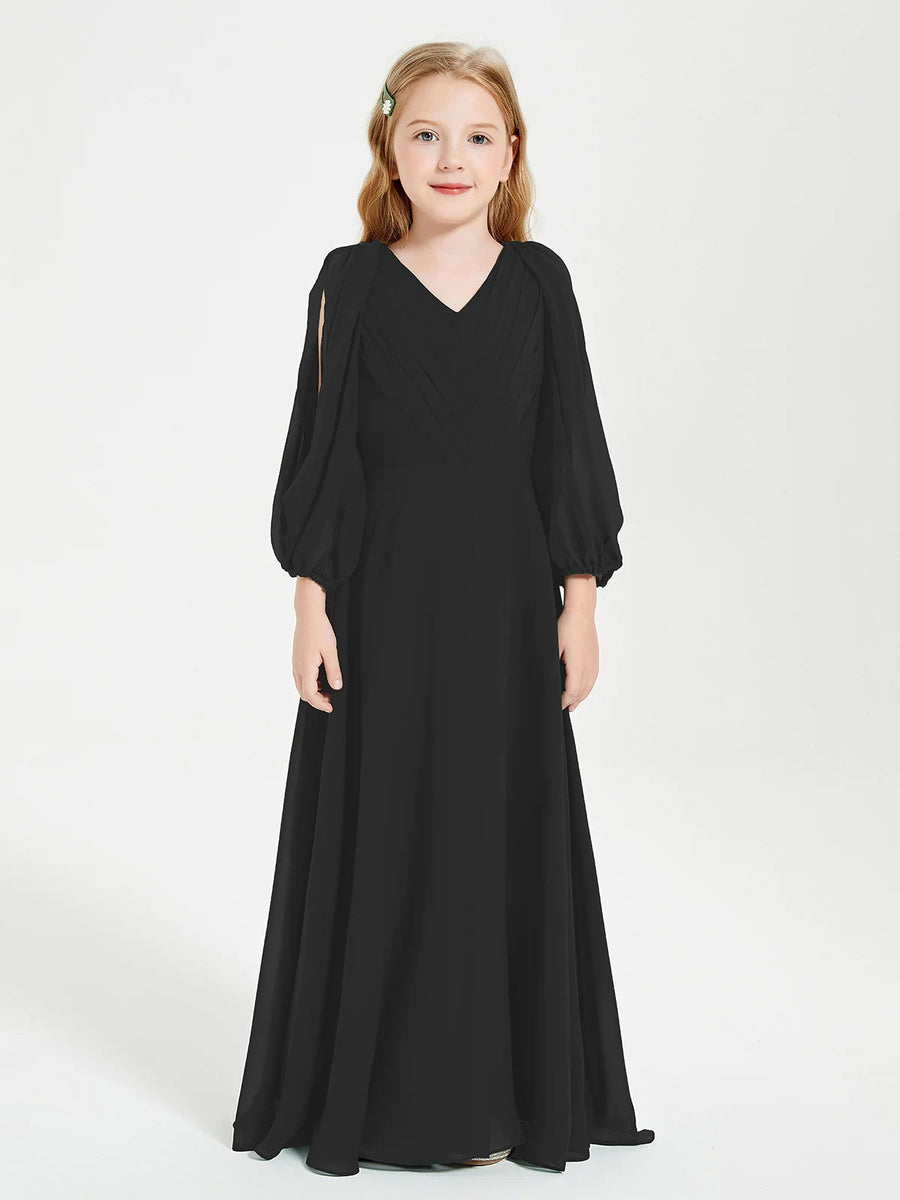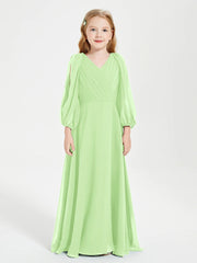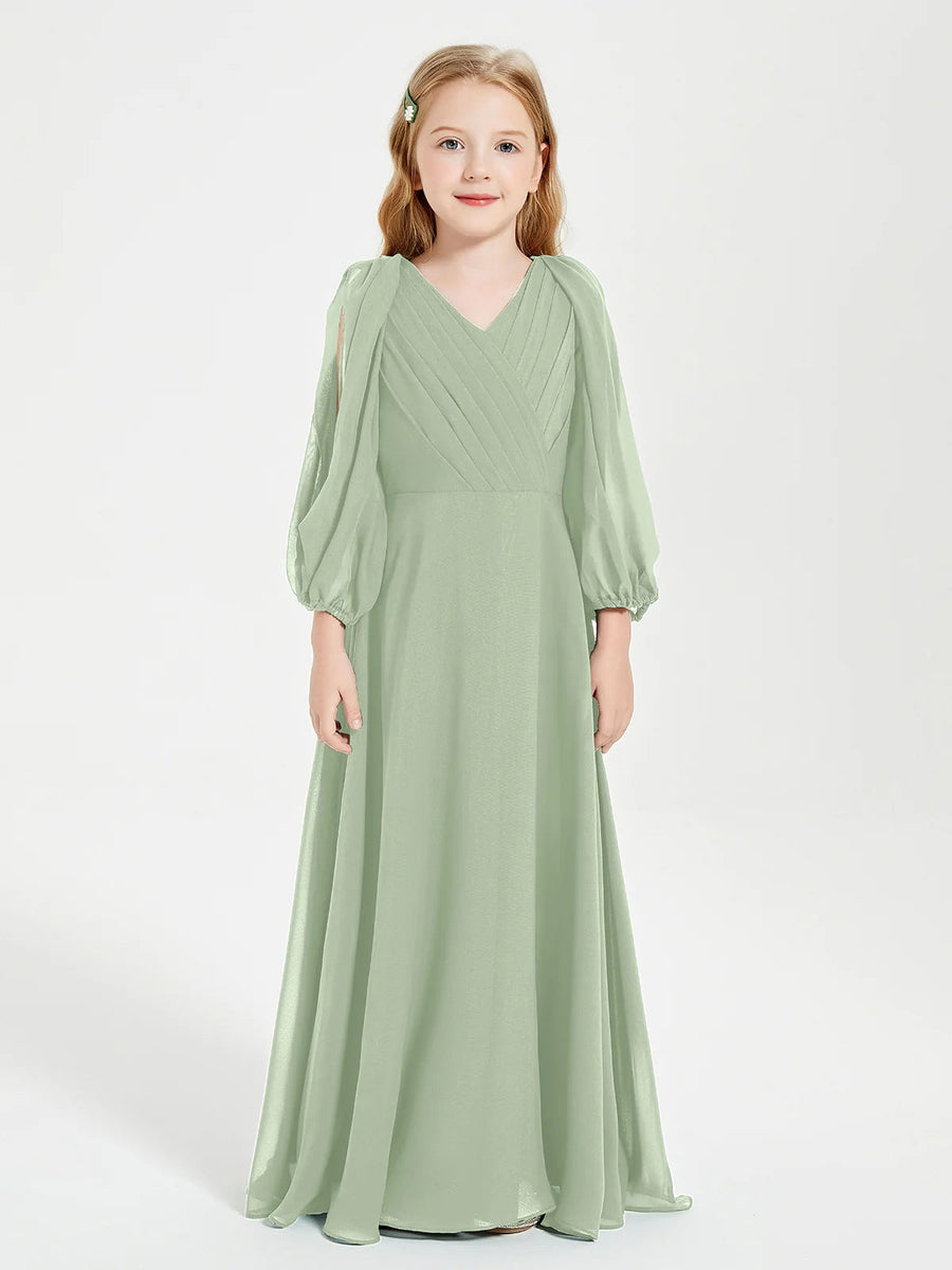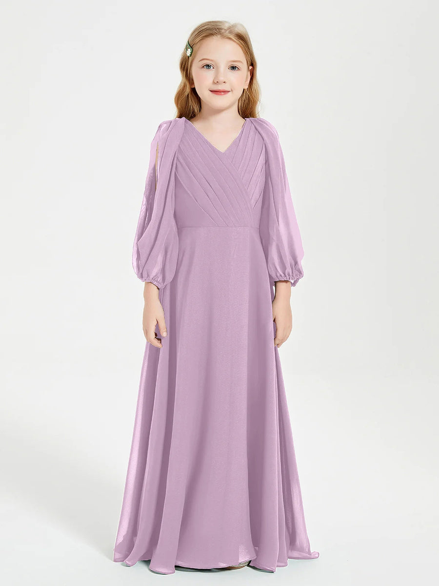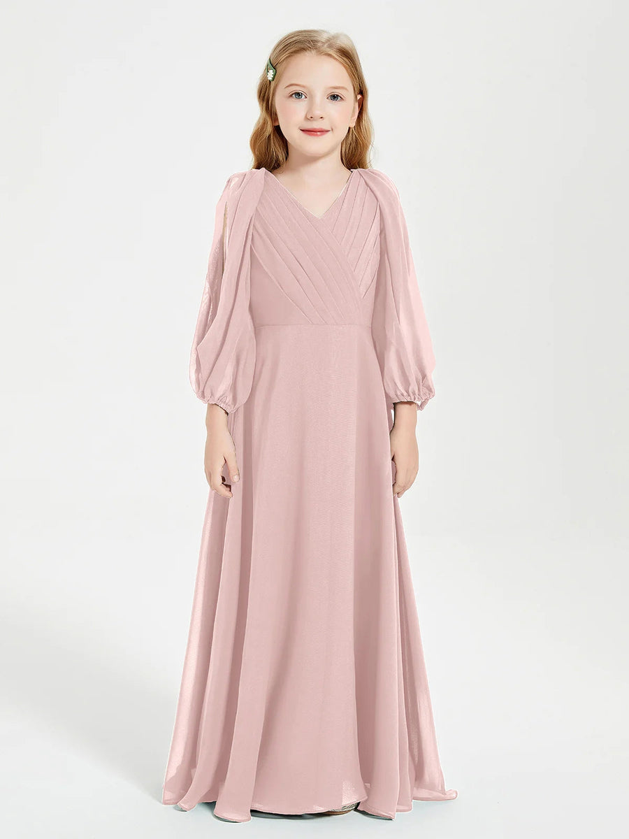 Chiffon A-Line V-Neck Long Sleeves Junior Dress-BJ00018