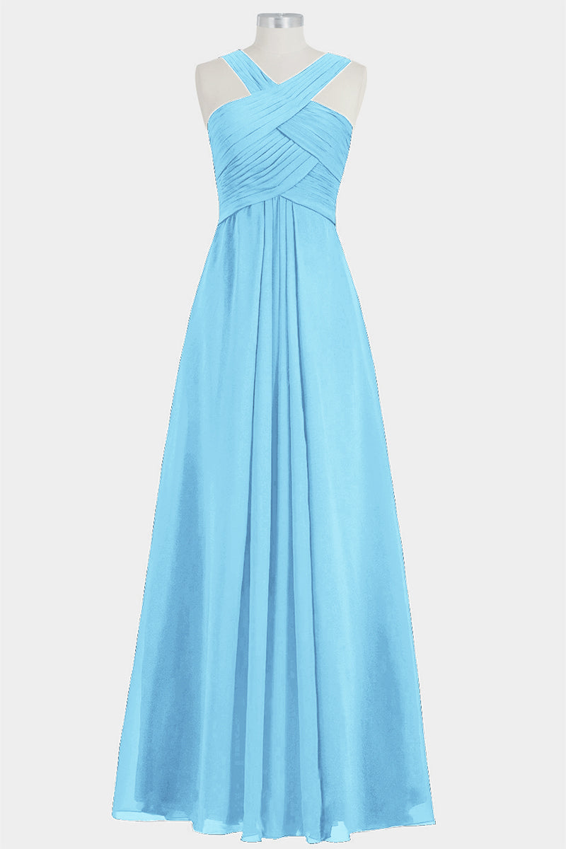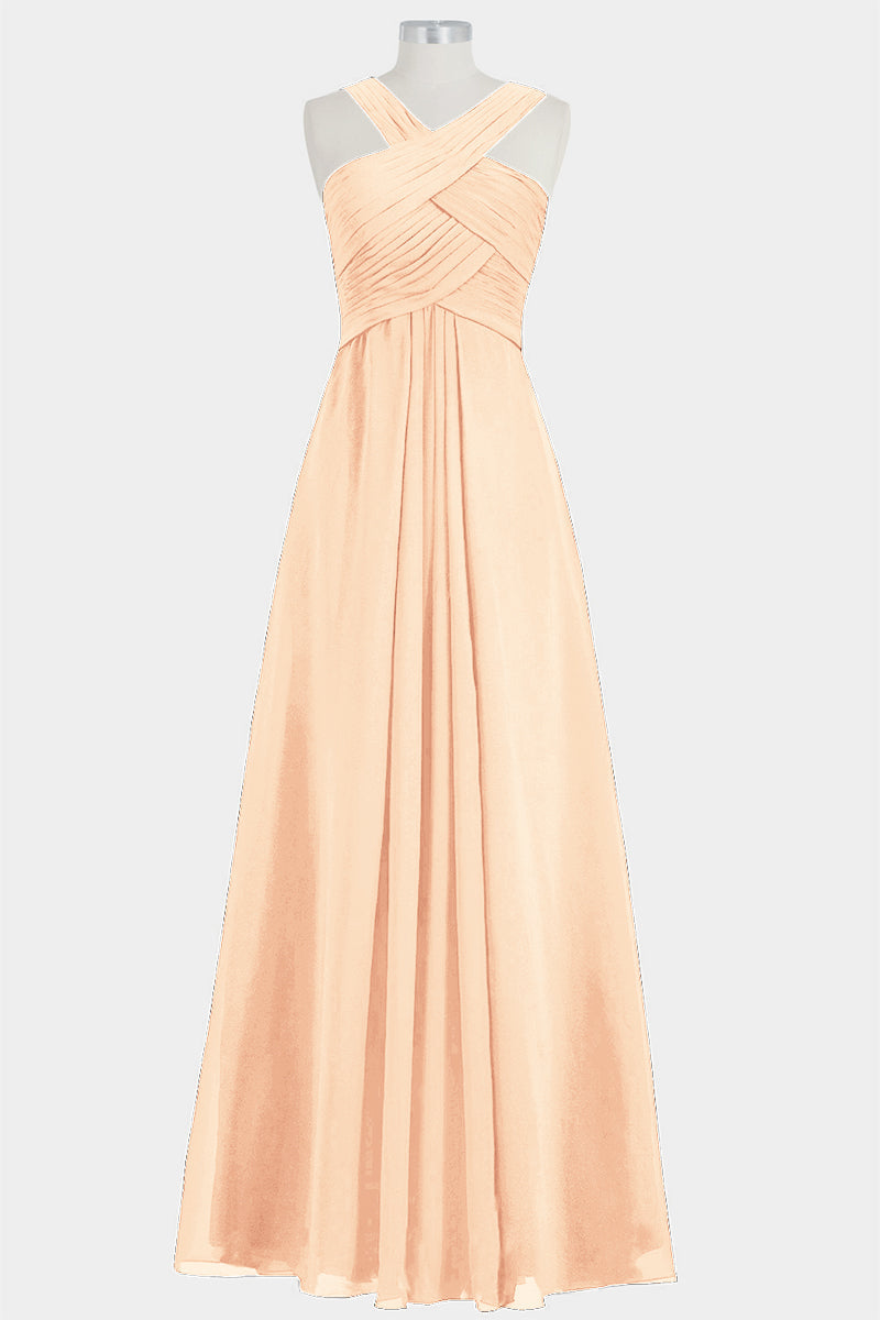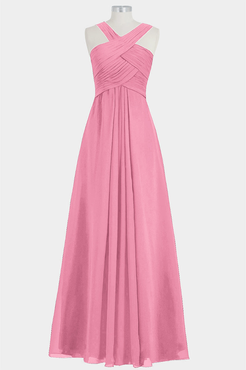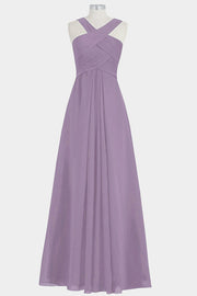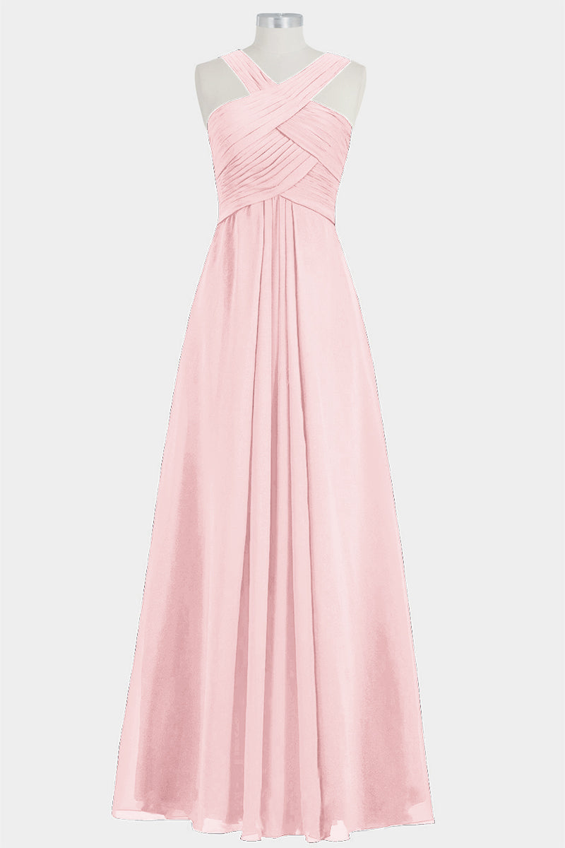 Chiffon Column Criss Cross Straps Sleeveless Bridesmaid Dress-B14032
