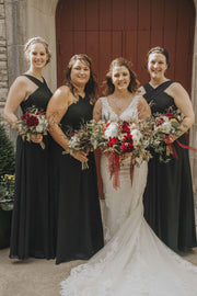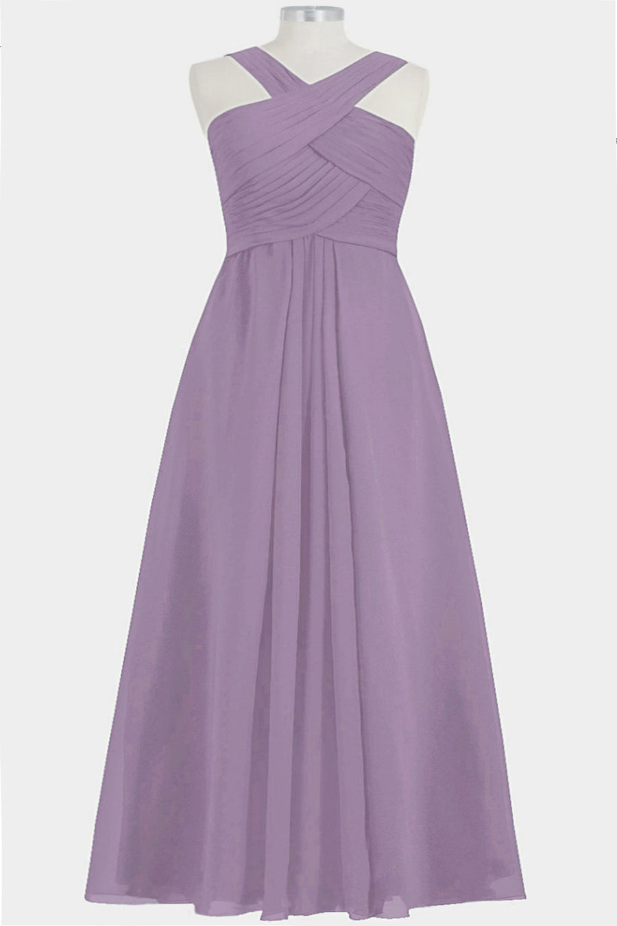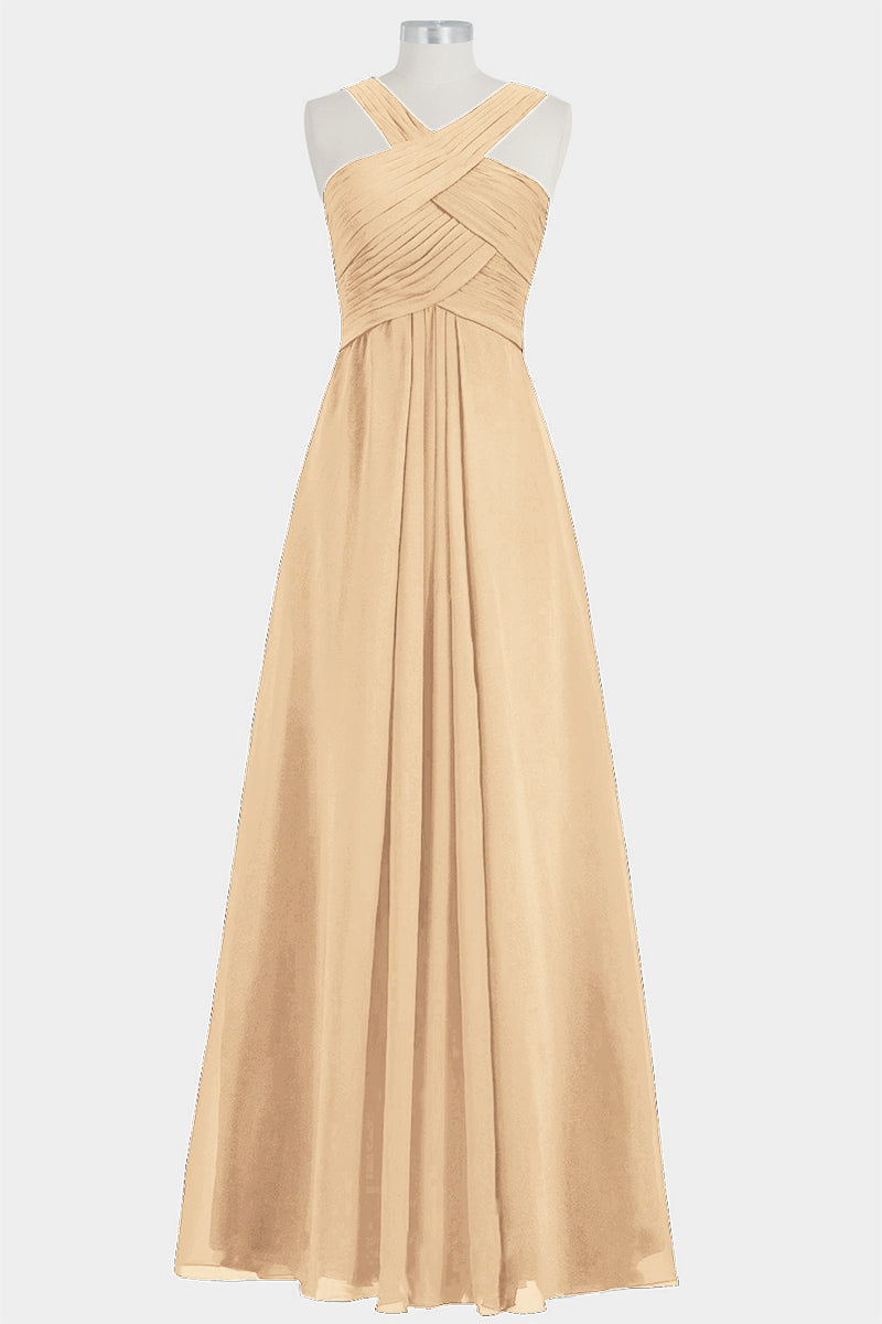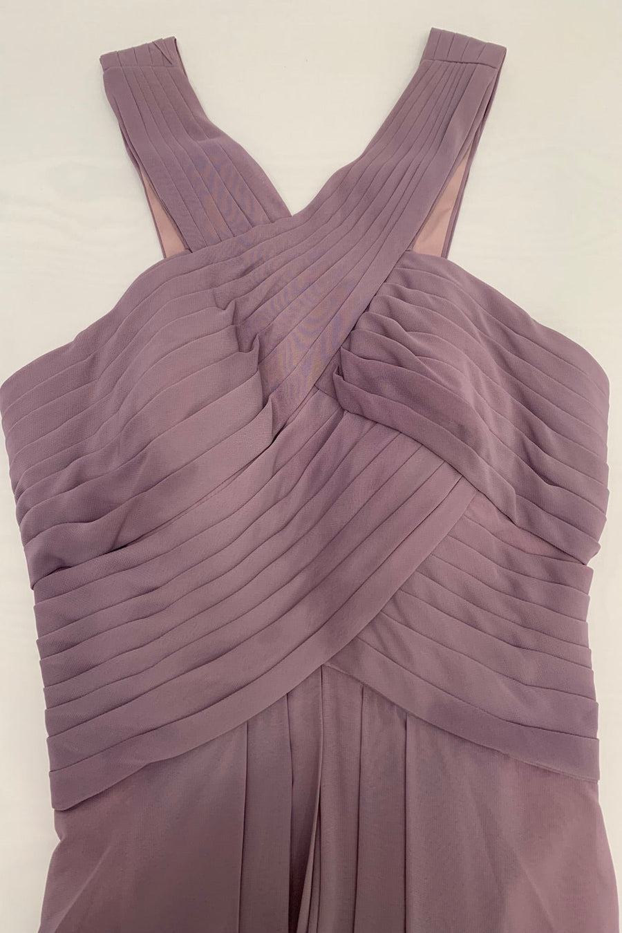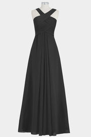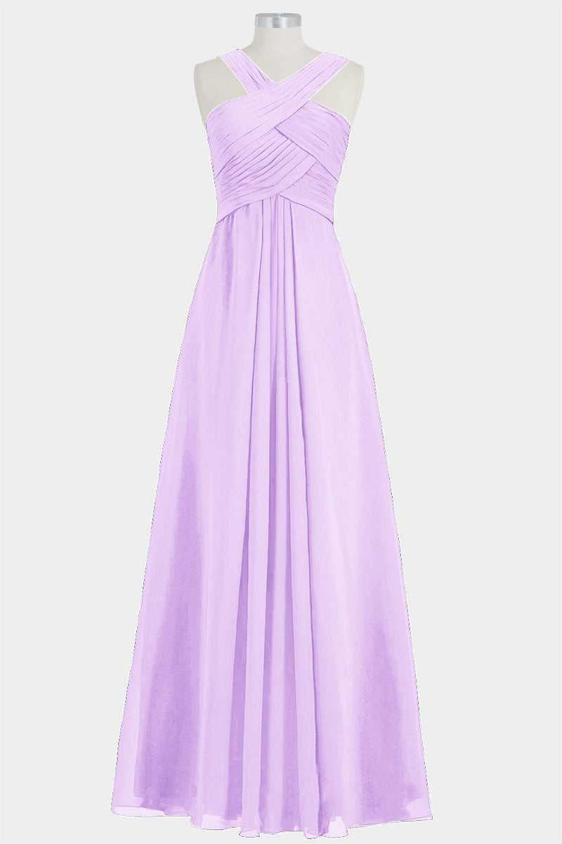 Chiffon Column Criss Cross Straps Sleeveless Bridesmaid Dress-B14032