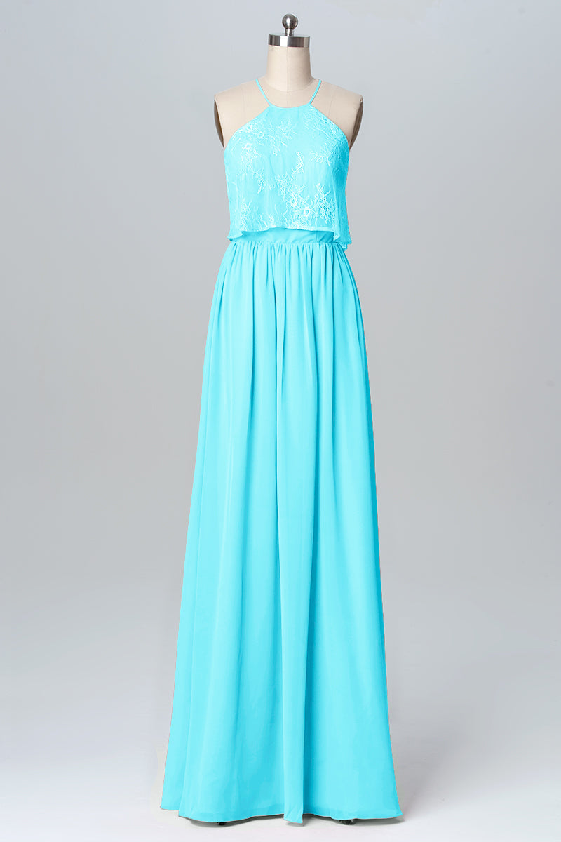 Chiffon Column Halter Sleeveless Bridesmaid Dress-B03101