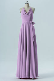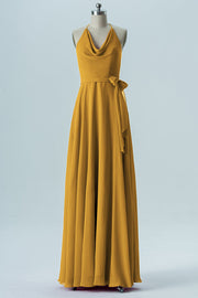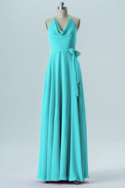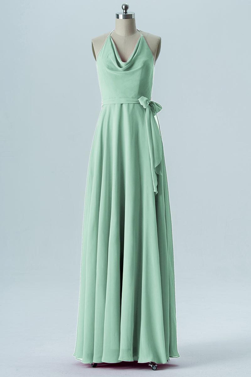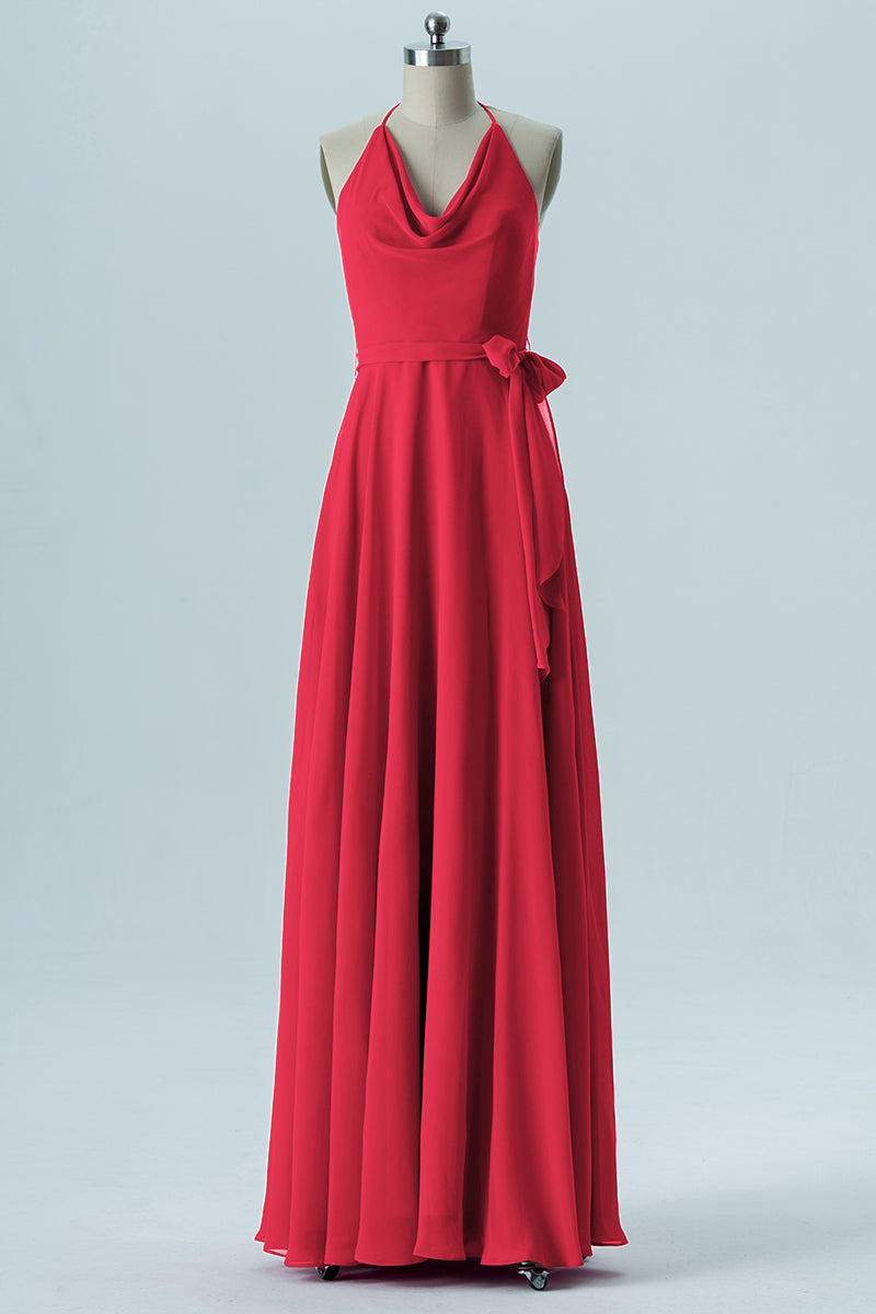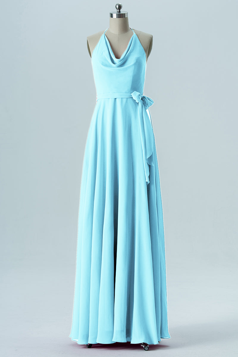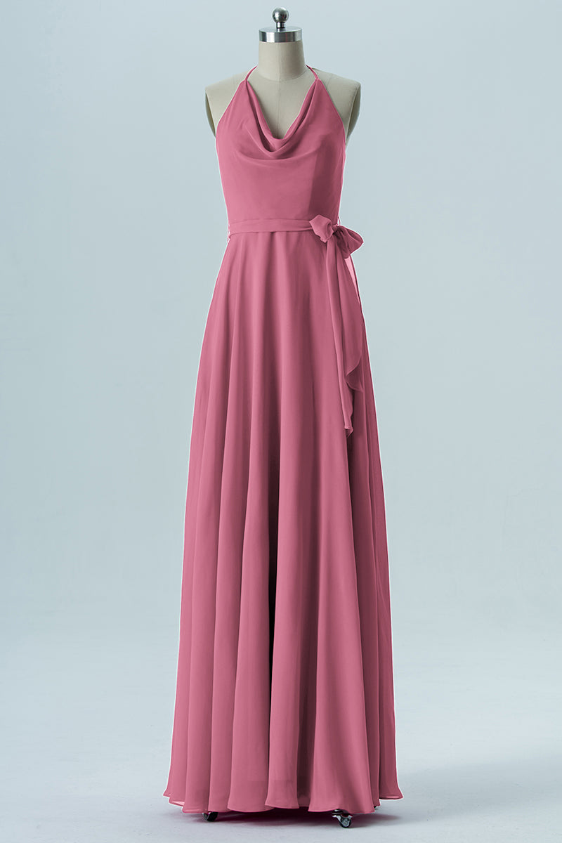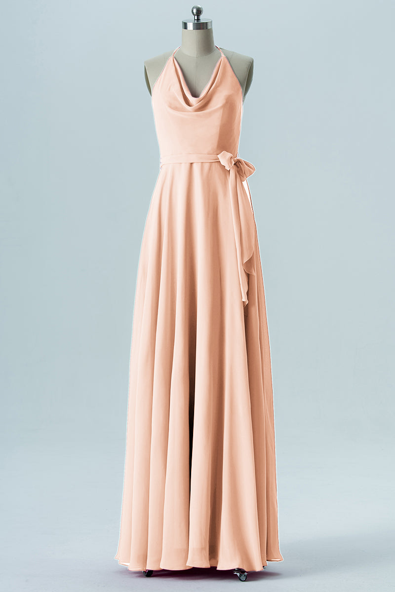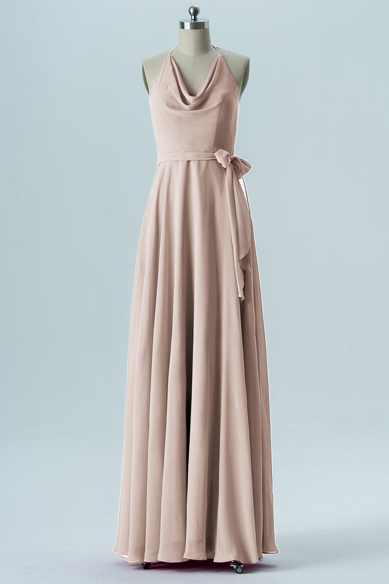 Chiffon Column Halter Sleeveless Bridesmaid Dress-B13642
