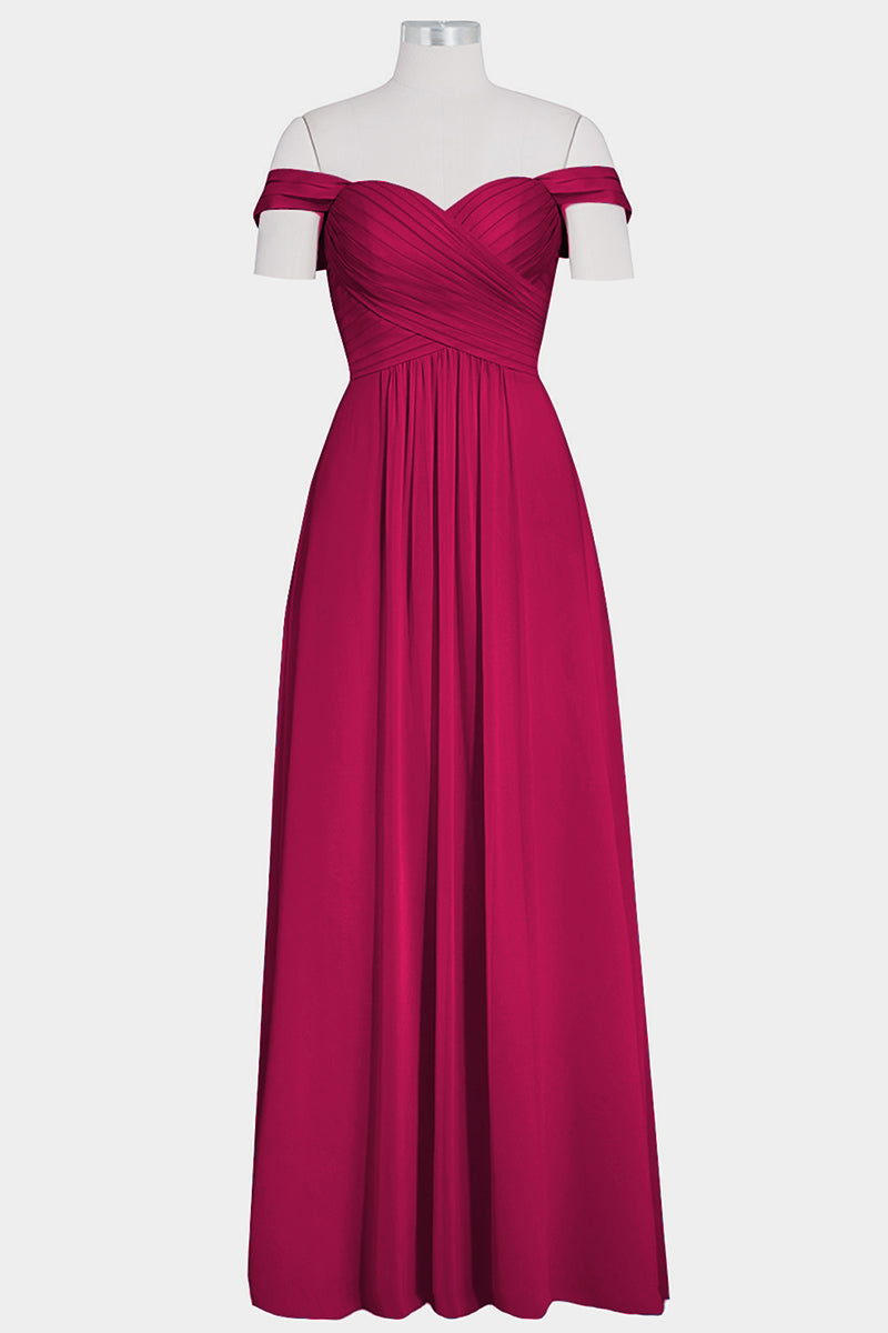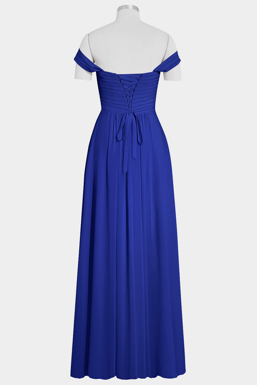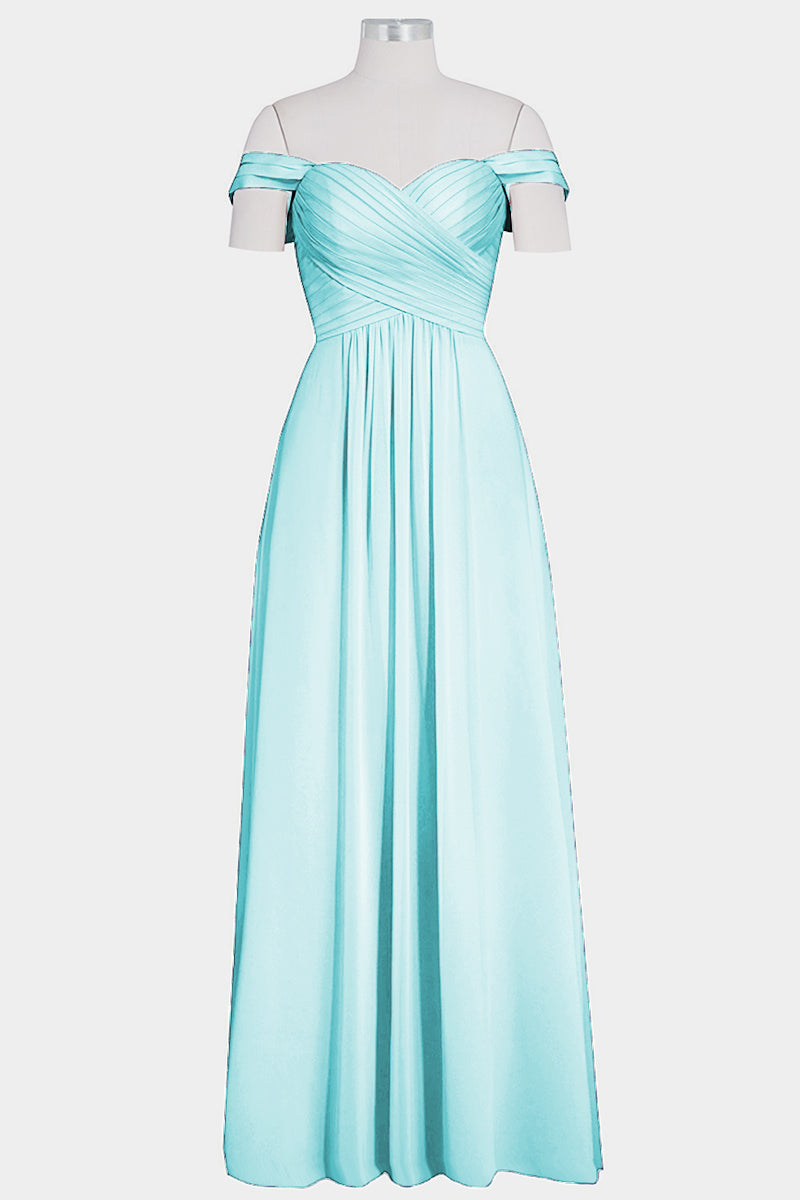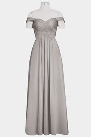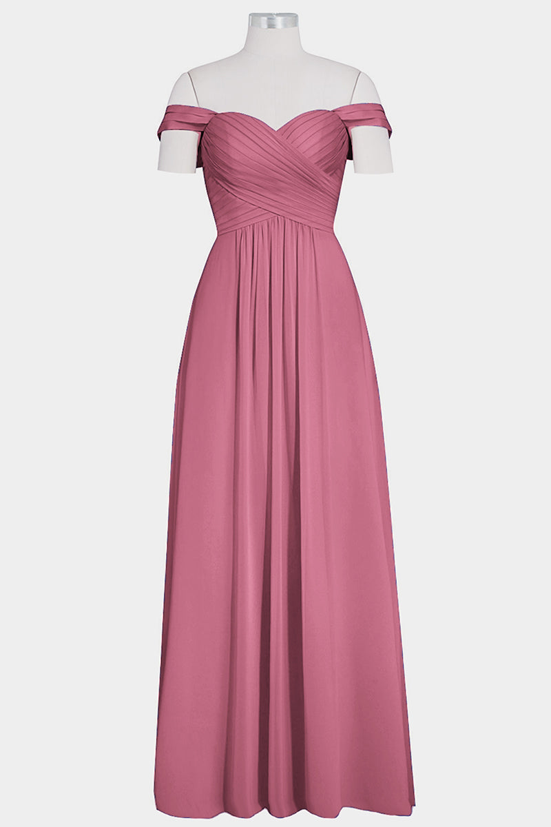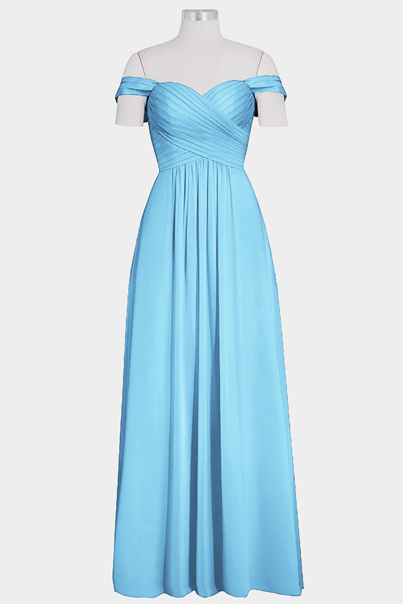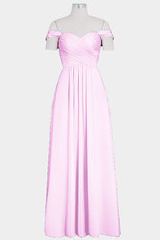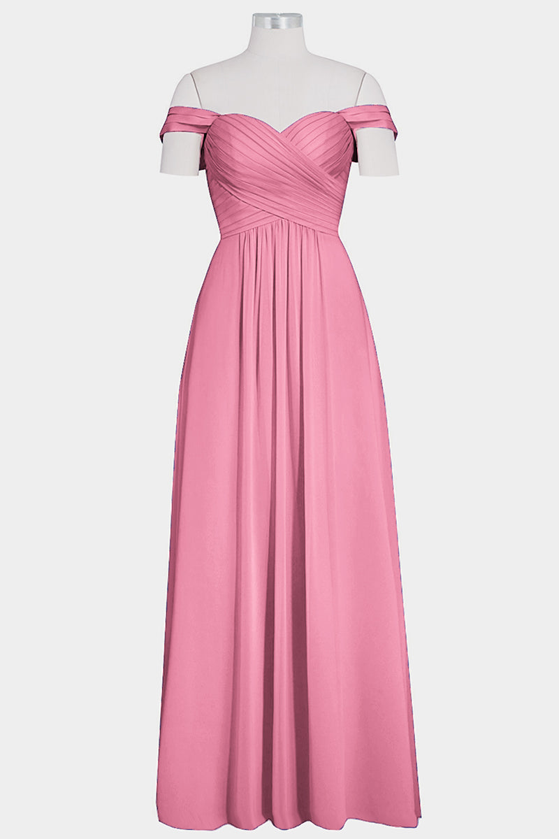 Chiffon Column Off the Shoulder Sleeveless Bridesmaid Dress-B14015