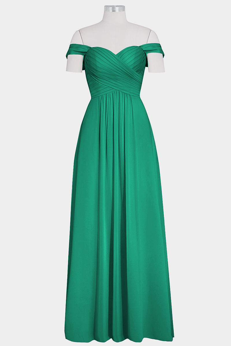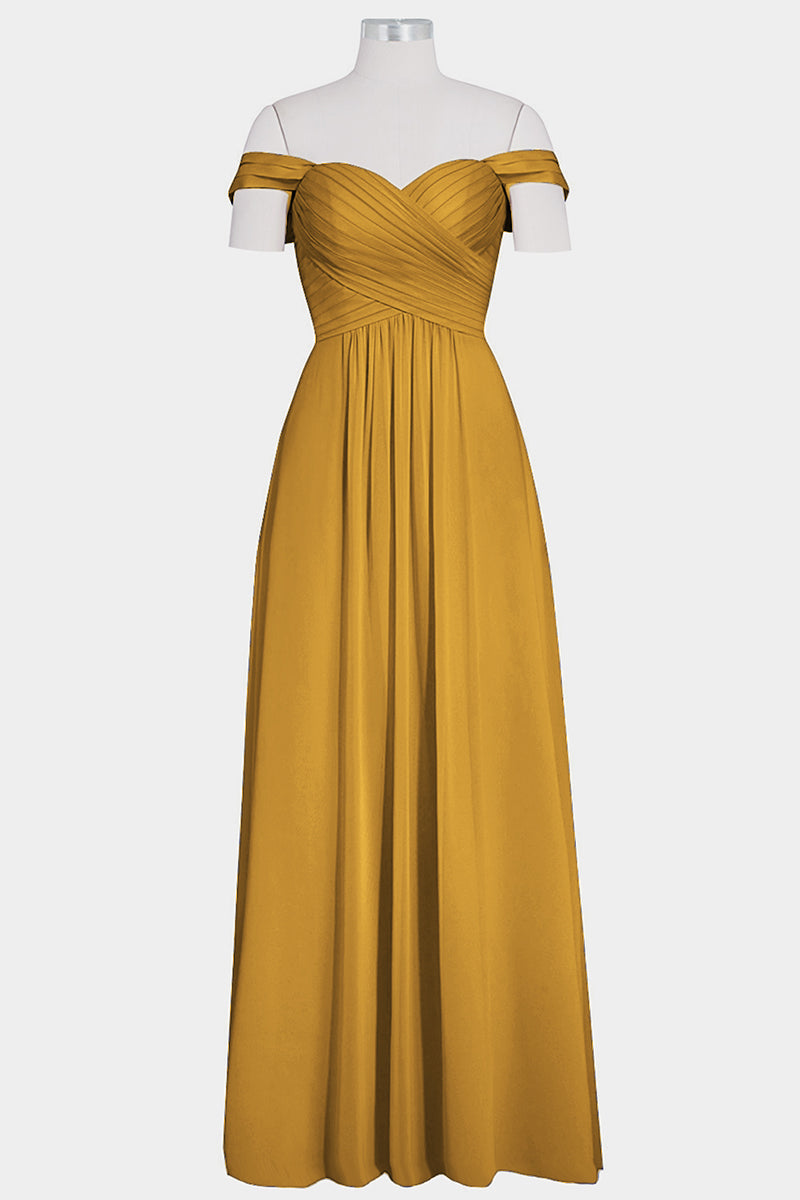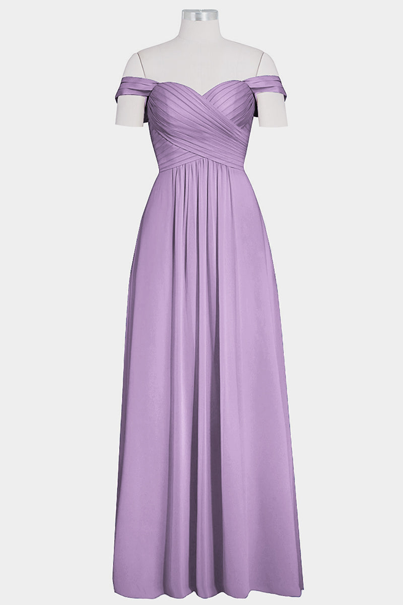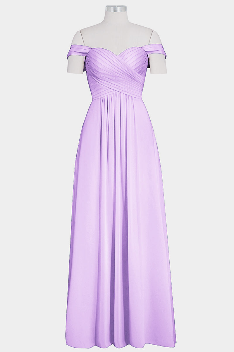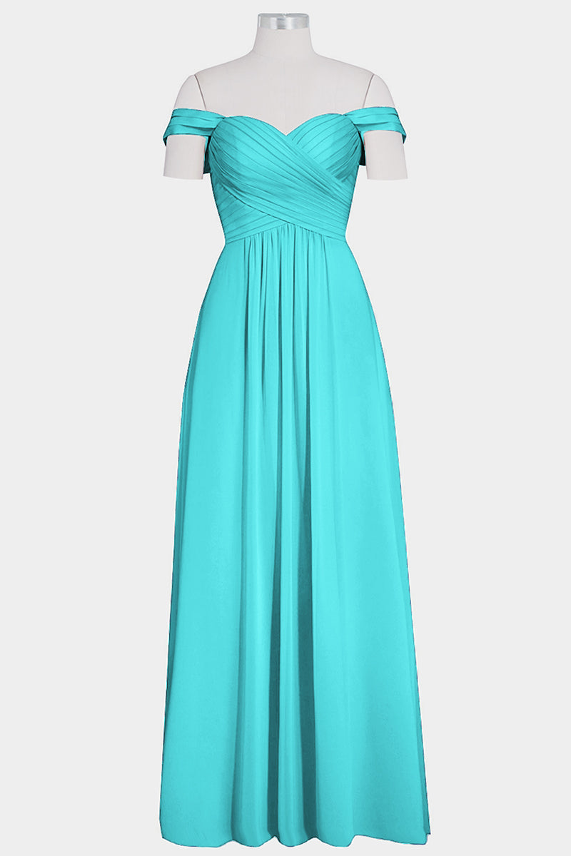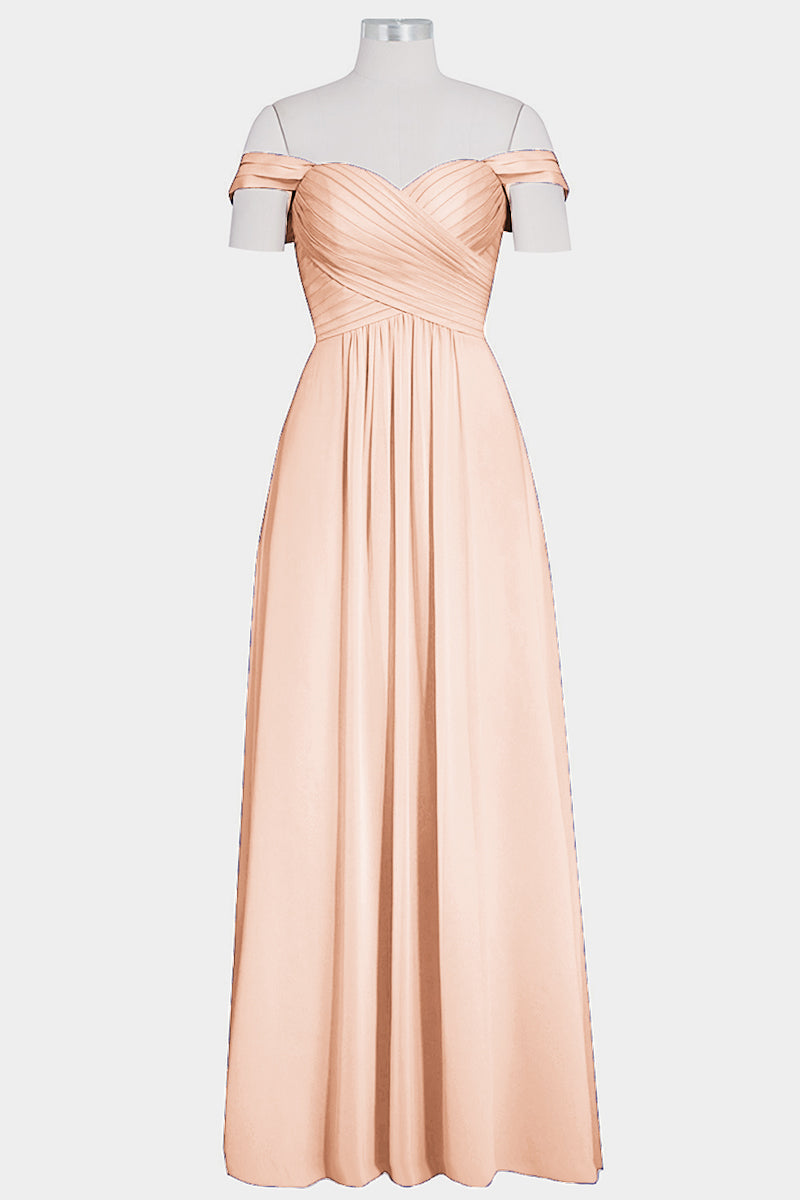 Chiffon Column Off the Shoulder Sleeveless Bridesmaid Dress-B14015