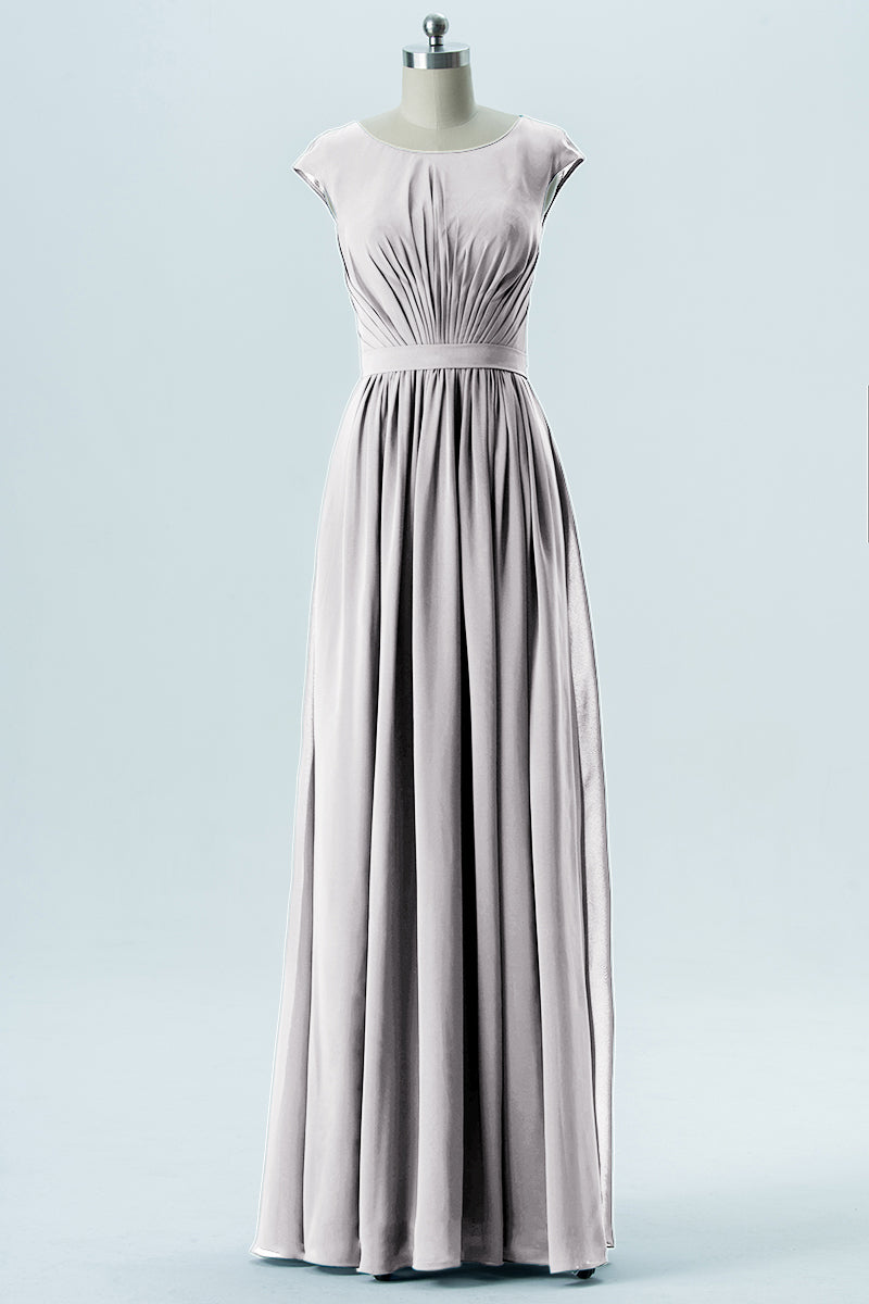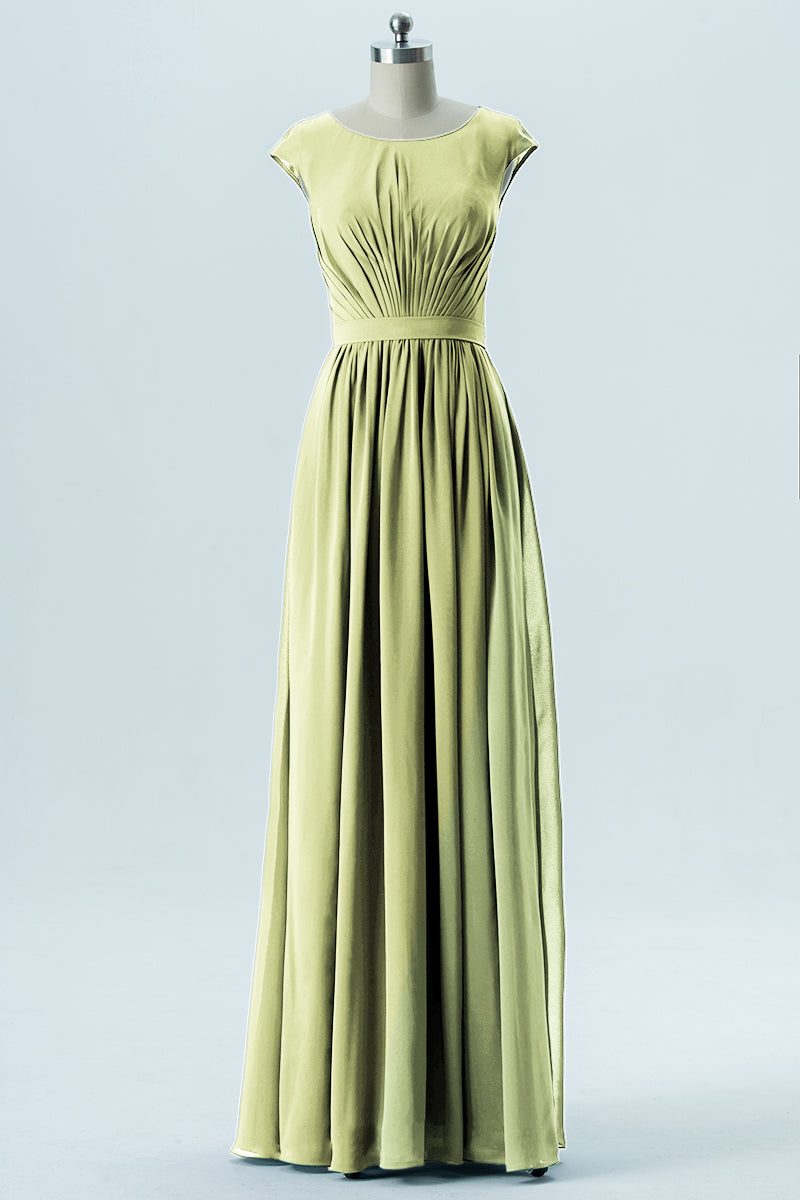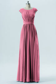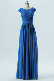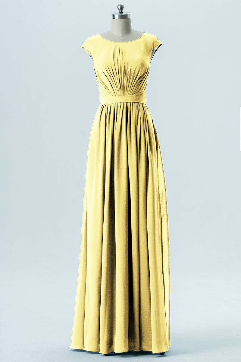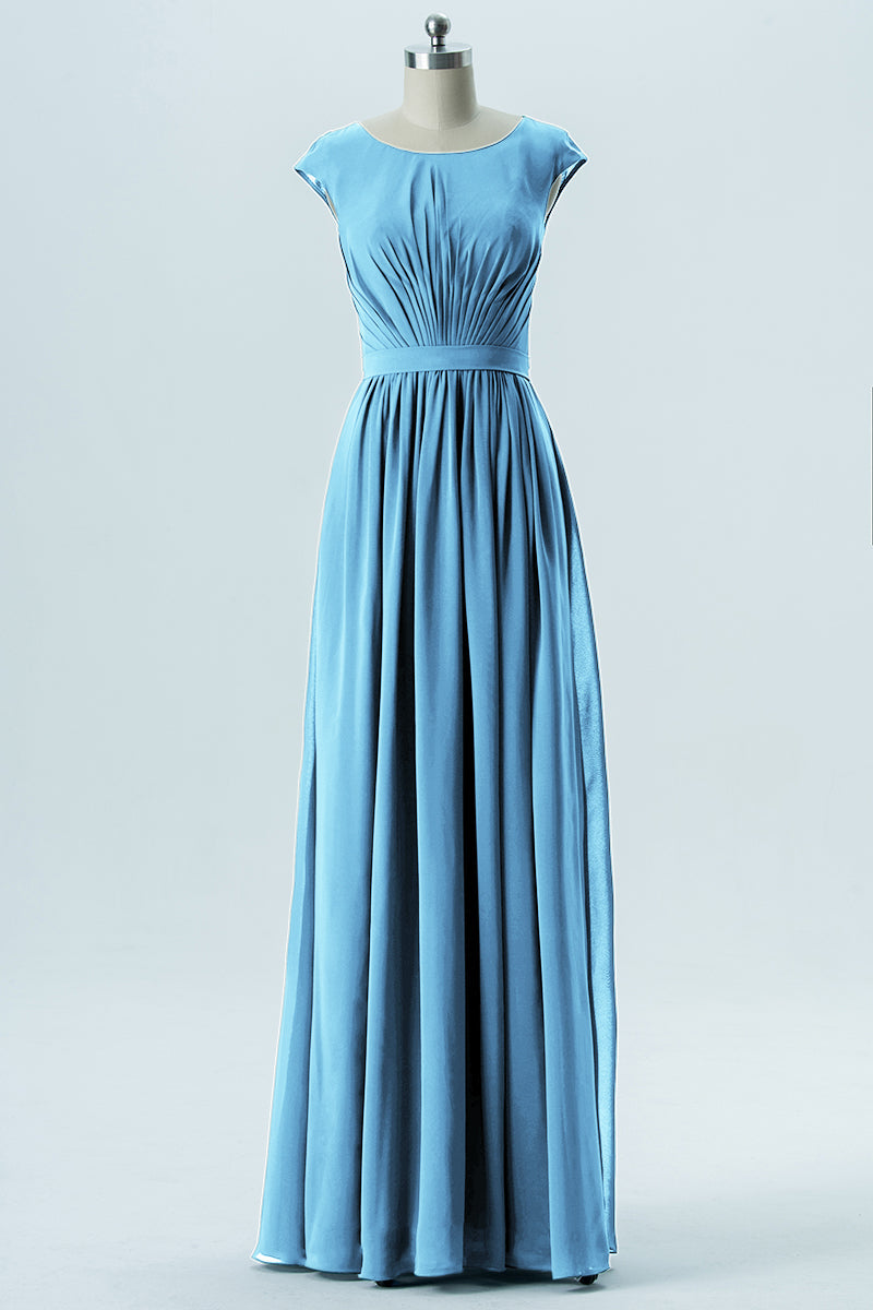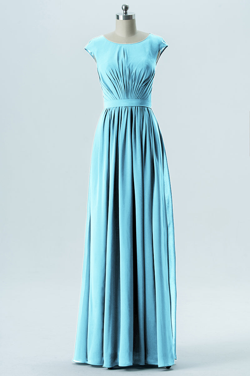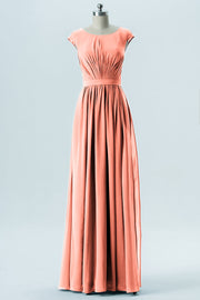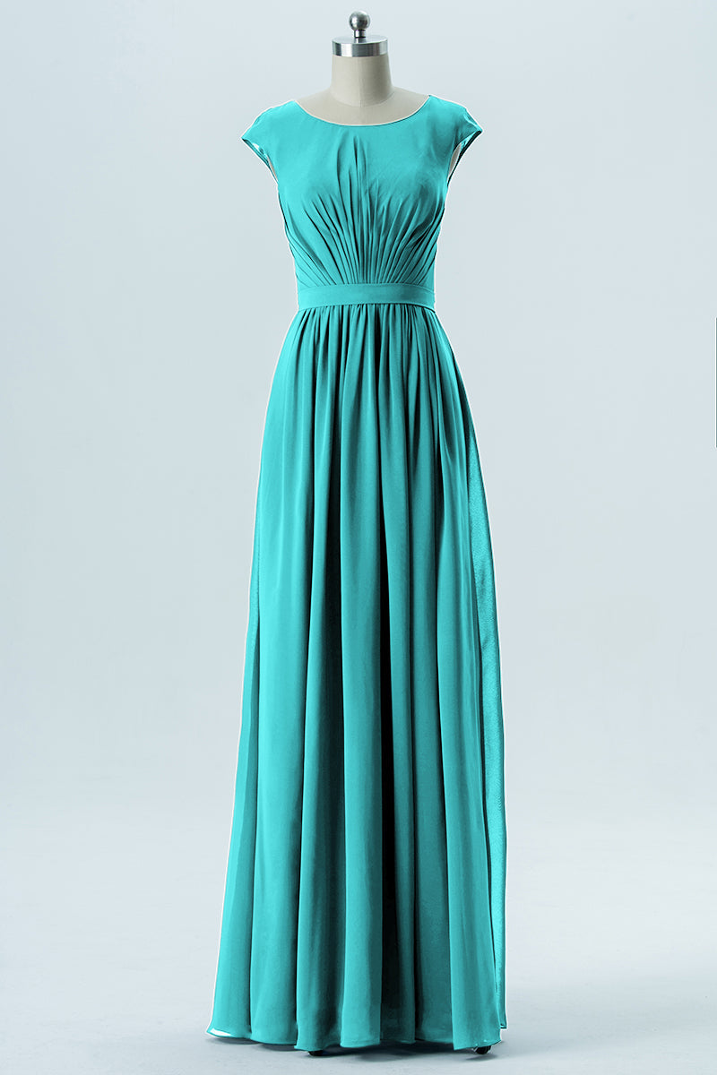 Chiffon Column Scoop Neck Cap Sleeves Bridesmaid Dress-B13652