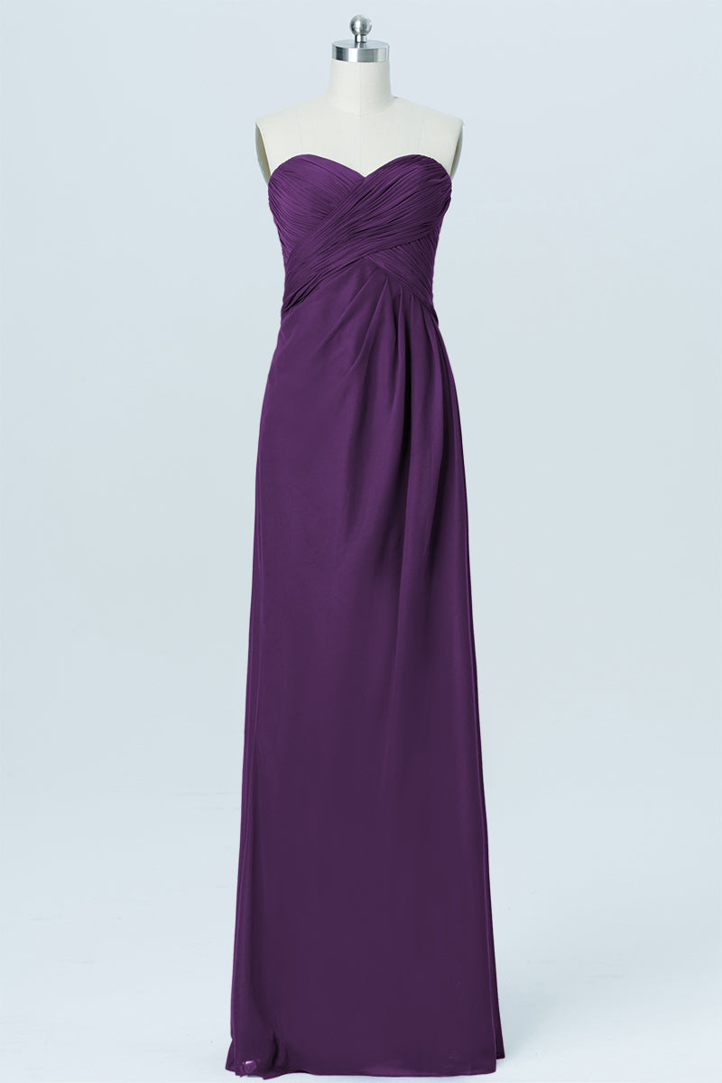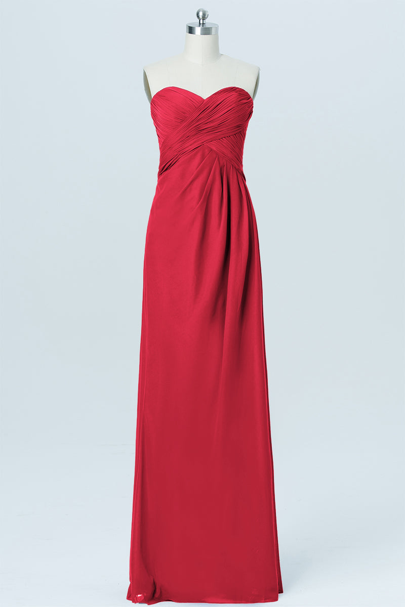 Chiffon Column Strapless Sleeveless Bridesmaid Dress-B03012