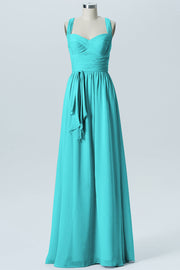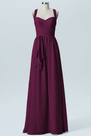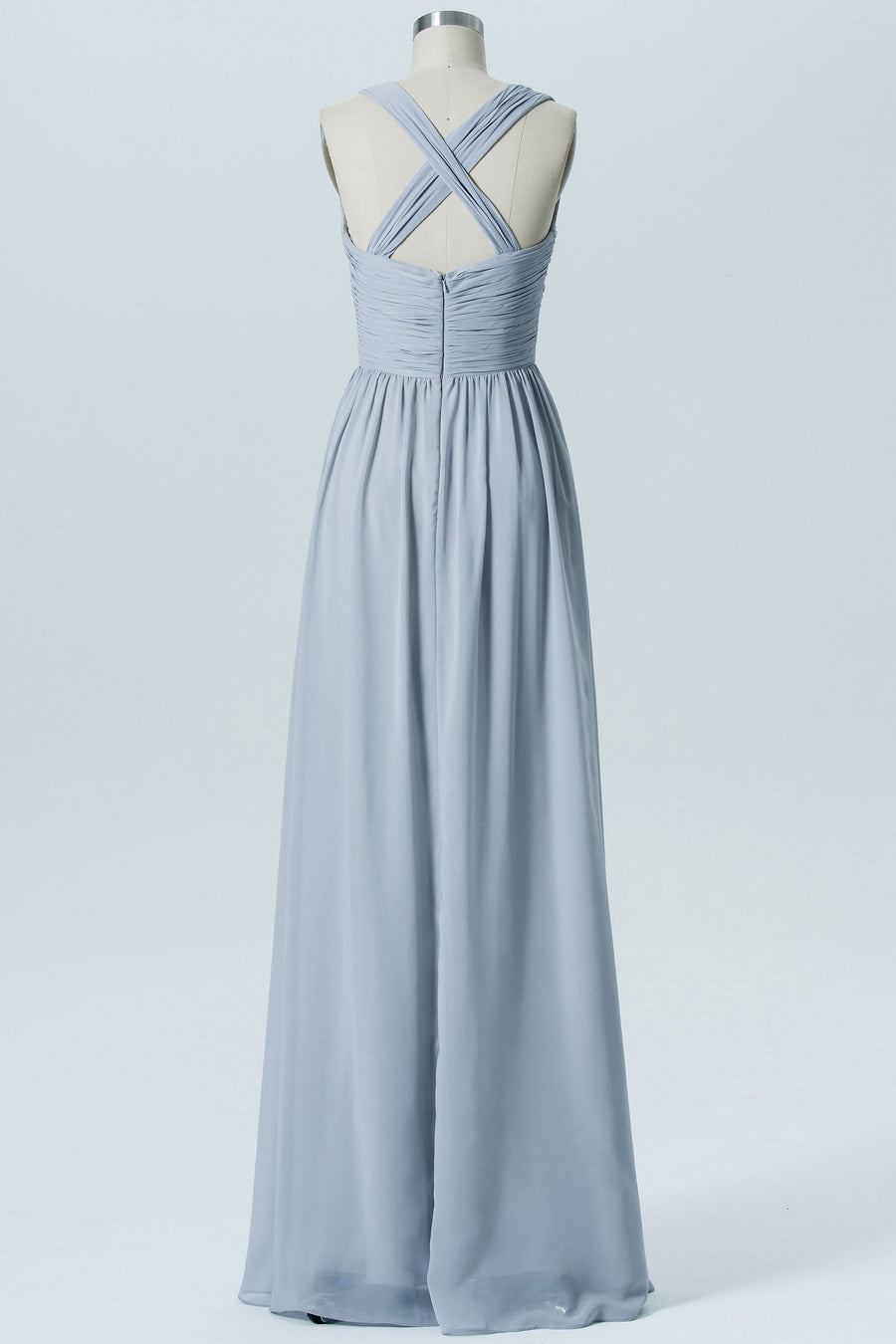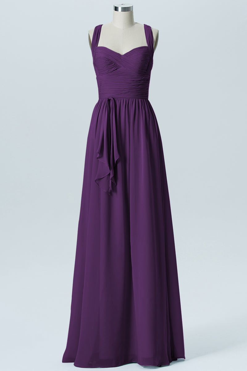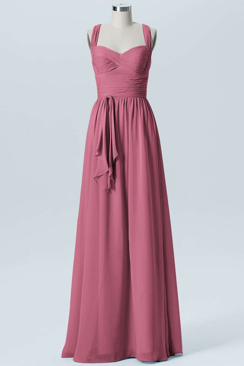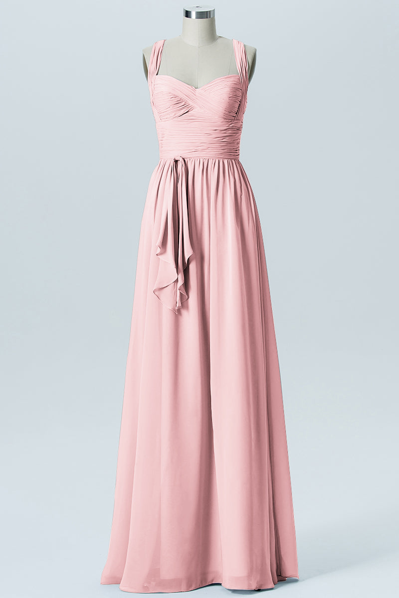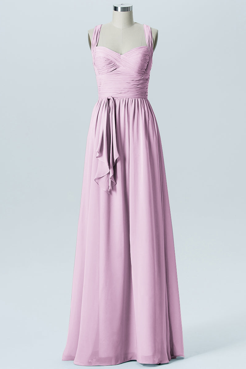 Chiffon Column Straps Sleeveless Bridesmaid Dress-B09051