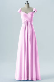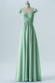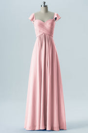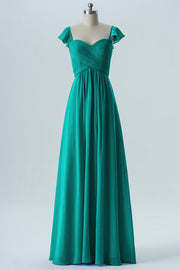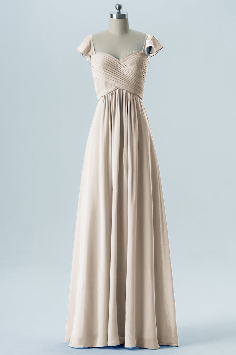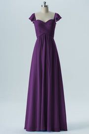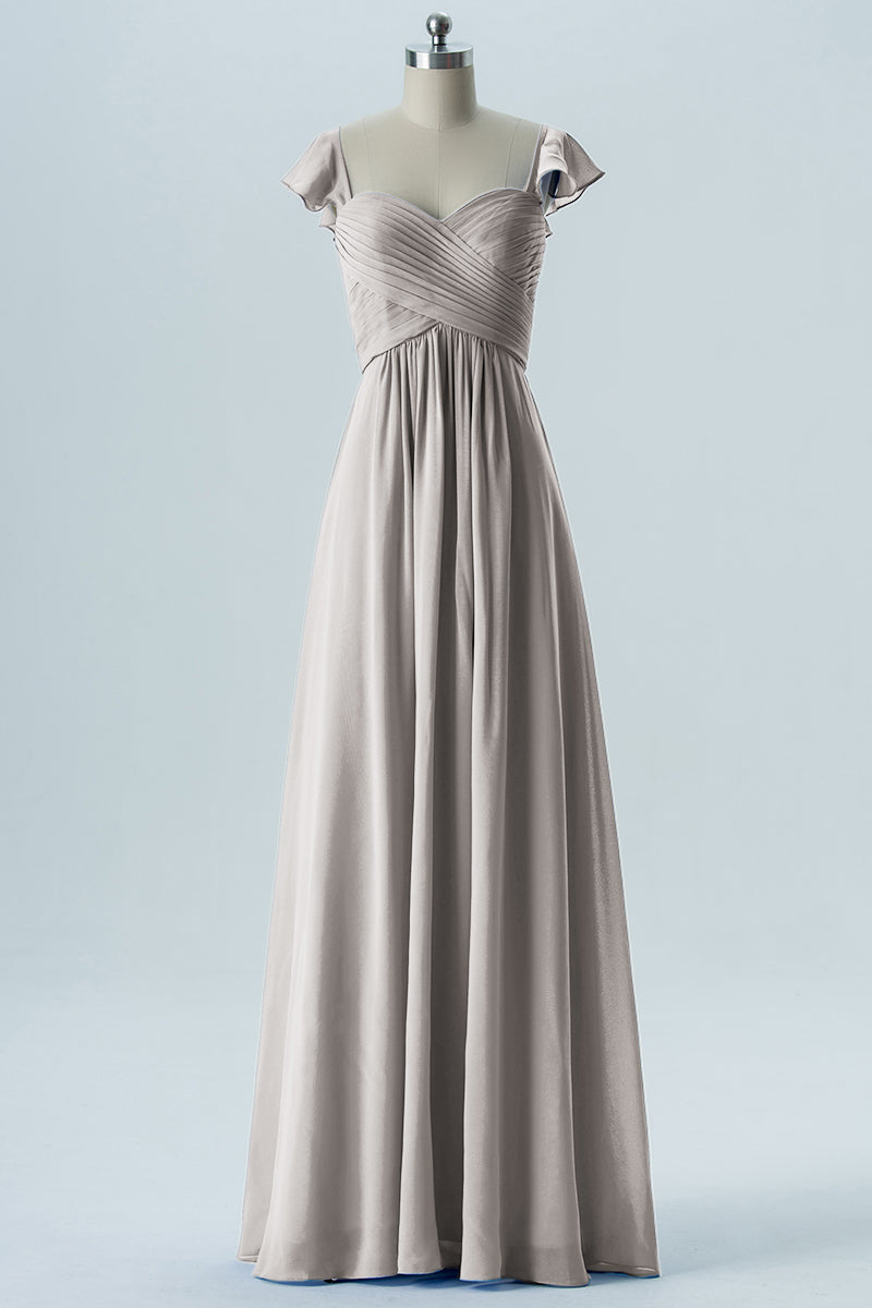 Chiffon Column Sweetheart Cap Sleeves Bridesmaid Dress-B08330